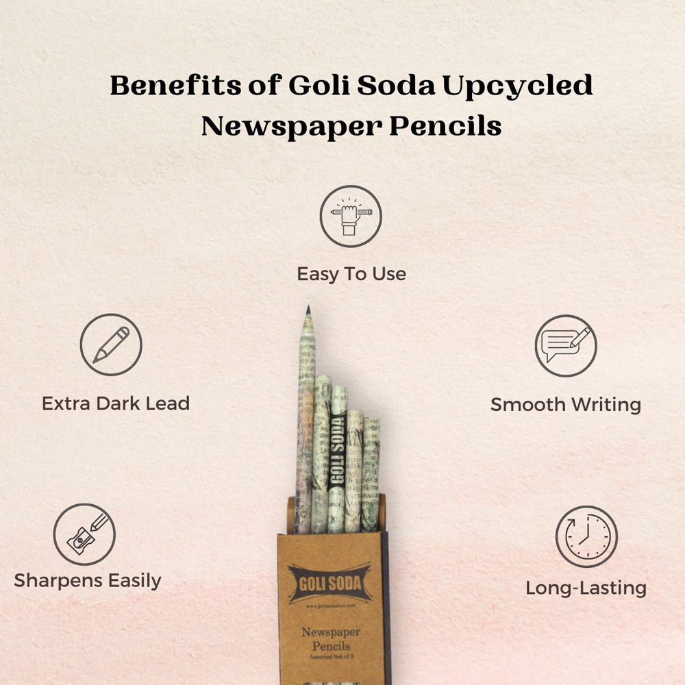 GOLI SODA Upcycled Plain Newspaper Pencils (Pack of 10)