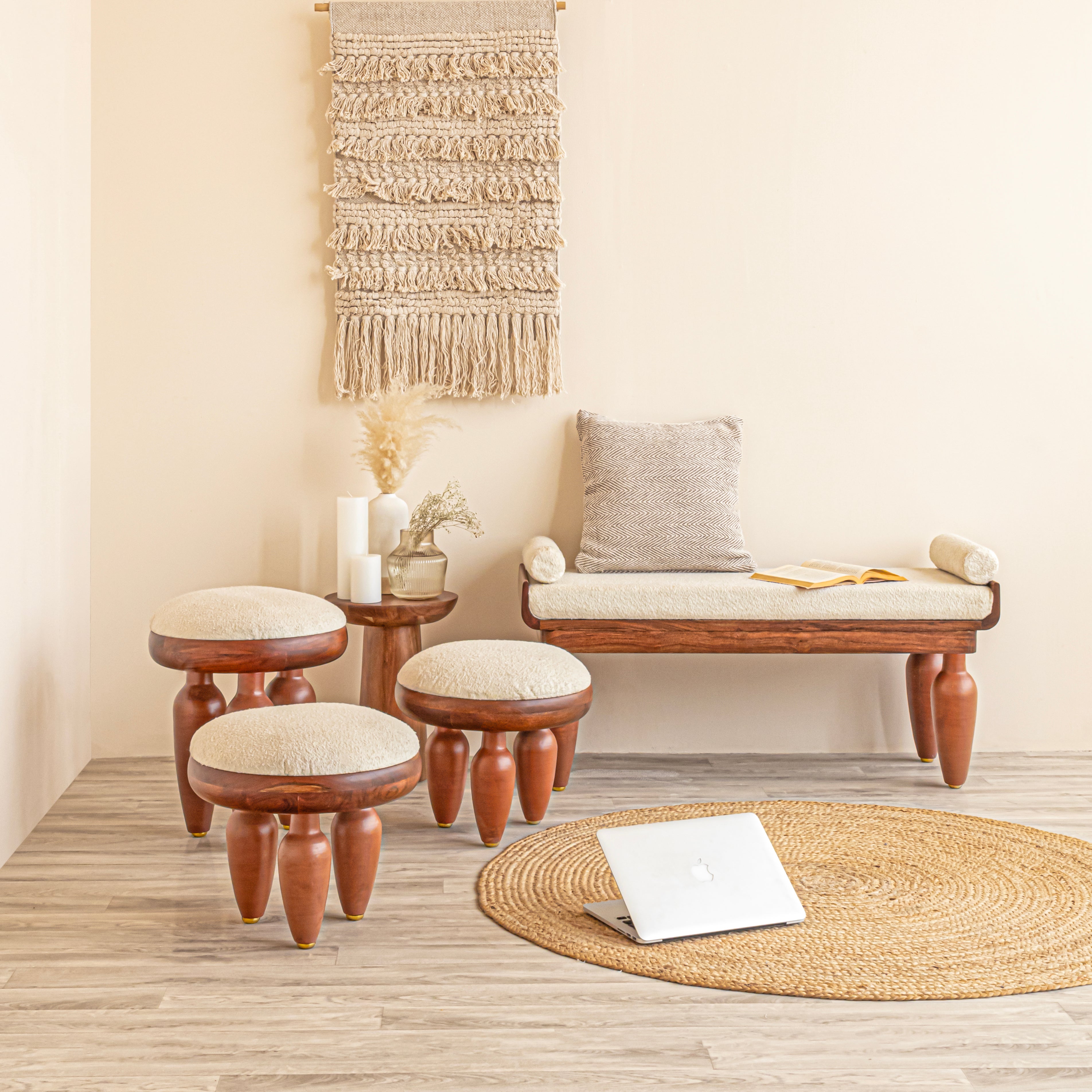 Bench: 41.3 x 15.7 x 18.89 Stool: 15.9 x 13.7 x 13.7 Poufee: 11.4 x 14.17 x 14.17 Dimensions (in inches):