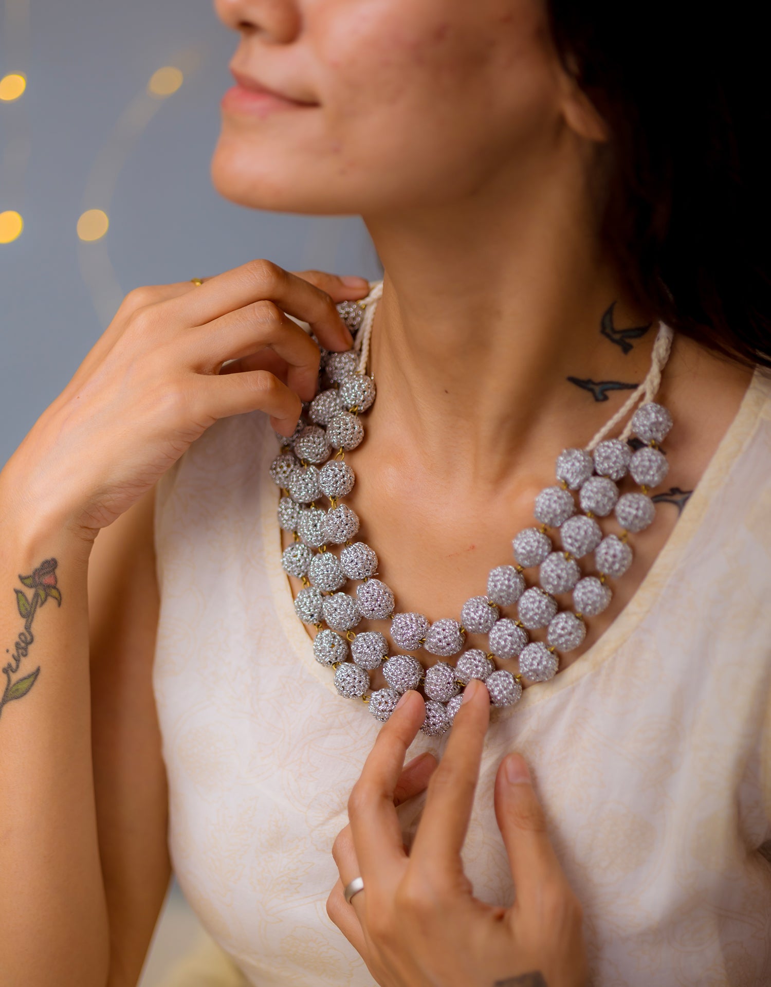 Aadya translates to 'Primordial' or 'the first'. It's origins are as grounded and humble as that of our women artisans in Gaya. Wear our handcrafted four-layered, simple and lightweight Aadya crochet beads necklace to connect with your roots and channel the energy that first gave you life.