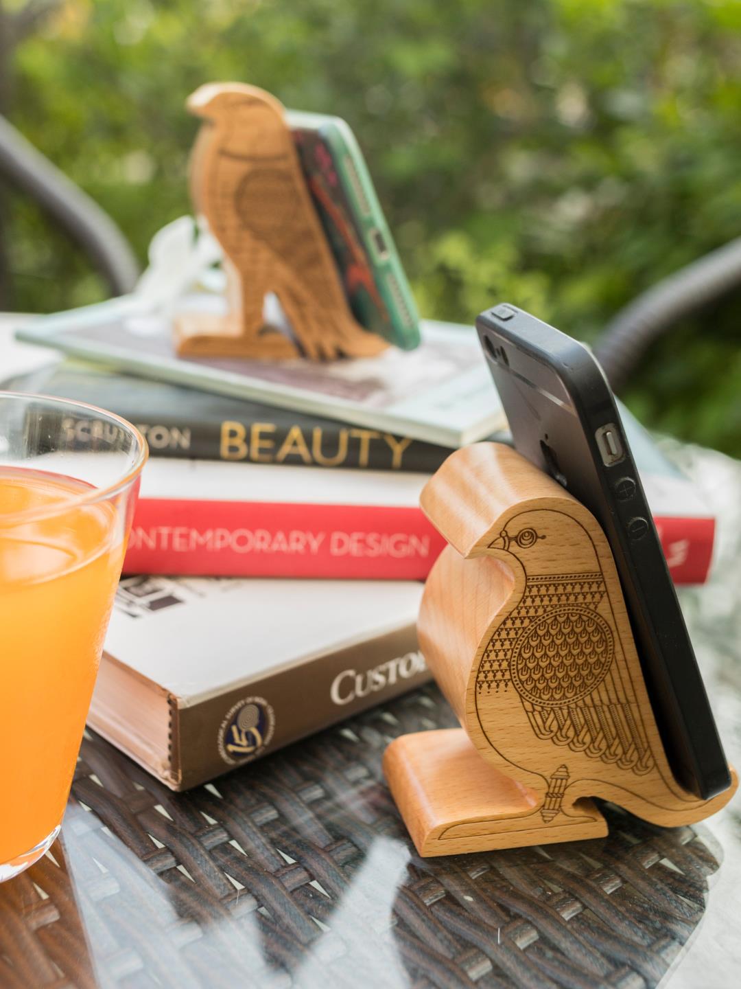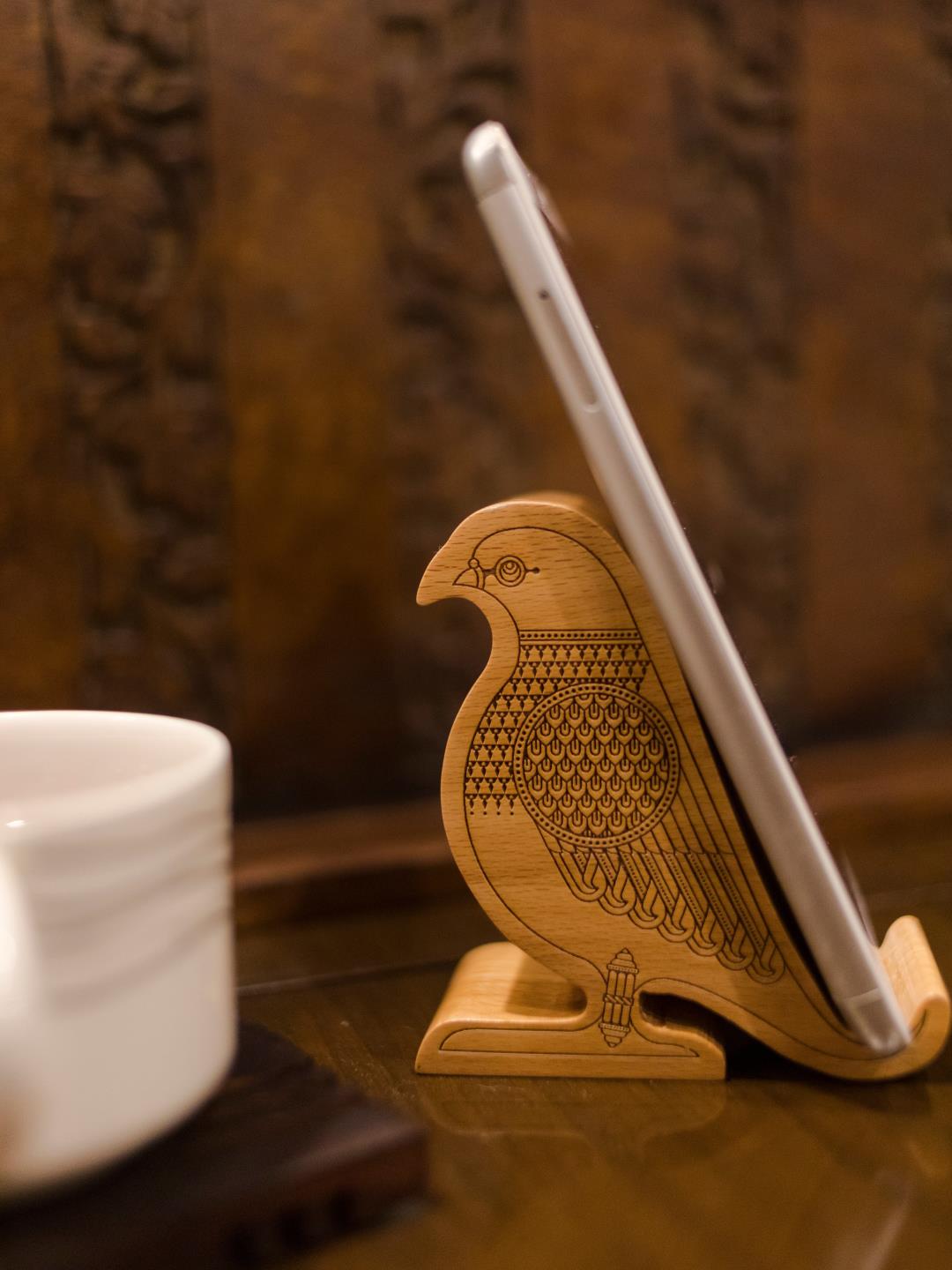 Made of solid birchwood and etched with great detail our pigeon might not be able to fly but can prove to be unique holders for your cell phones - the present icon of instant messaging. This handcrafted object represents beauty carved from the soul of India.