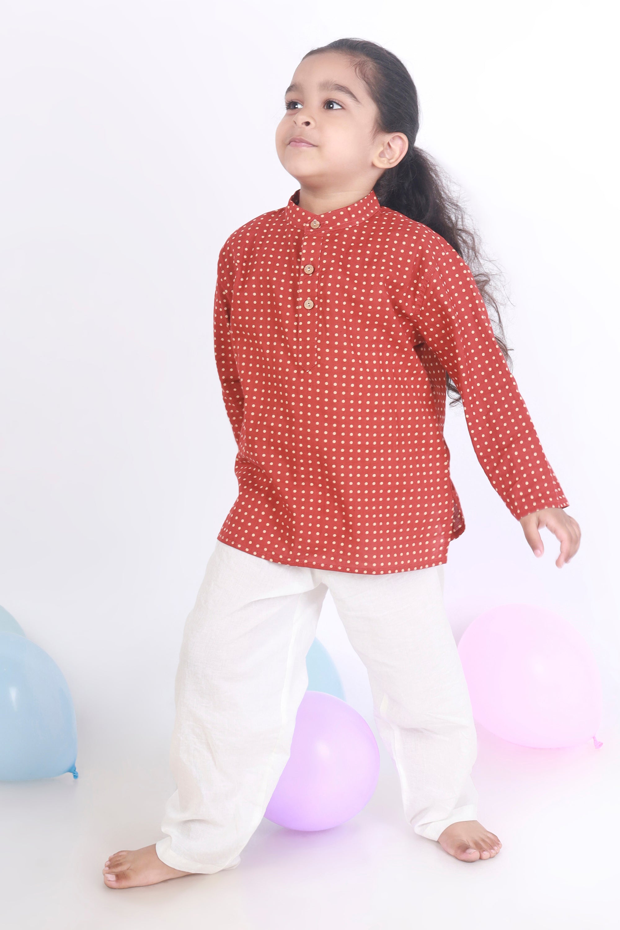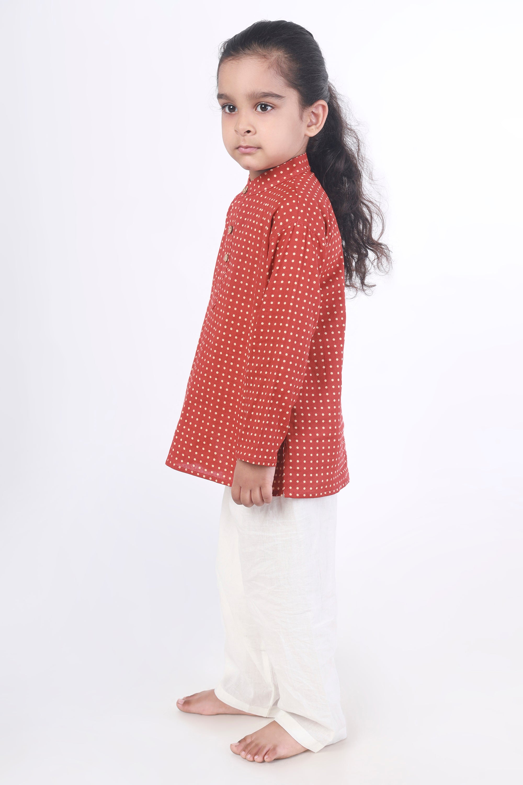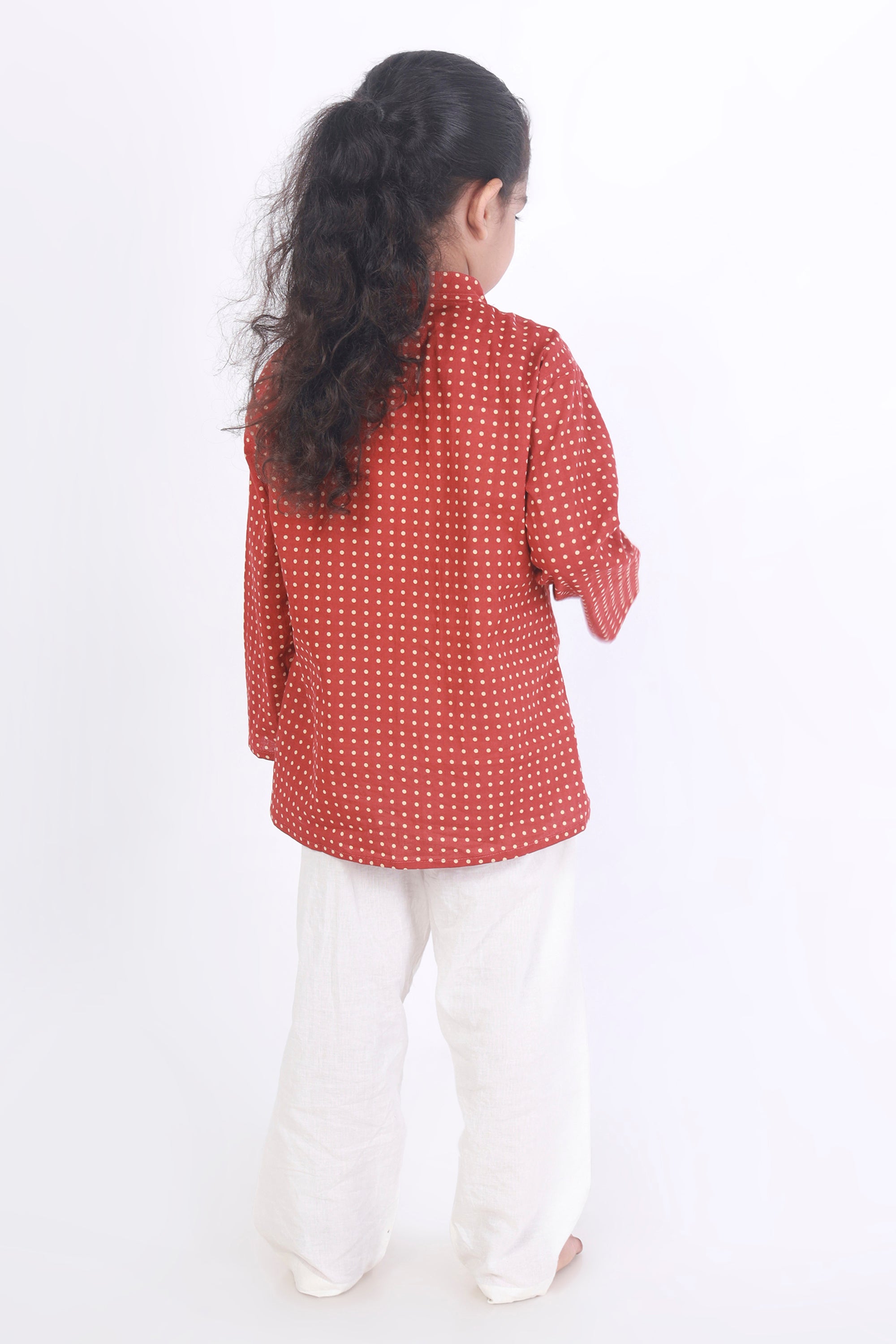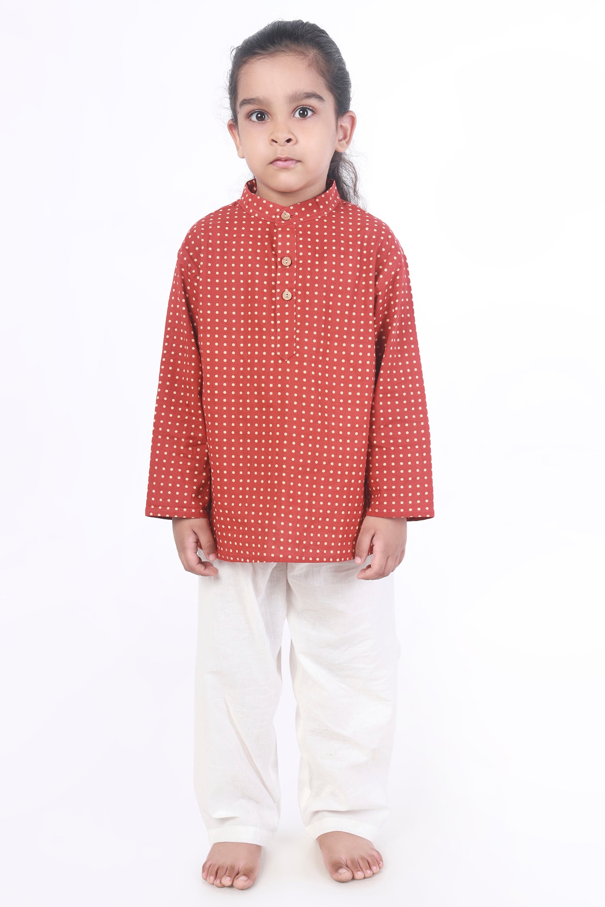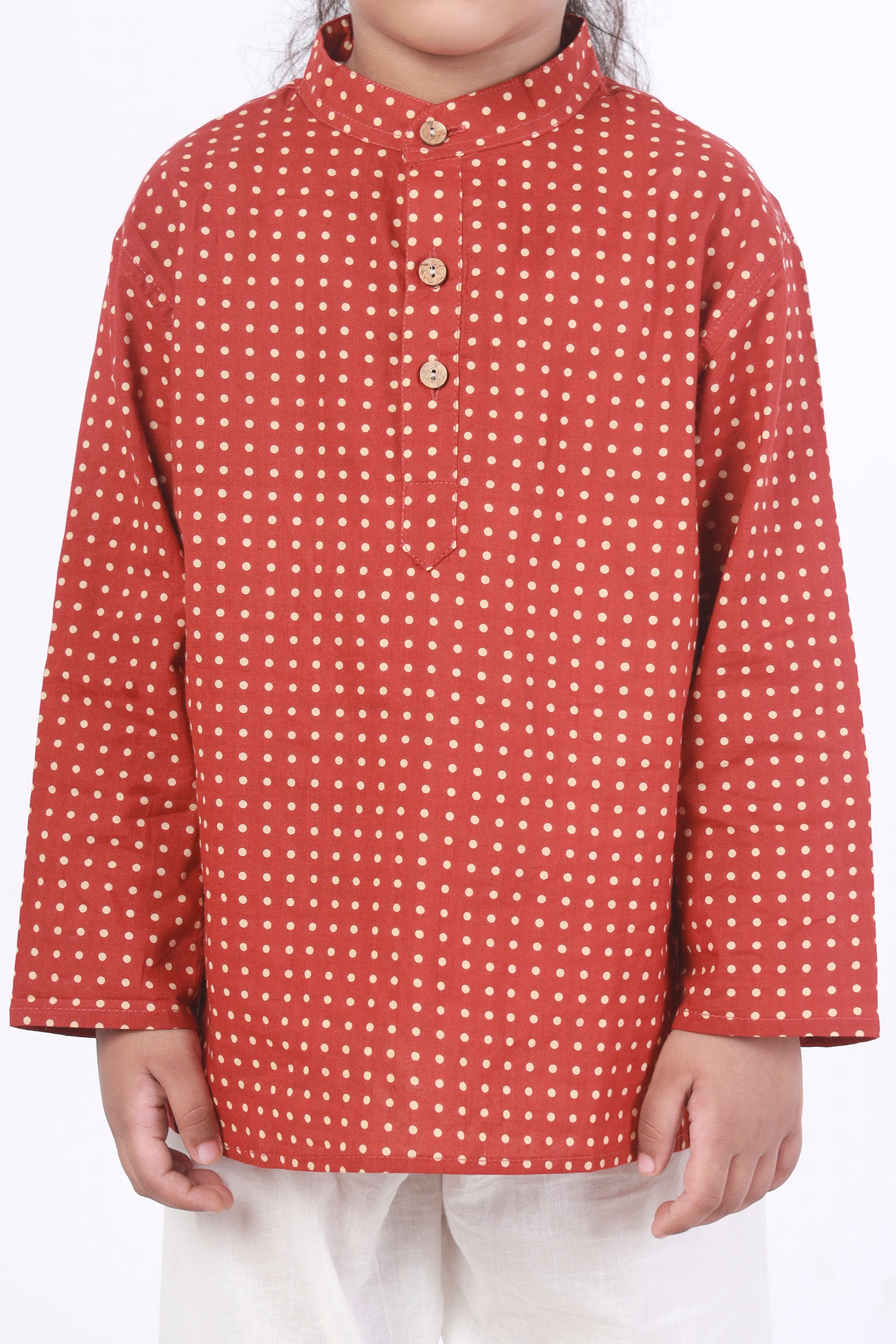 Kids Cotton Nightsuit – Red Polka Dot Kurta & Pyjama Co-ord Set for Boys & Girls