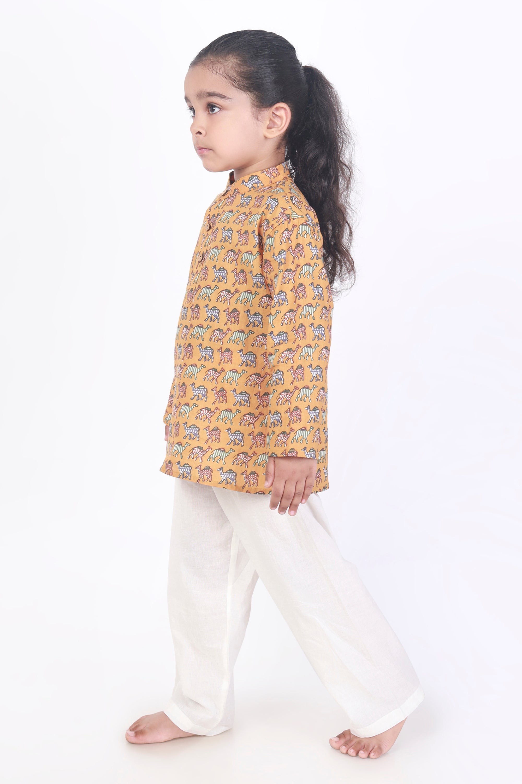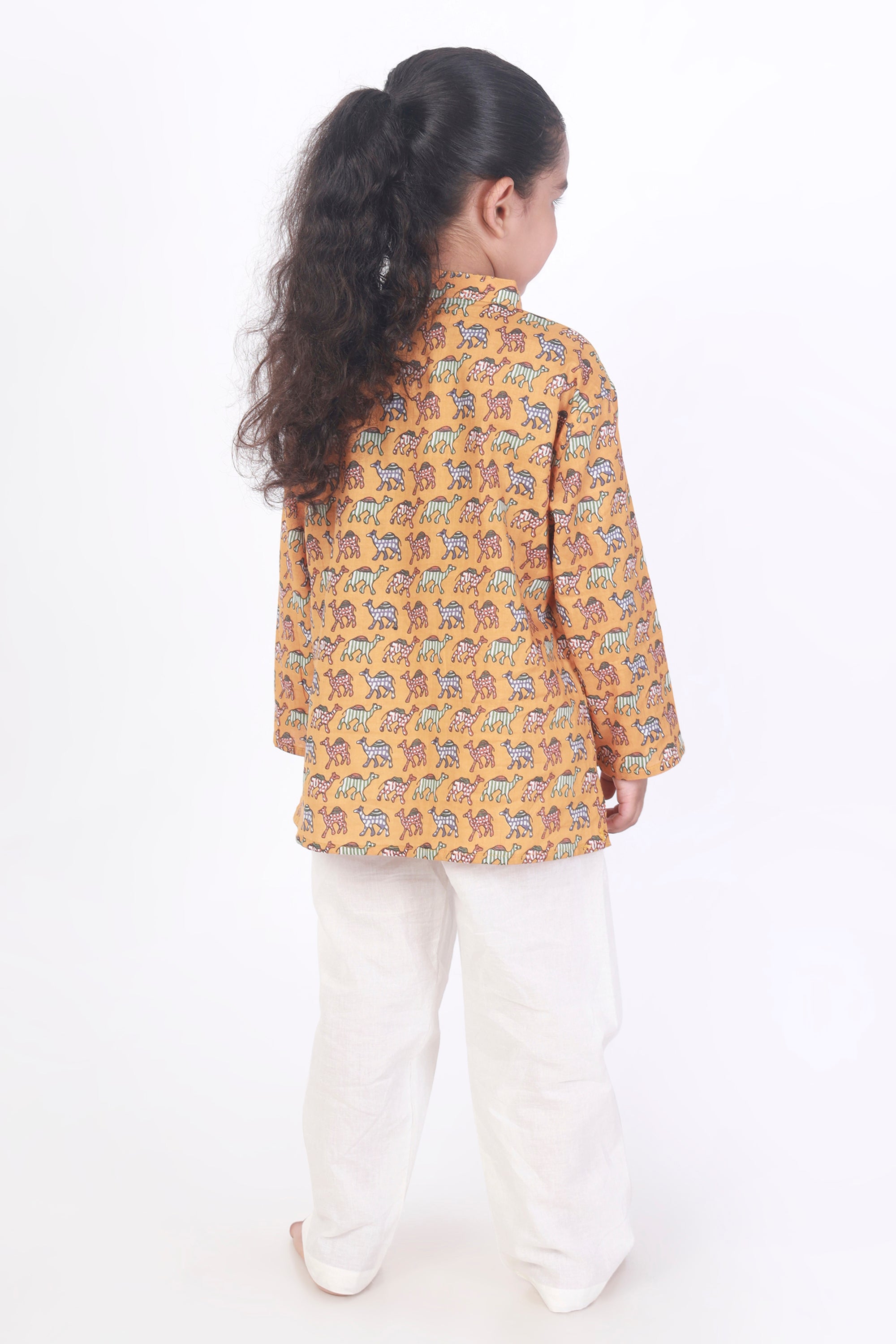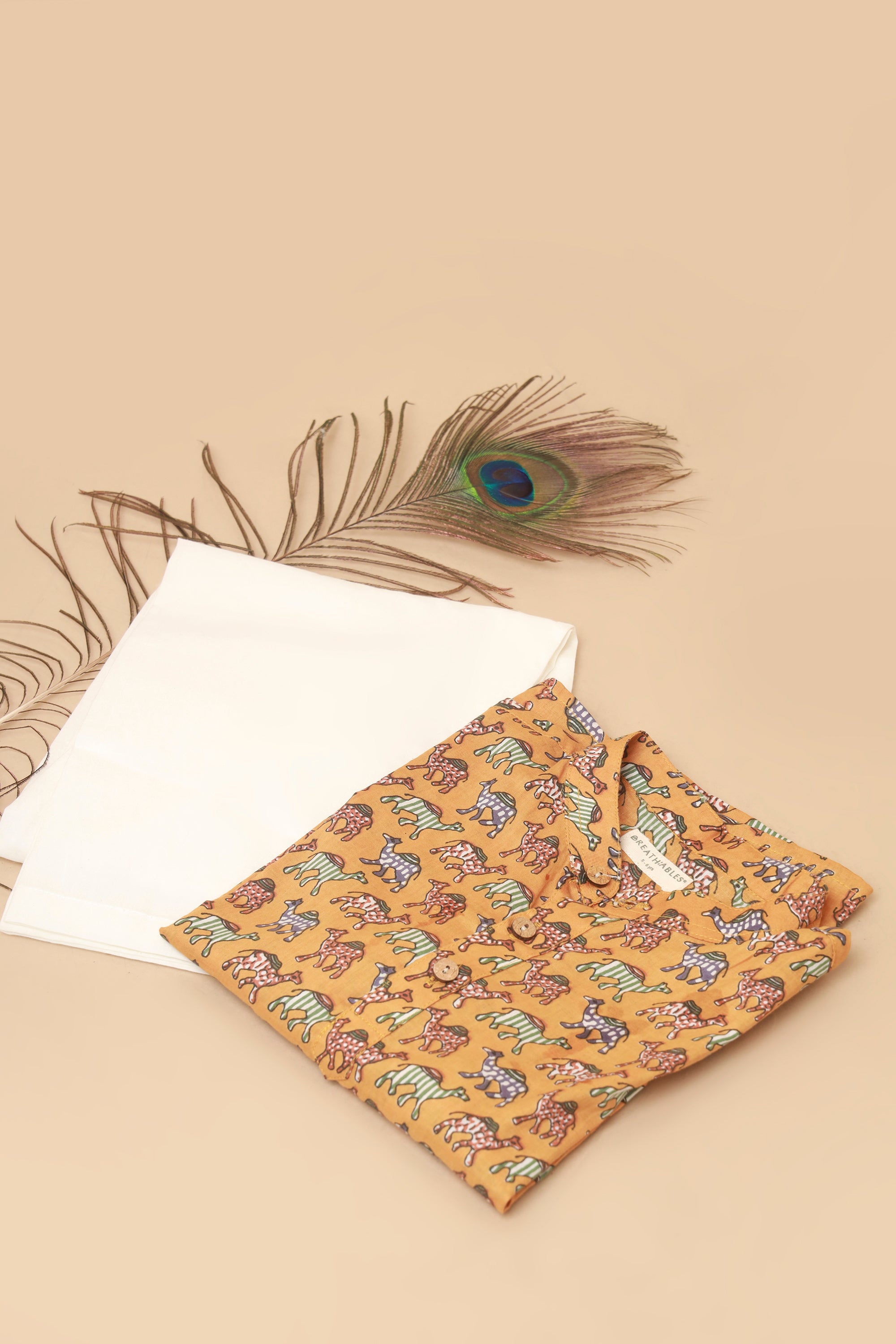 Kids Cotton Nightsuit – Yellow Camel Print Kurta & Pyjama Co-ord Set for Boys & Girls
