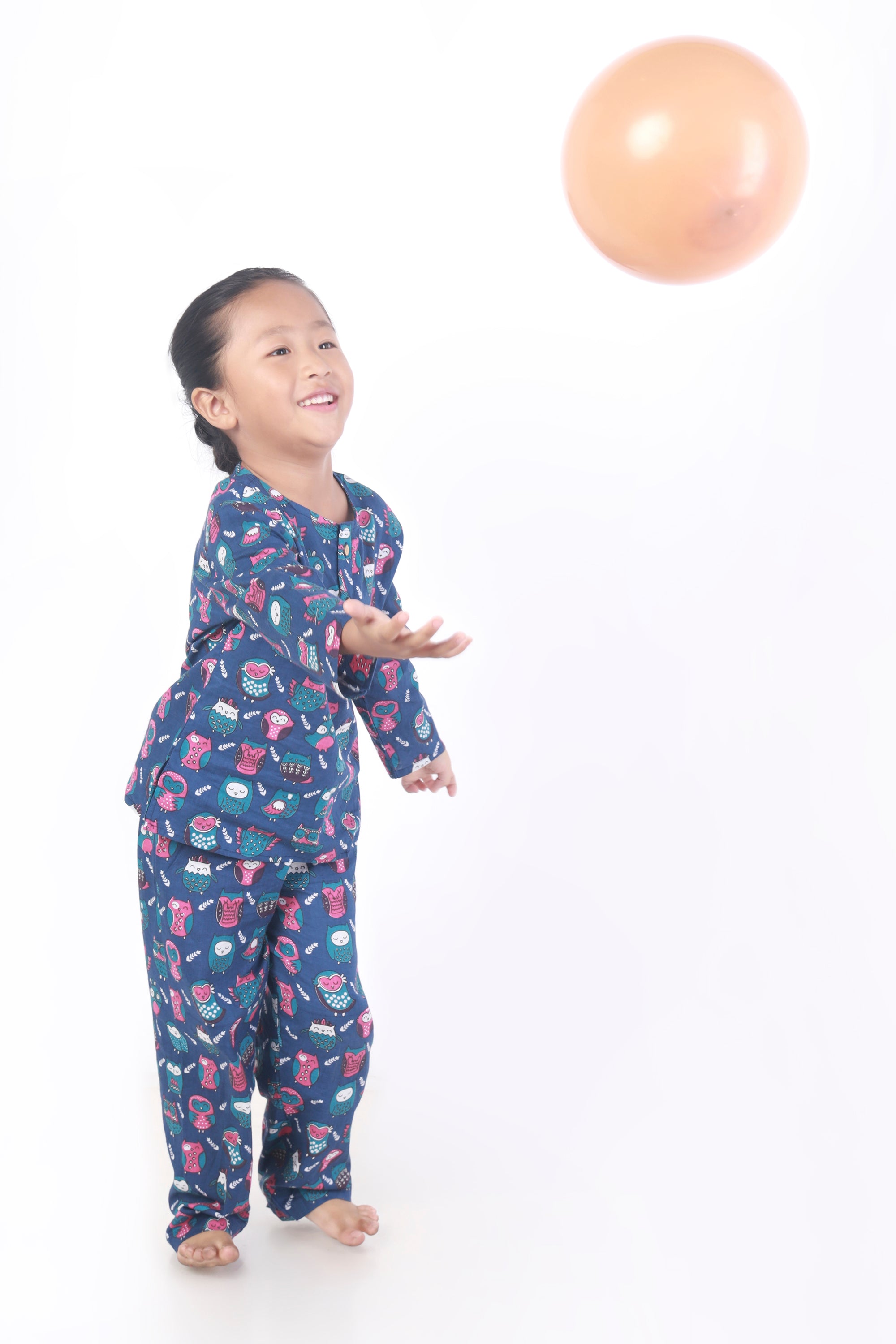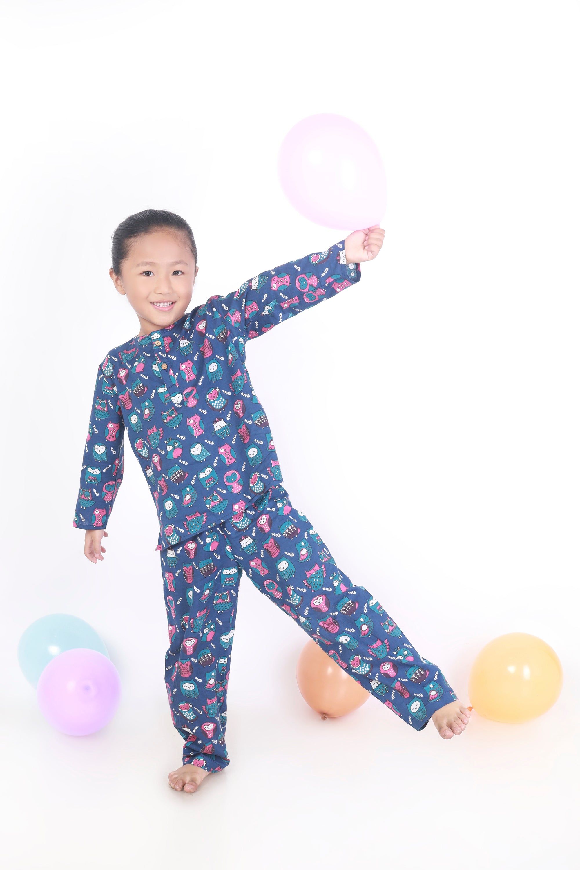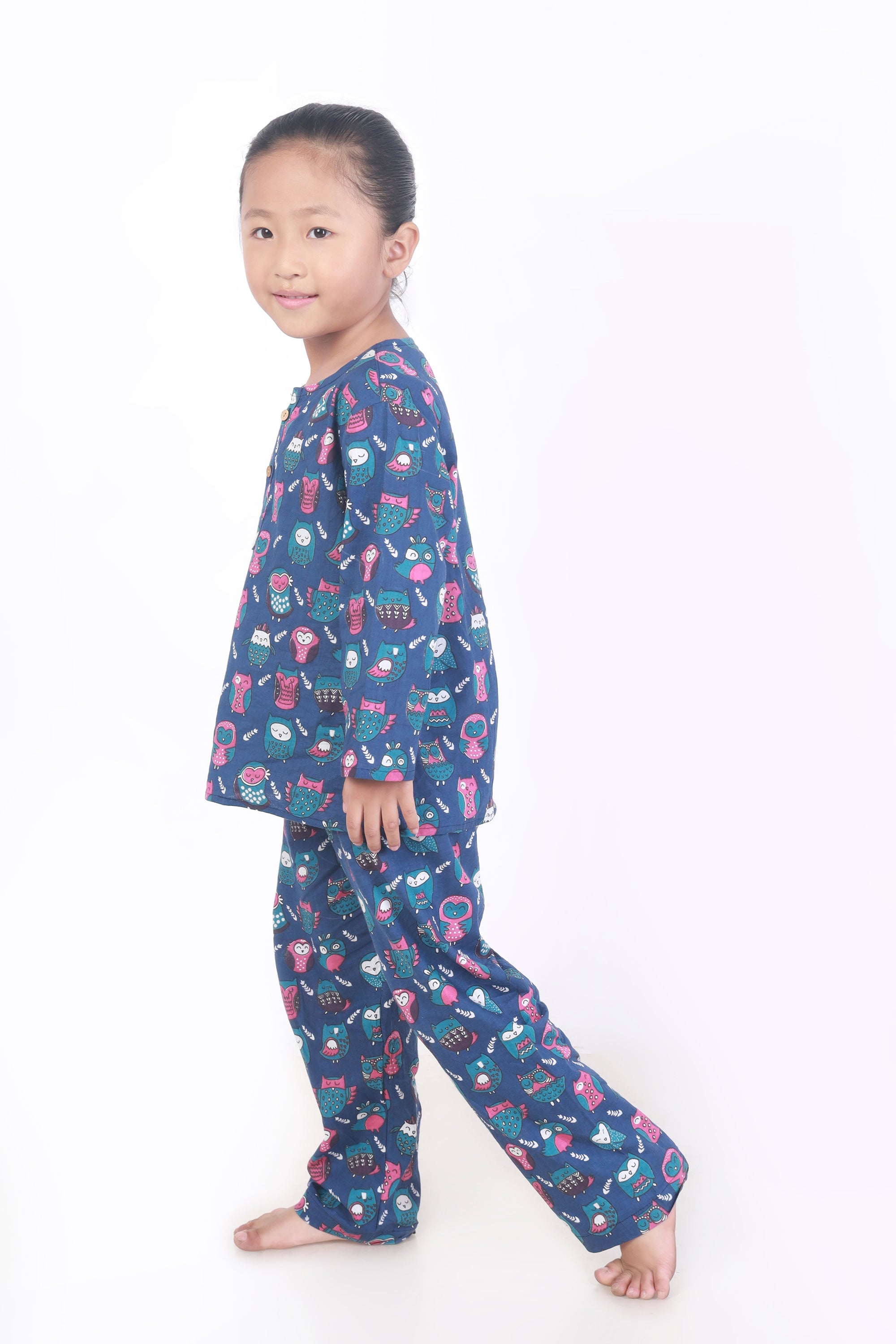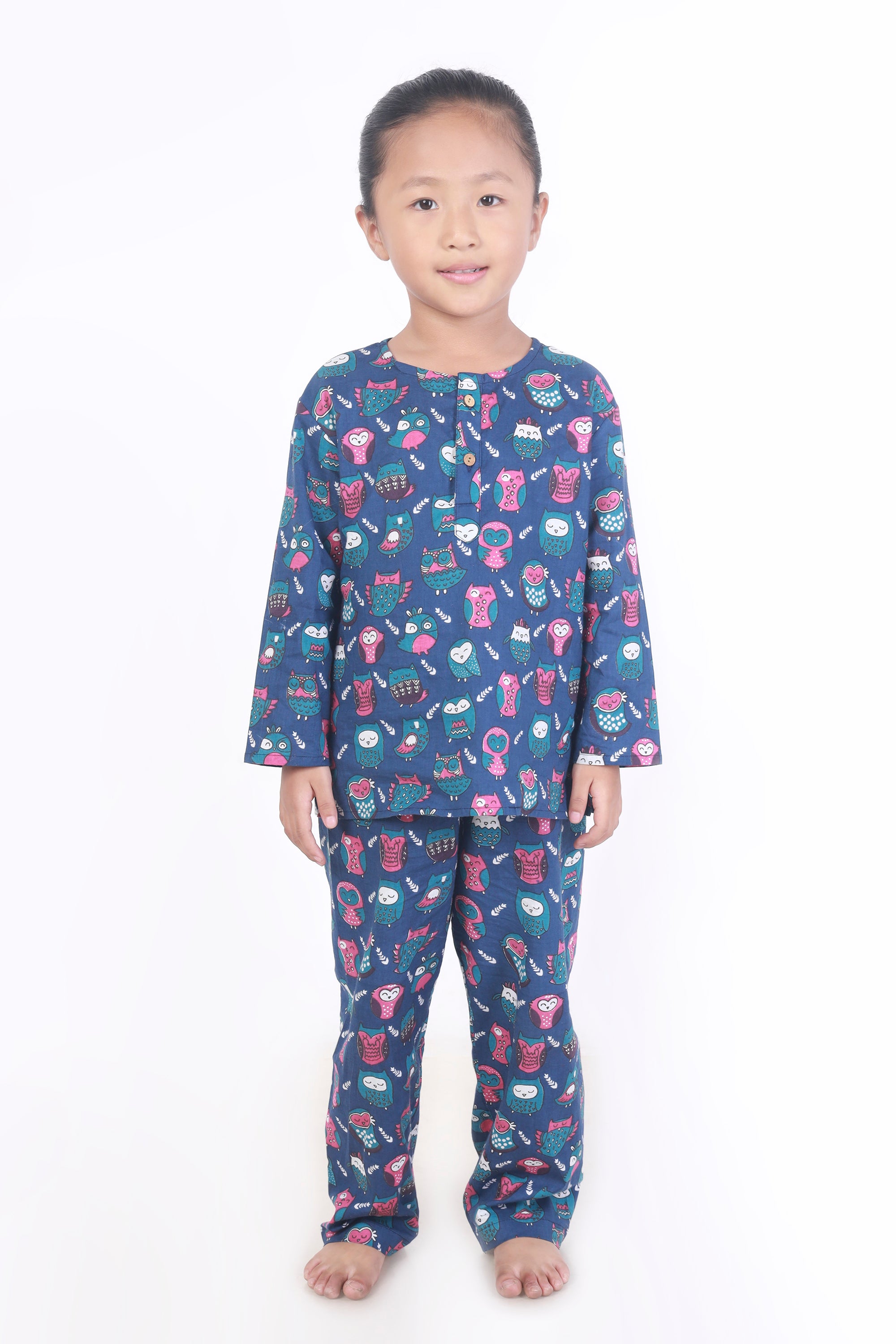 Kids Cotton Owl Print Co-ord Nightsuit – Navy Blue
