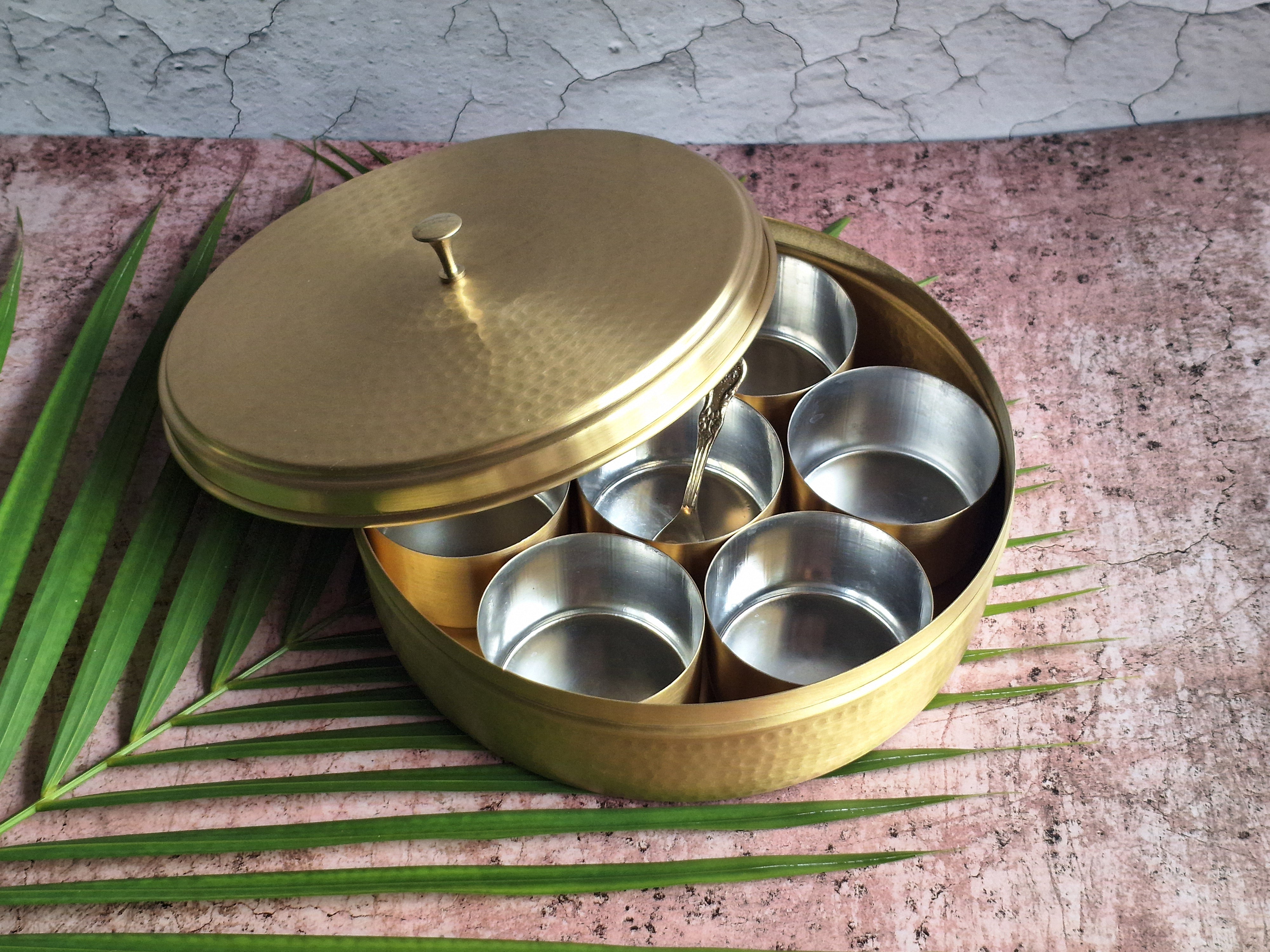 Antioxidant Preservation: Brass safeguards the rich antioxidants in spices, ensuring flavors and health benefits stay intact. Our brass masala box is the ideal choice for preserving the potency of your spices and groceries.