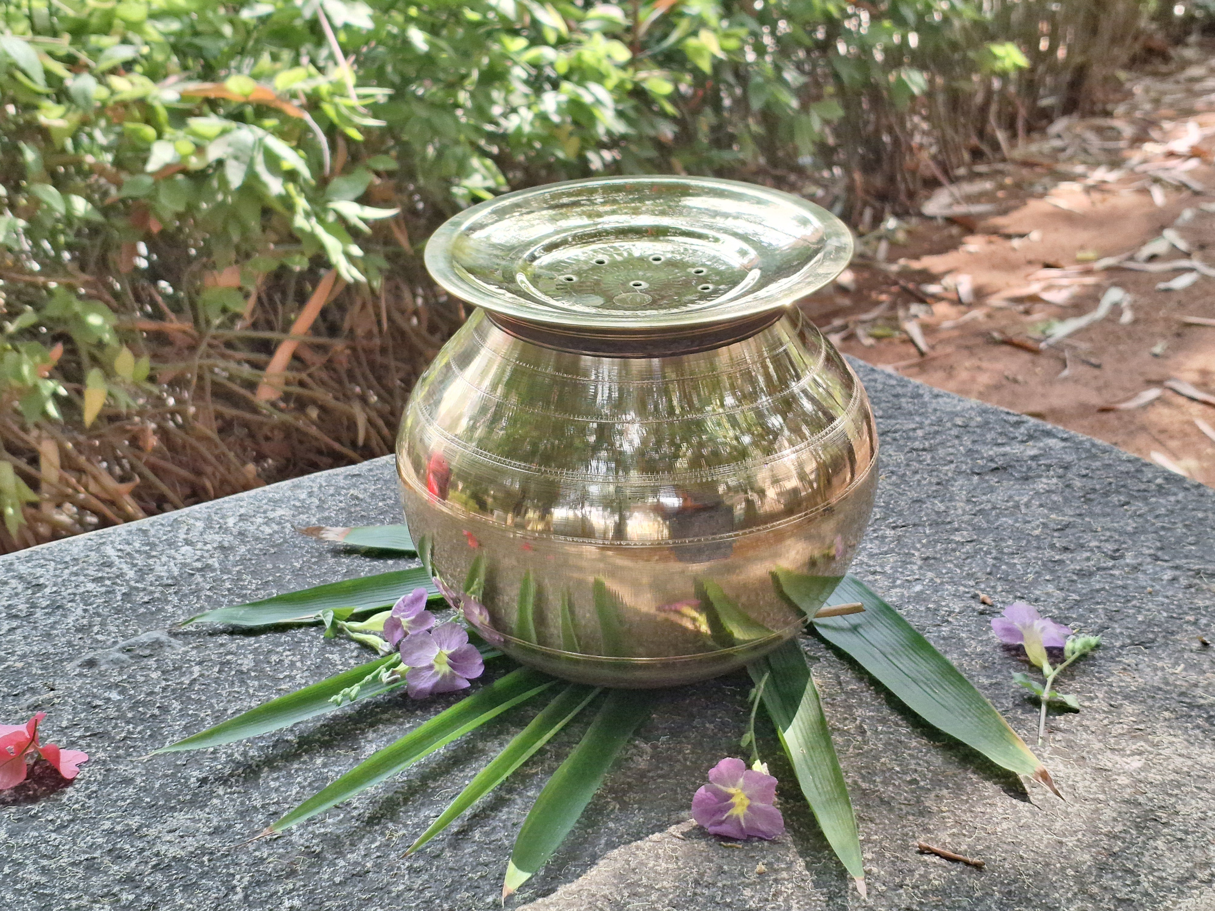 Pure Brass Pongal Pot,Crafted with meticulous detail and honoring age-old techniques, this pot stands as a testament to heritage and celebration. Traditionally, on the auspicious day of Pongal, the quintessential 'Sakkara Pongal' is lovingly prepared in this very vessel, encapsulating the essence of festivity and flavor.