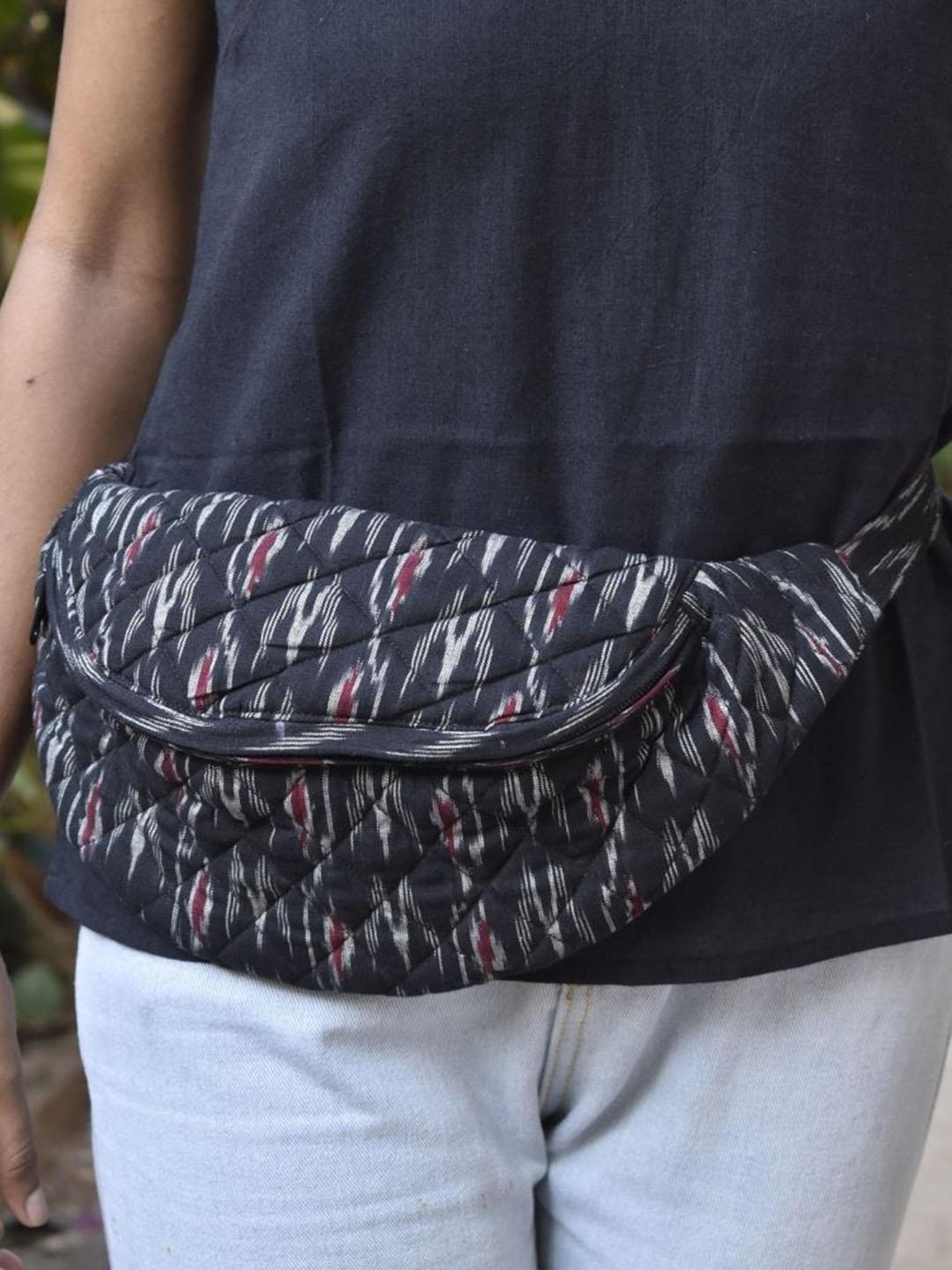 Kriti Sustainable Livelihoods Fanny Bag or Waist Bag in Black Ikat