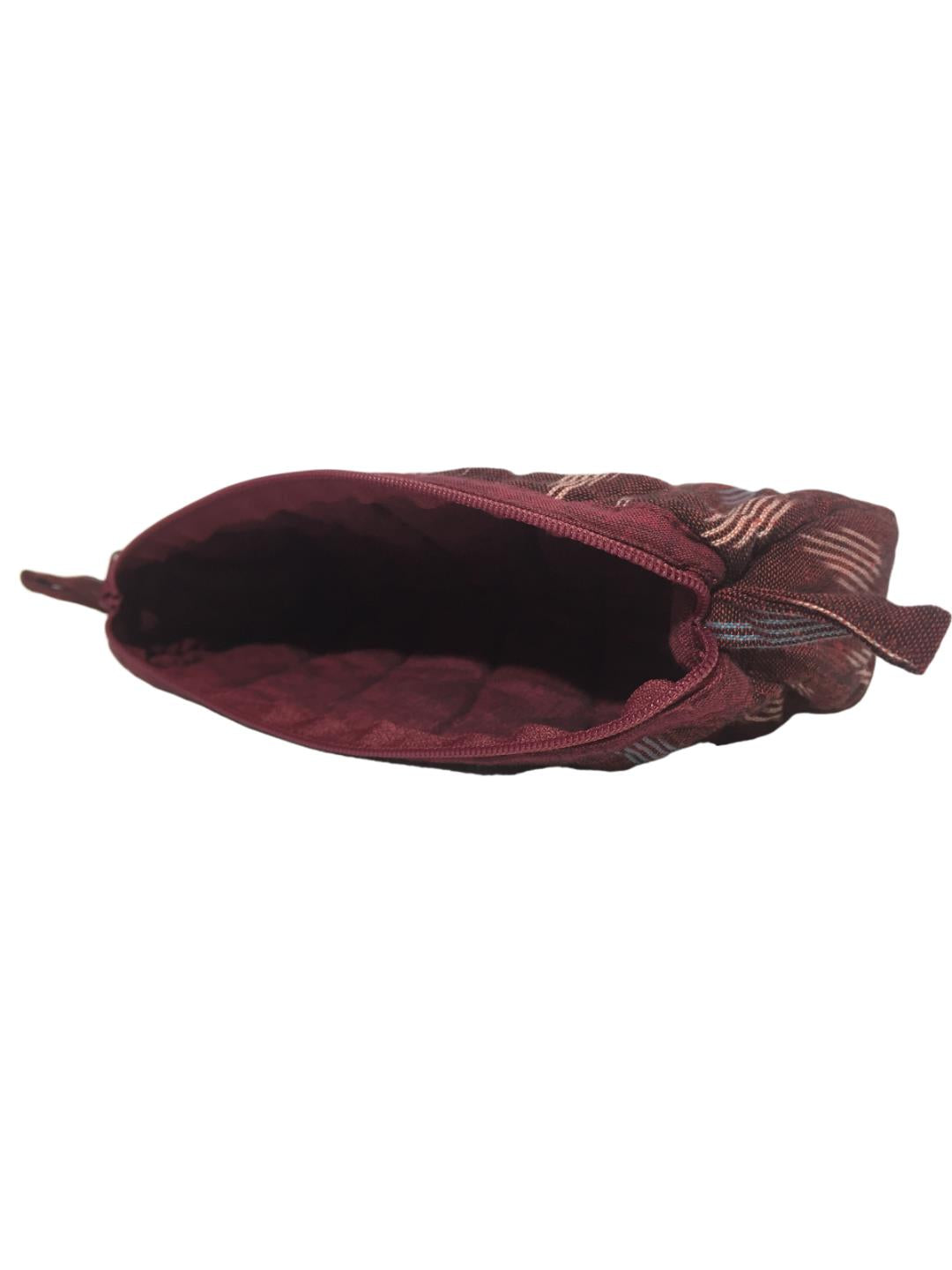 A smart pouch in ikat cotton. This style is ideal for stationery or even as a spectacle case. Made in ikat cotton outside with mangalagiri cotton lining inside. Compartments on the inside for better organization, Sturdy zip to keep things in place.