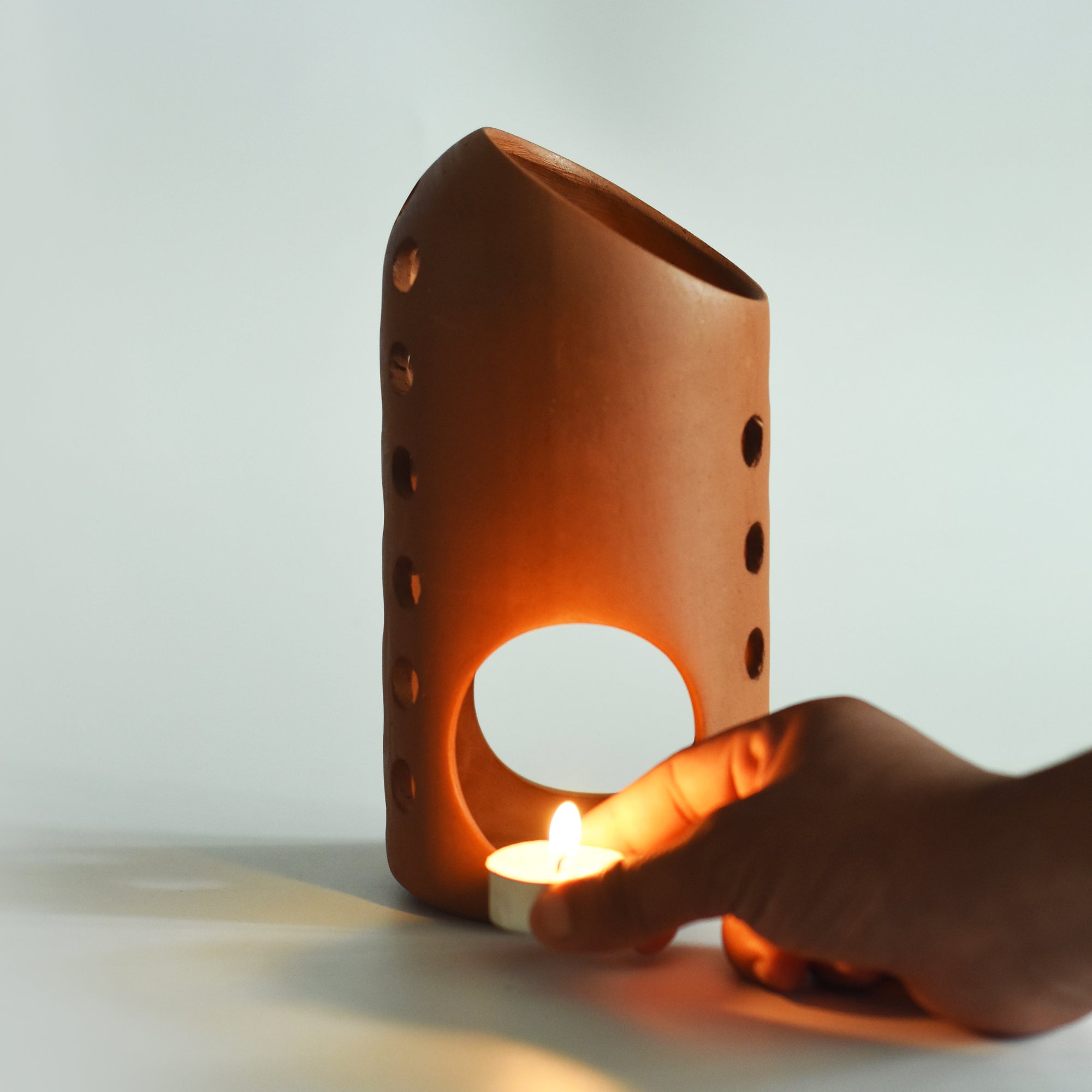 Package contains : 1 terracotta clay candle stand + 2 complimentary tealight candles
