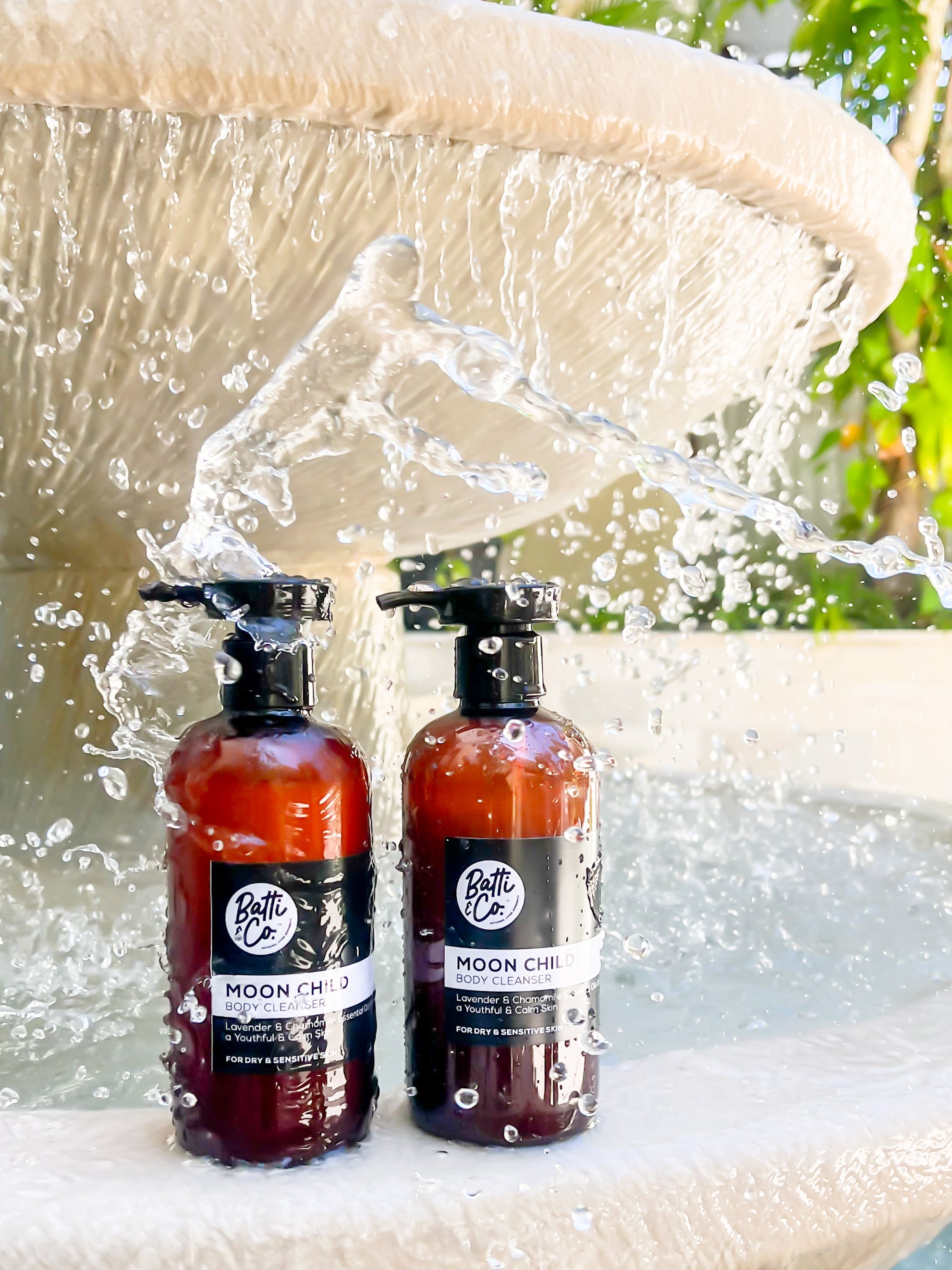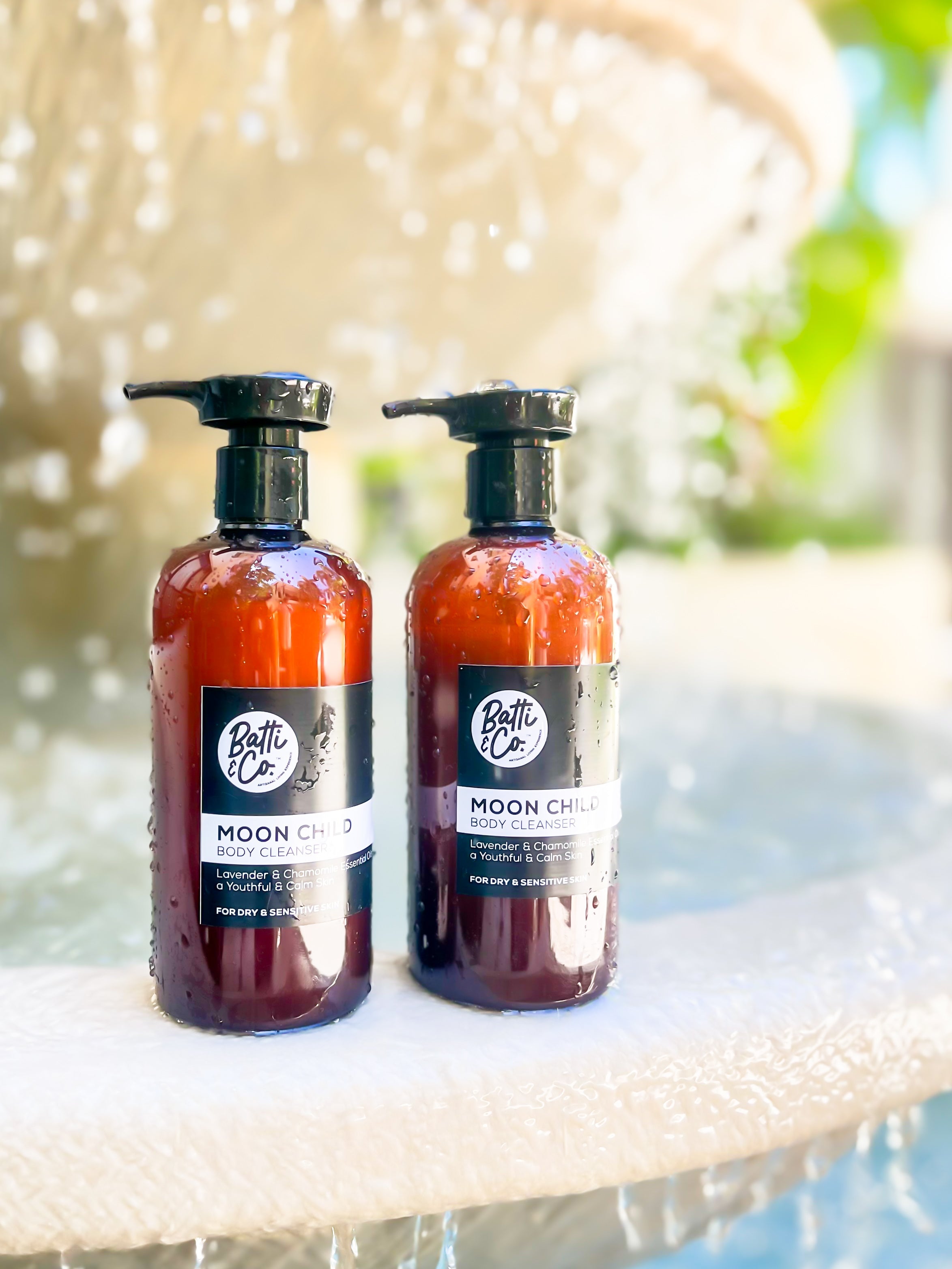Introducing Moon Child Body Cleanser, specially formulated for dry and sensitive skin. Infused with soothing lavender and calming chamomile essential oils, this gentle cleanser leaves your skin feeling refreshed, hydrated, and youthful. Perfect for daily use, it helps maintain skin’s natural moisture balance while providing a serene, aromatic experience. Keep your skin calm and rejuvenated with Moon Child Lavender and Chamomile Body Cleanser.