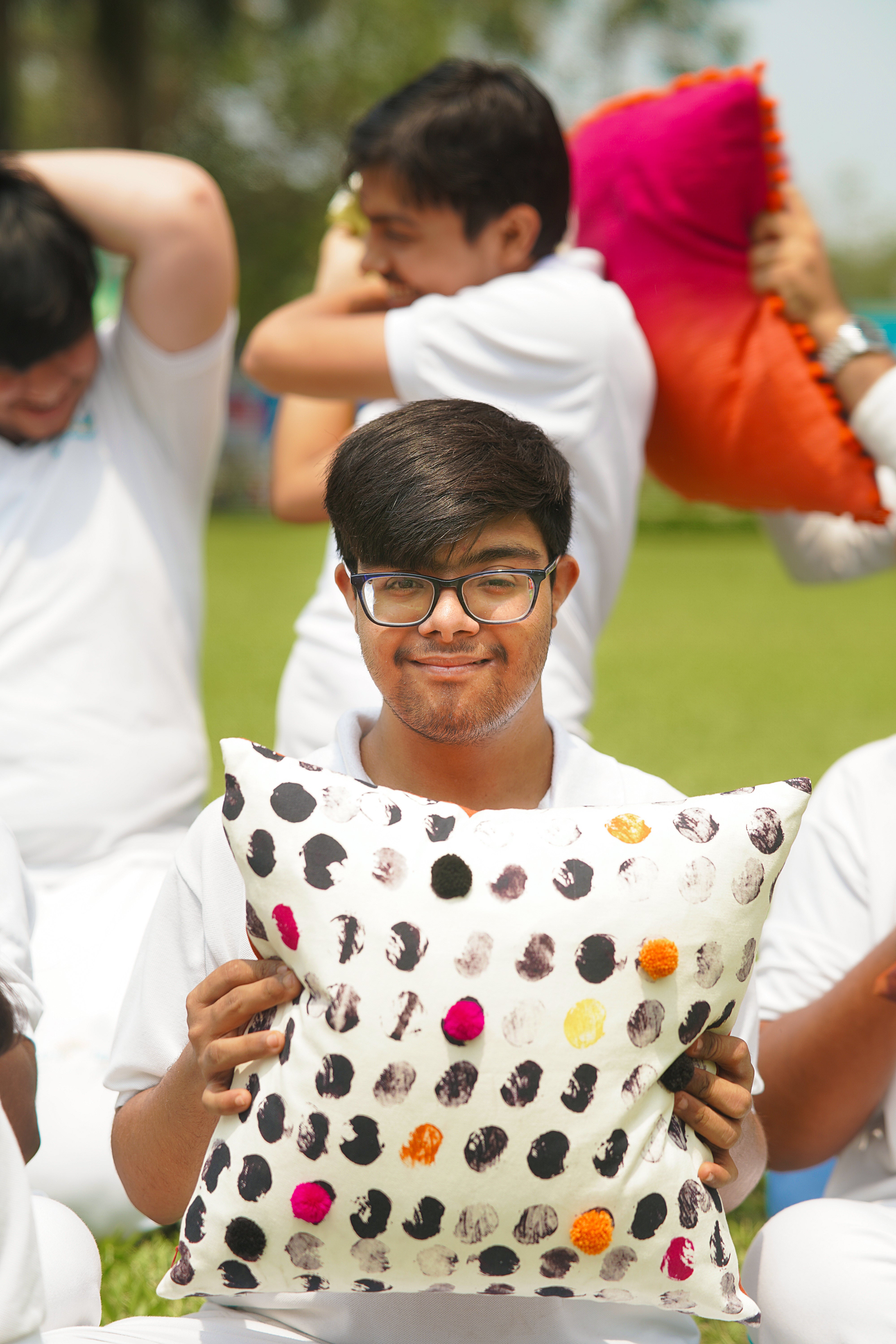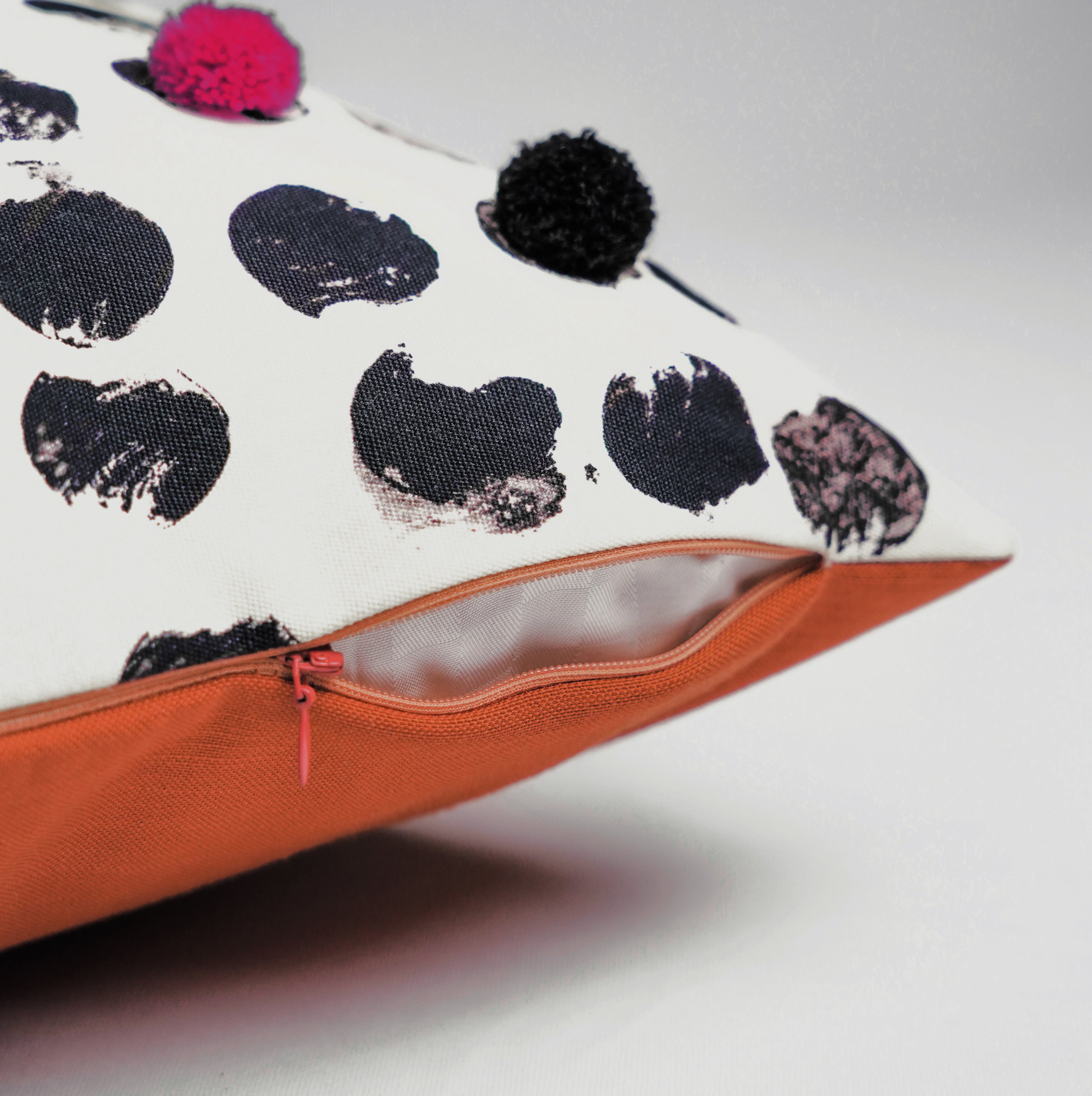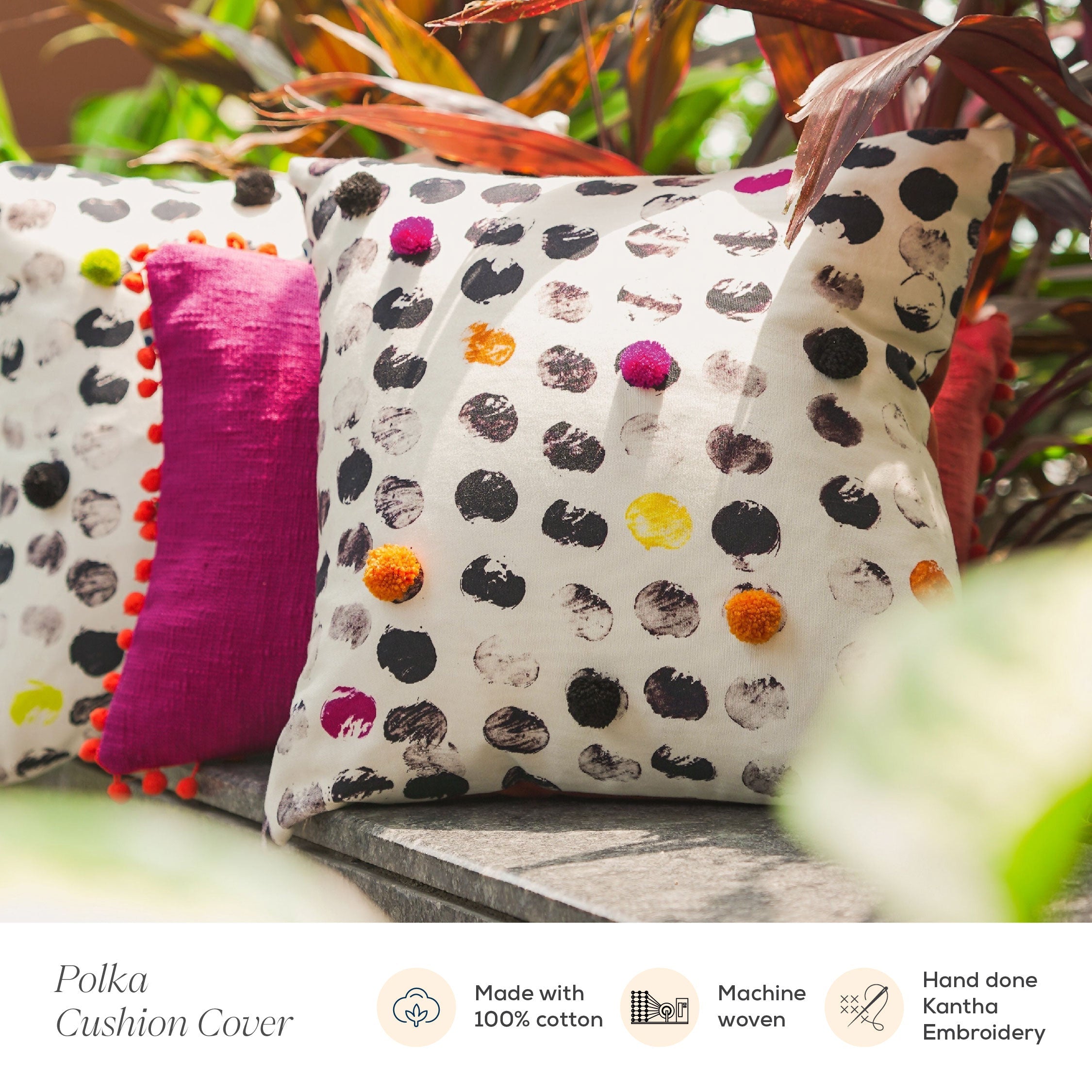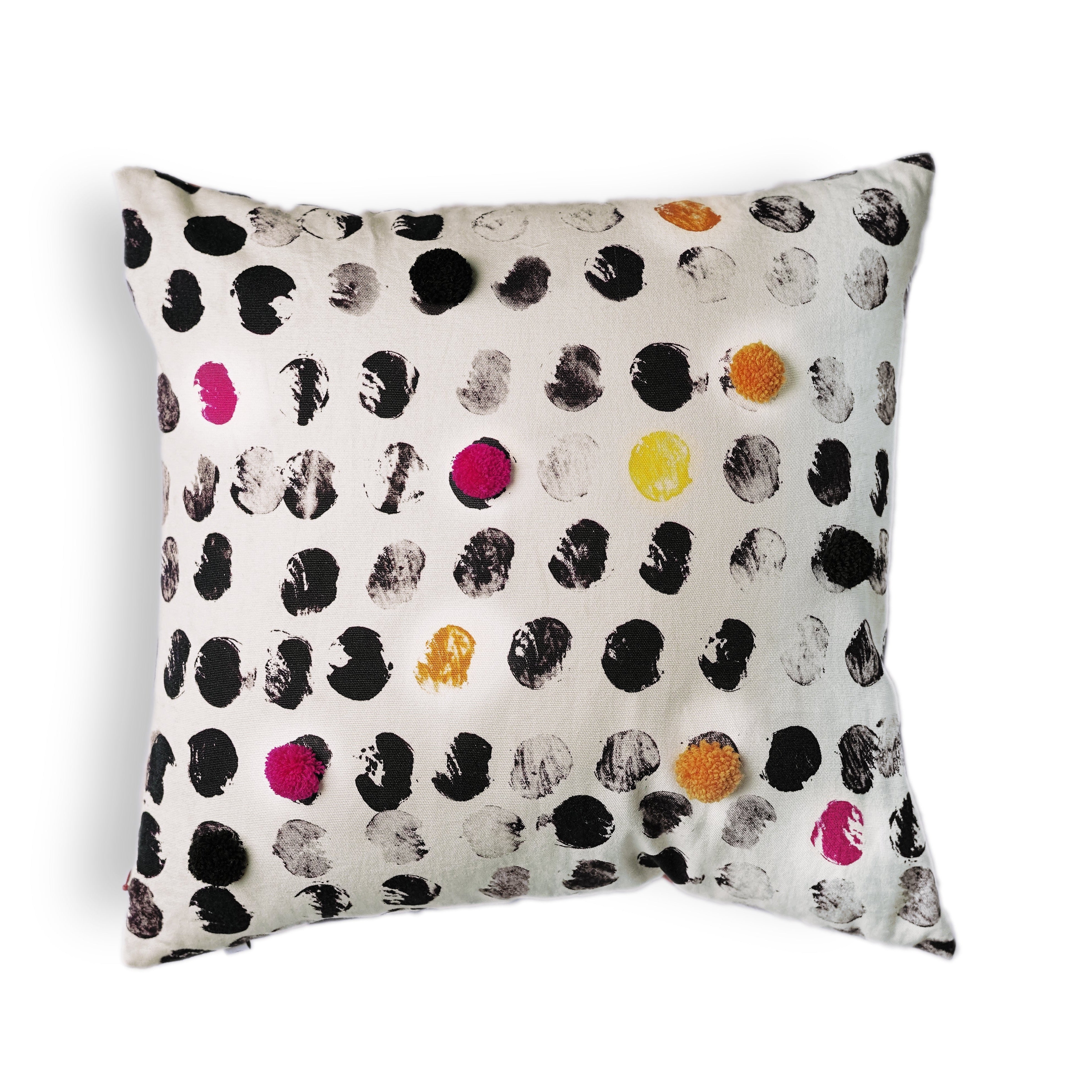 Enter the enchanting realm of our Polka cushion cover, where the creative genius of talented kids shines brightly. Hand-painted with love and care, their intricate designs of black and white textured dots are captured in a vibrant print, adorned with playful splashes of color. Each dot tells a story of youthful imagination and artistic flair, adding a unique touch of personality to your home decor. Elevate your space with this delightful fusion of modern design and the timeless innocence of childhood, sure to inspire joy and creativity in every corner.