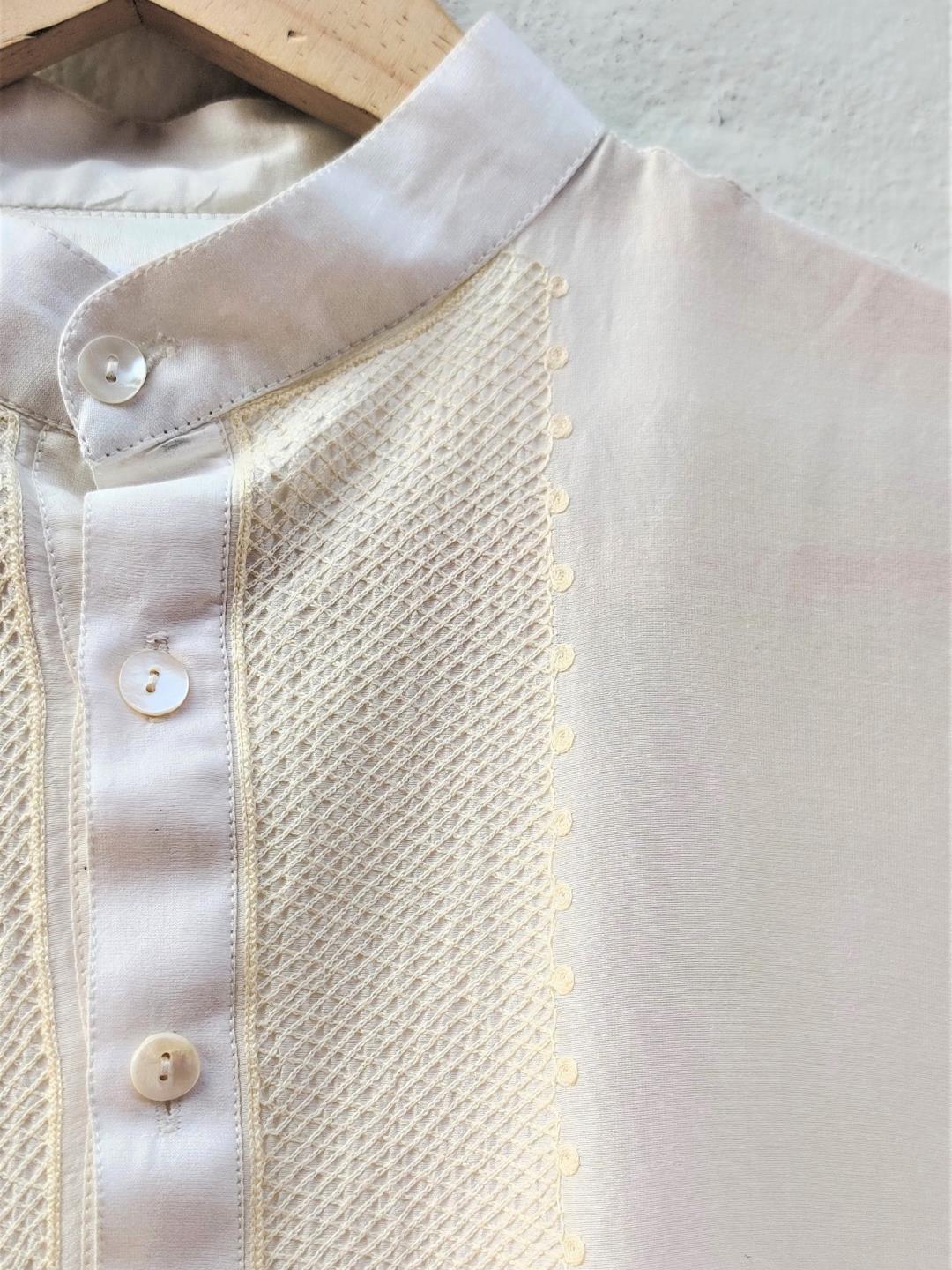 Cotton - Silk men's kurta with fine aari embroidery.