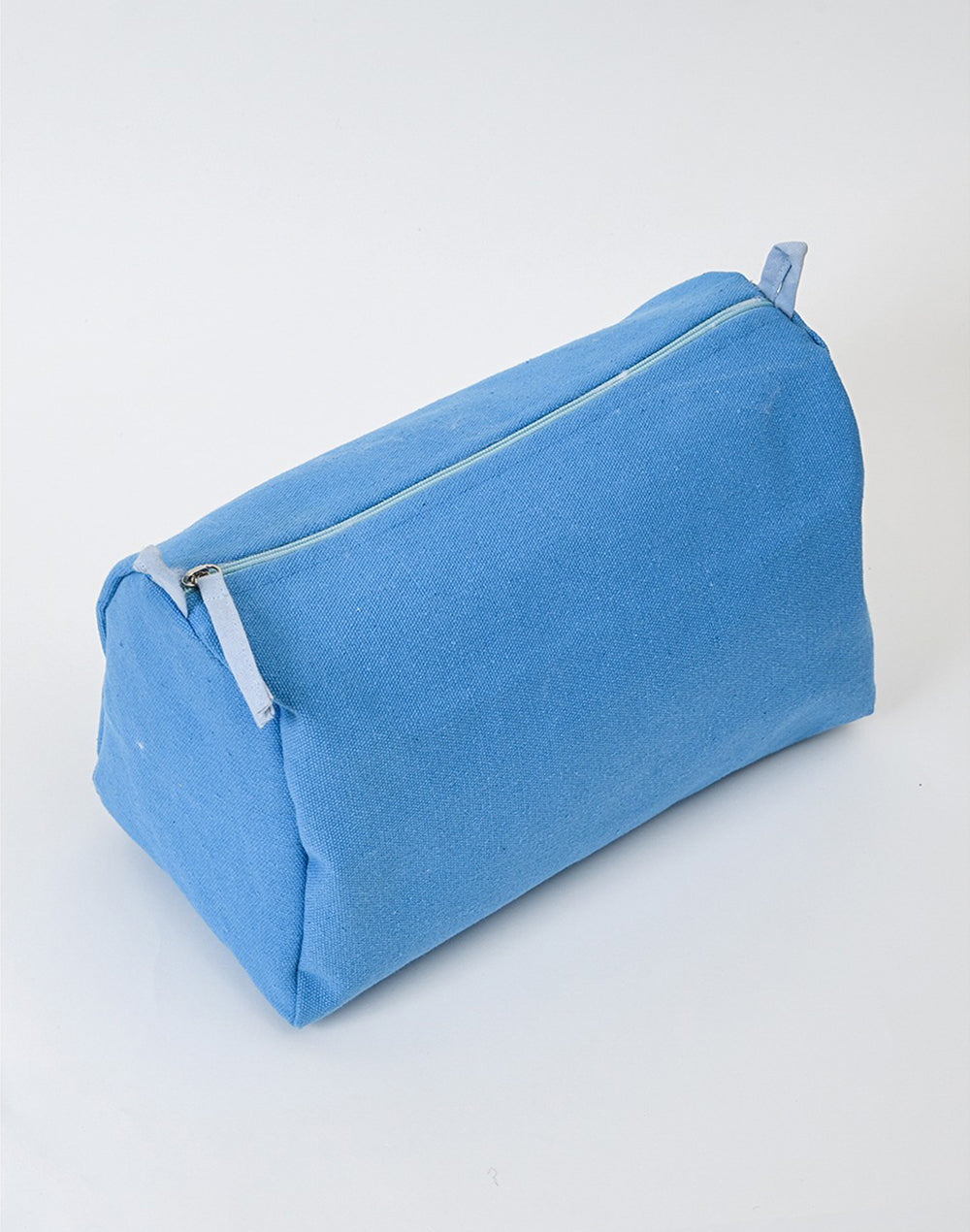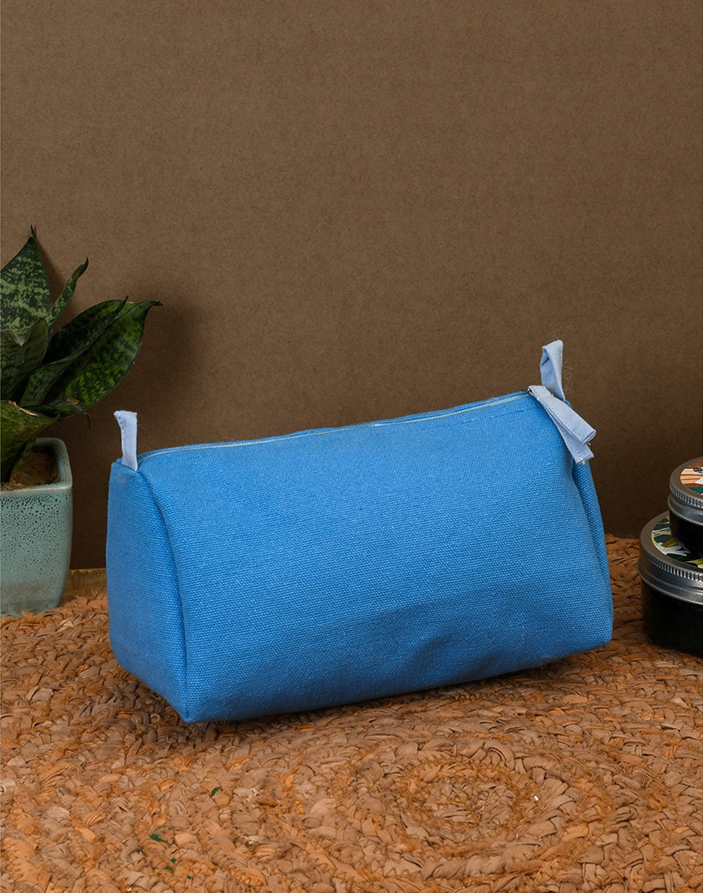 Blue Cotton Solid Plain 8x6x4 Inch Multipurpose Pouch