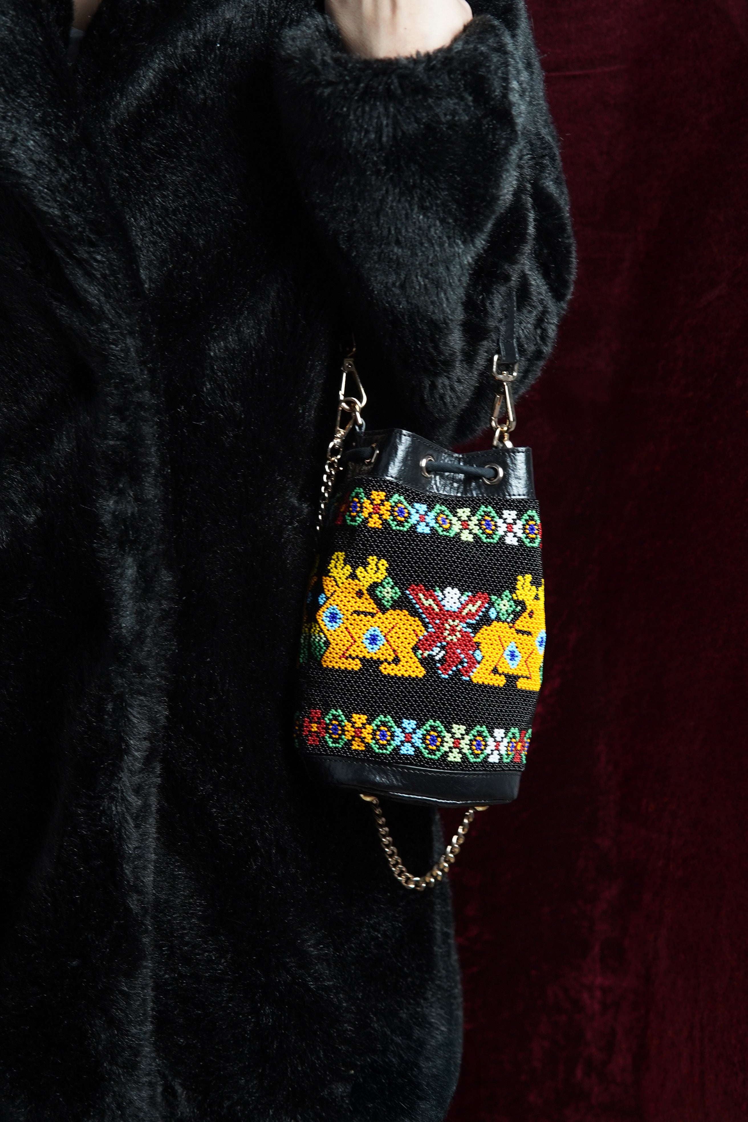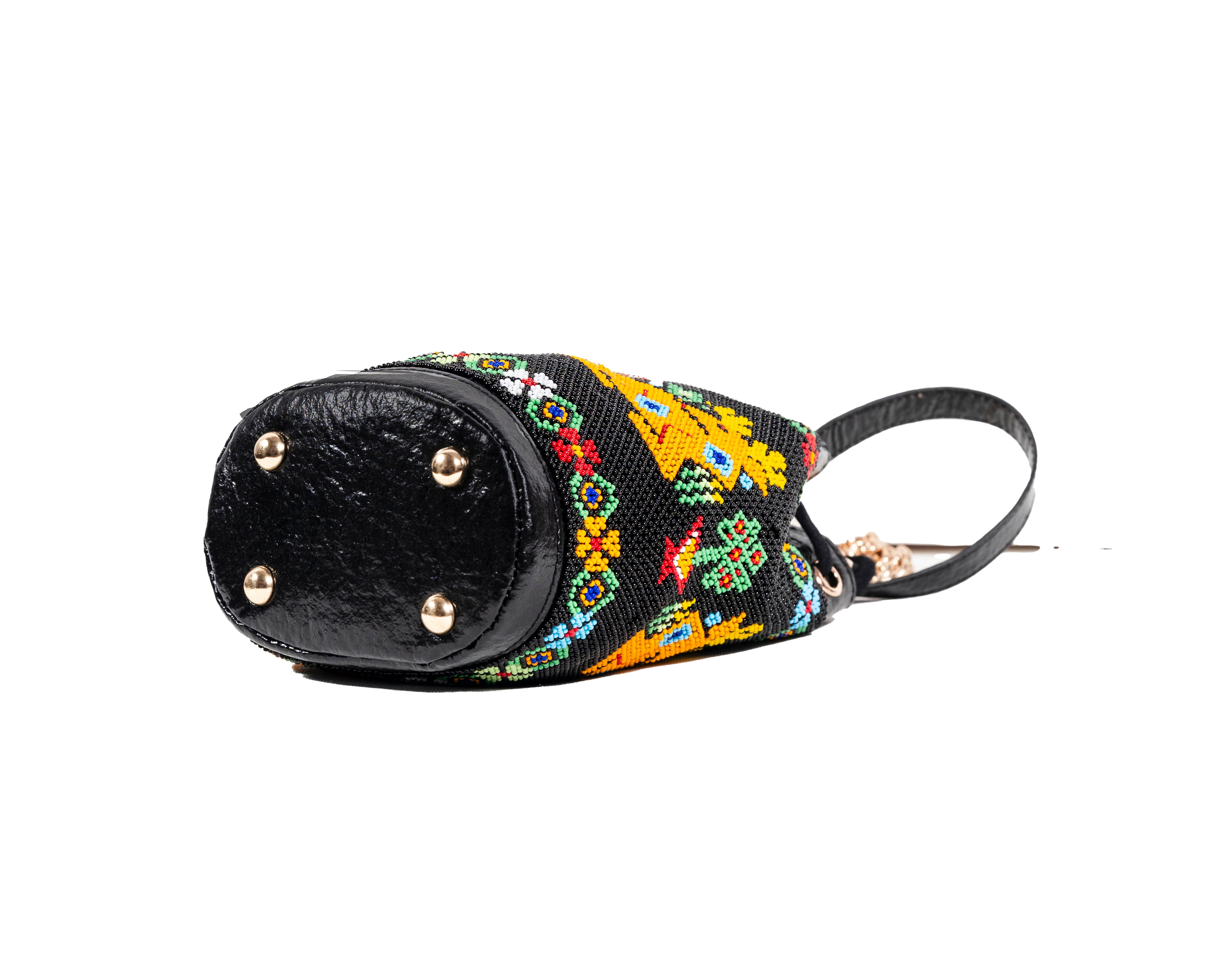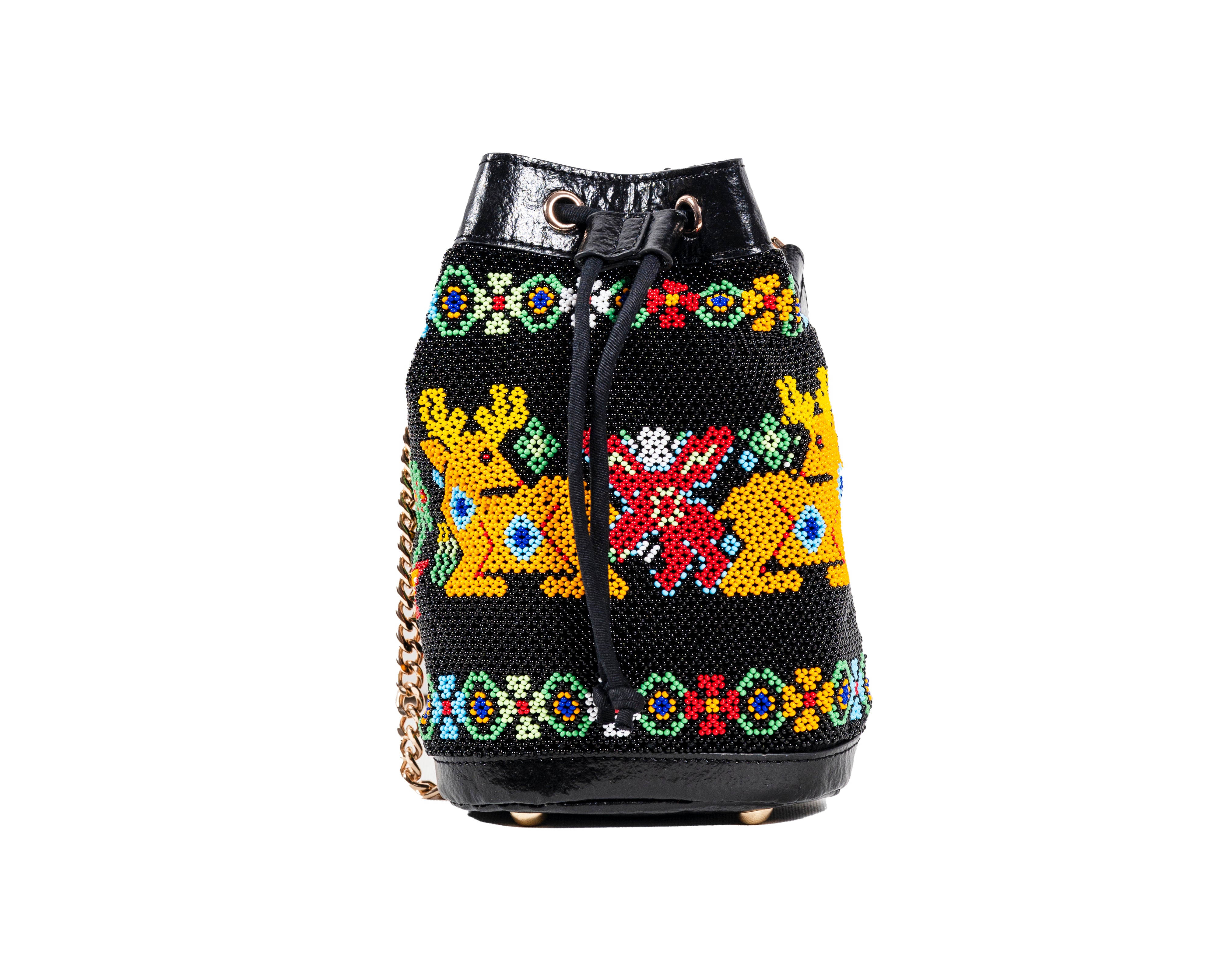 Experience the charm of tradition and sustainability woven into this exquisite hand-beaded bucket bag. Crafted from banana fiber leather, a premium vegan alternative, this bag embodies luxurious style while prioritizing eco-consciousness.