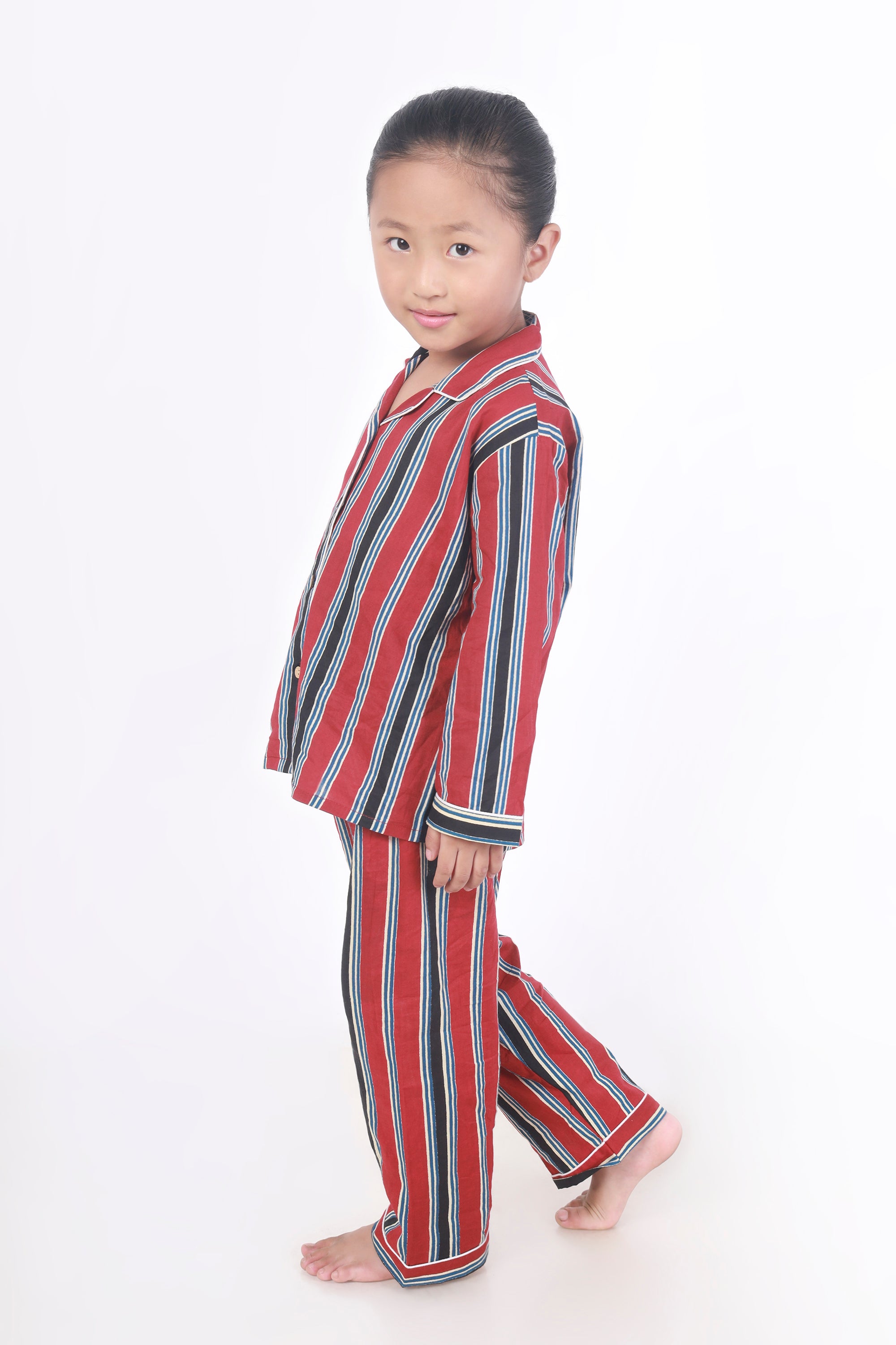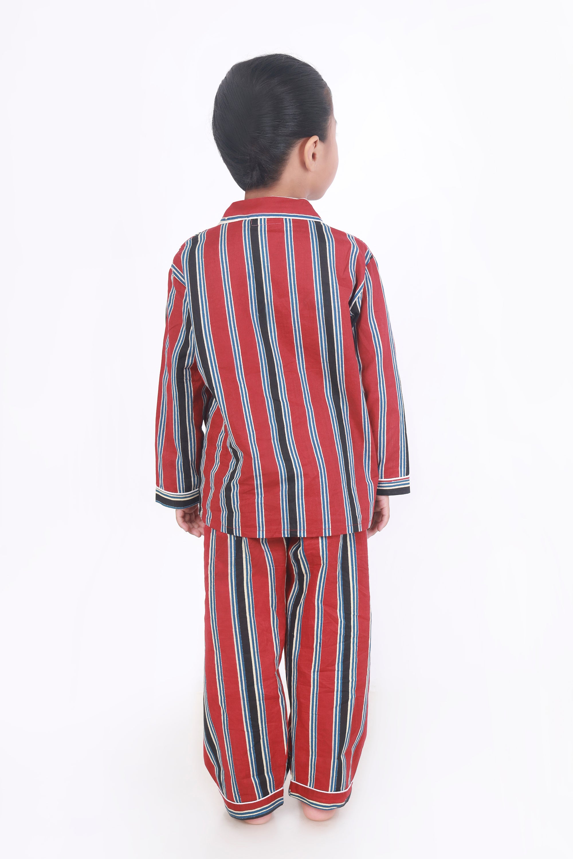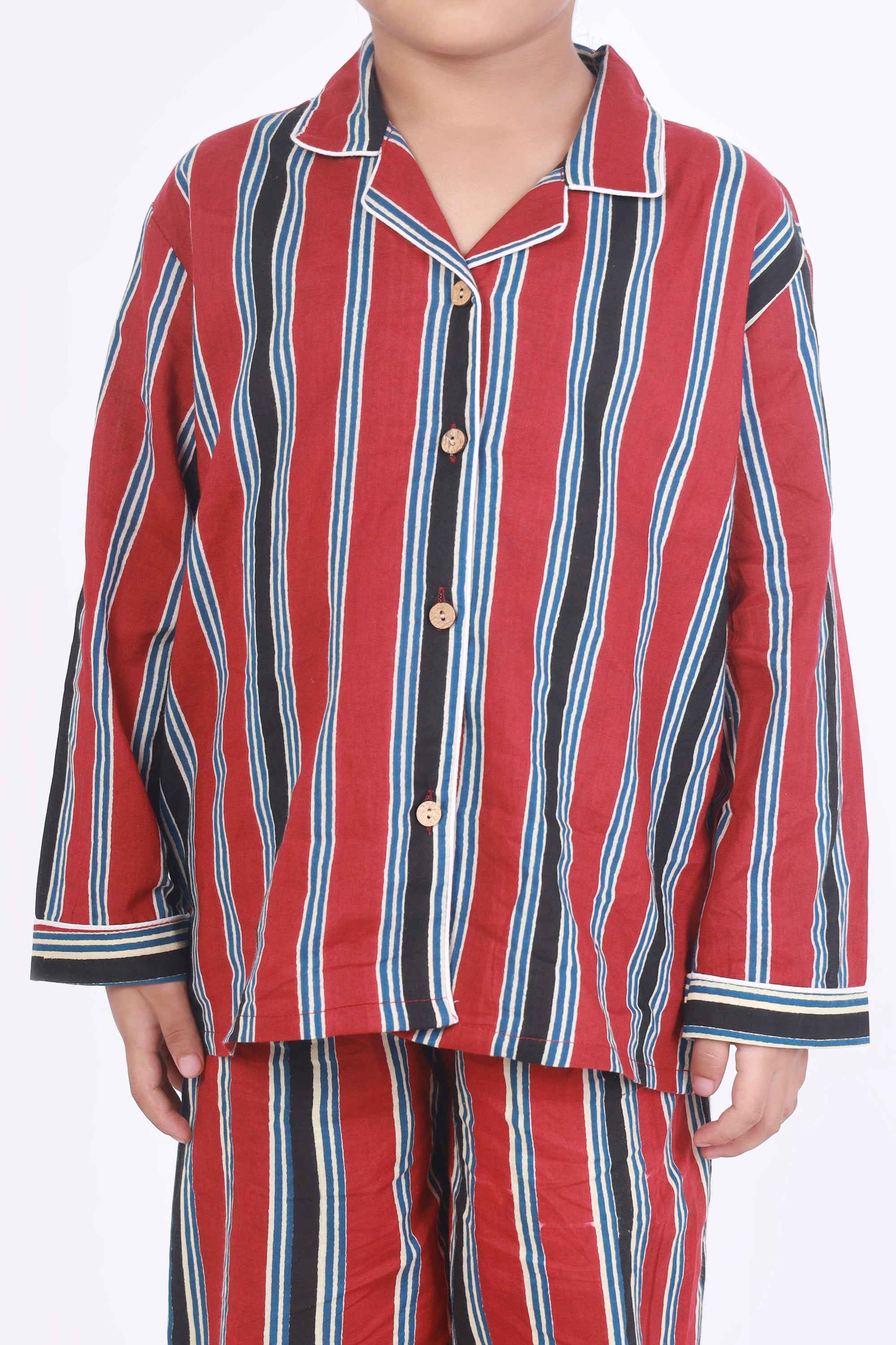 Kids Cotton Nightsuit – Red Stripes Shirt & Pyjama Co-ord Set for Boys & Girls