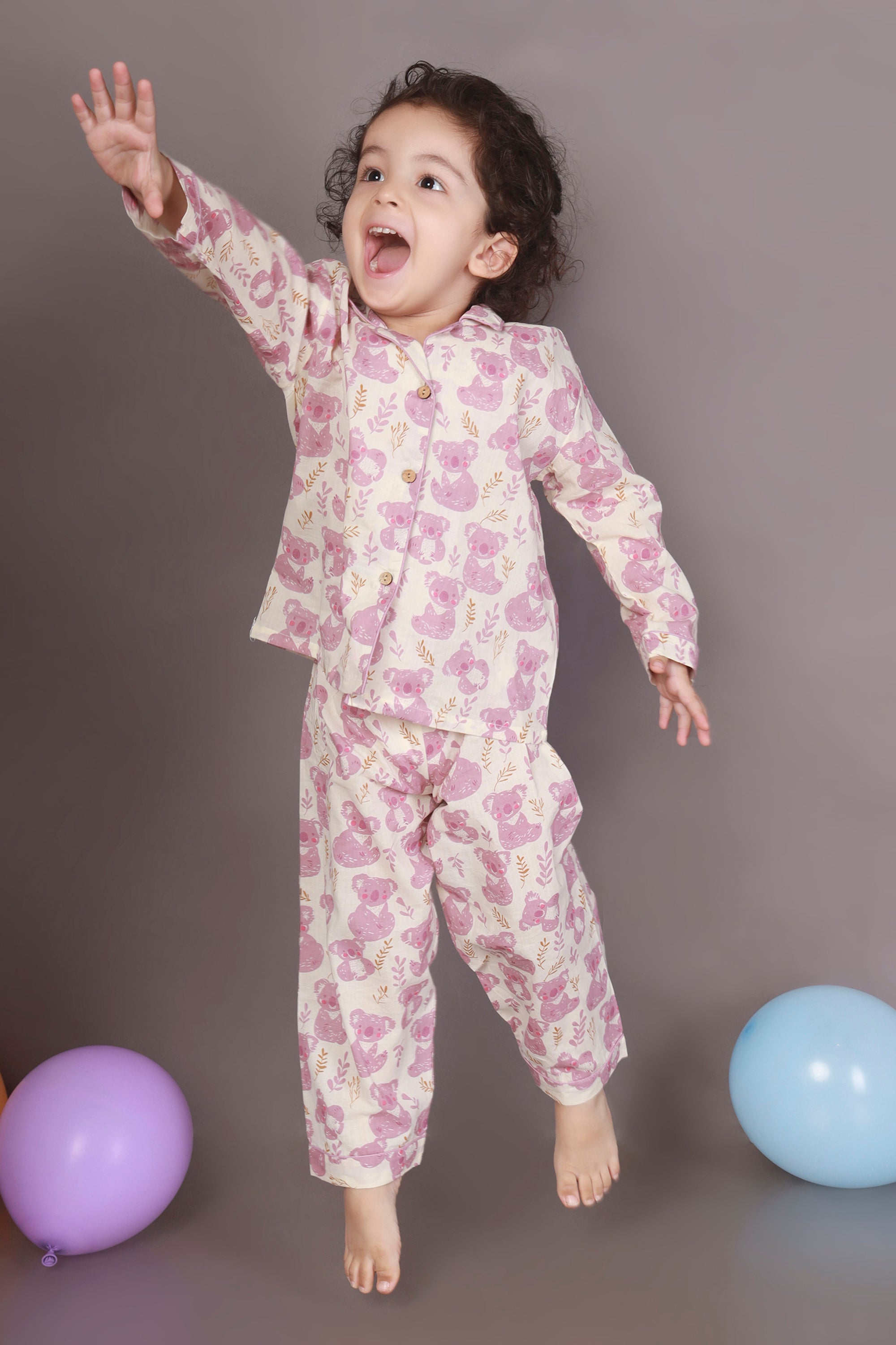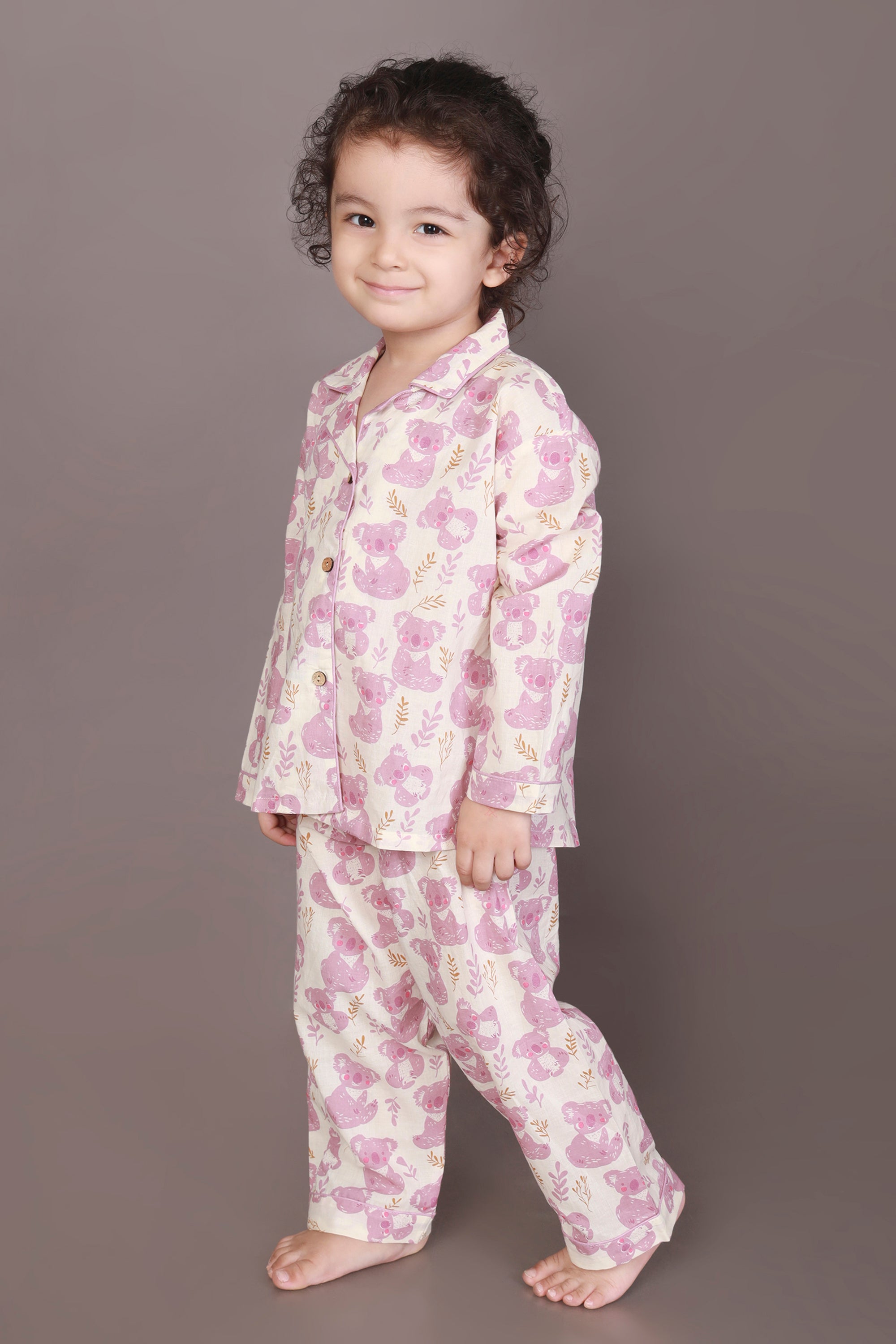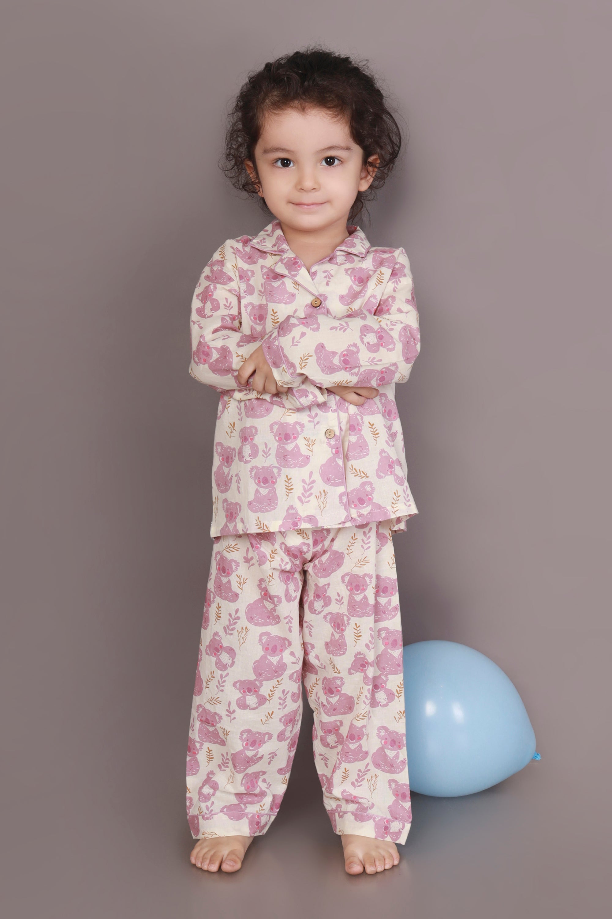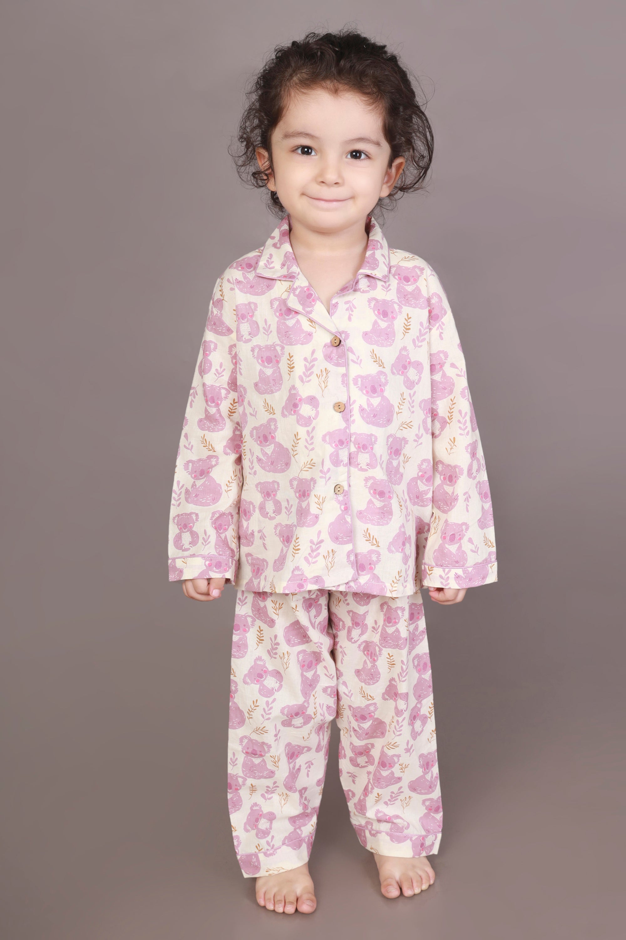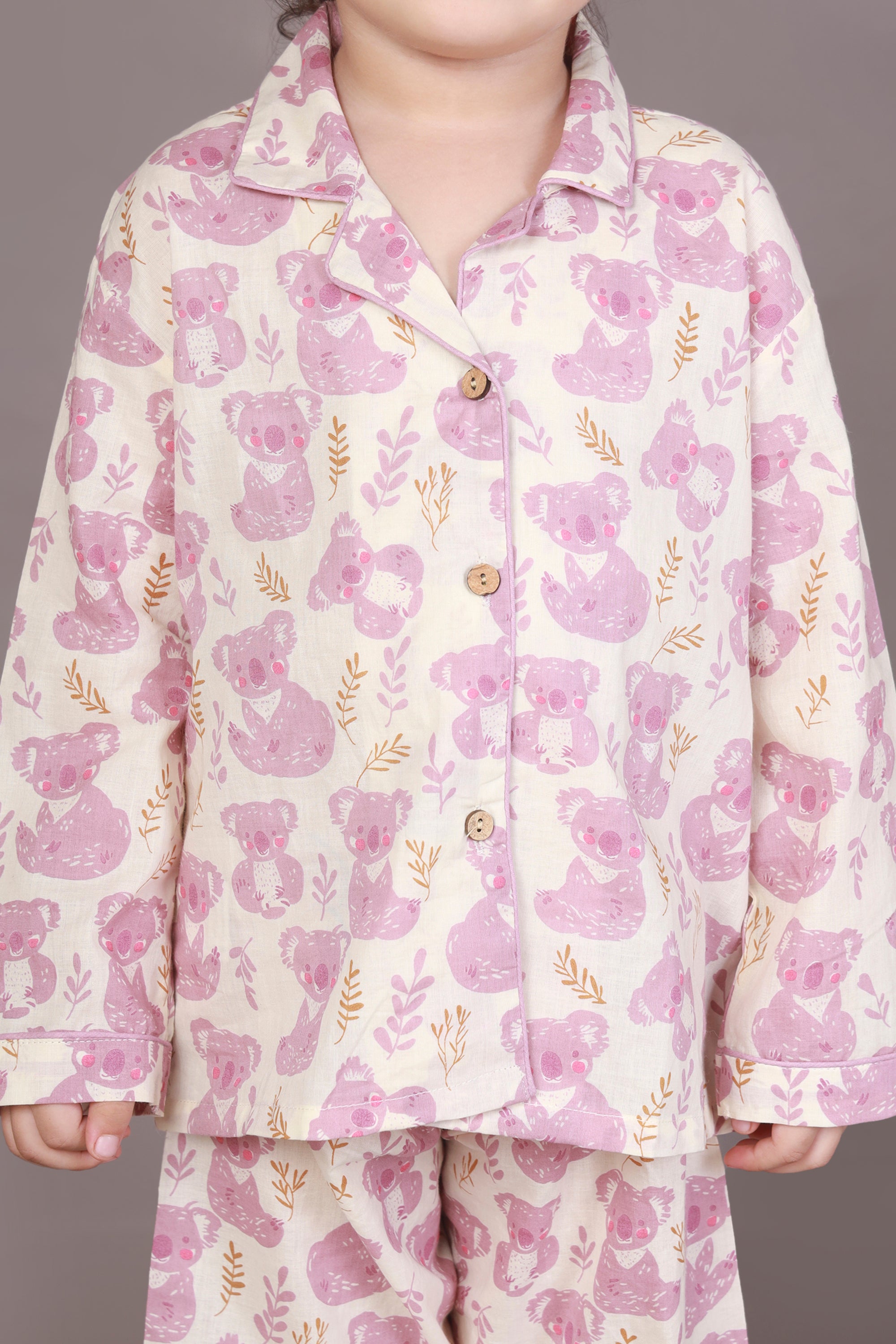 Soft, sweet, and huggable – just like your kiddo! This teddy print nightsuit in white and pink features a full-sleeve shirt with a notched collar and matching pyjama. Made with 100% breathable cotton for dreamy slumber.