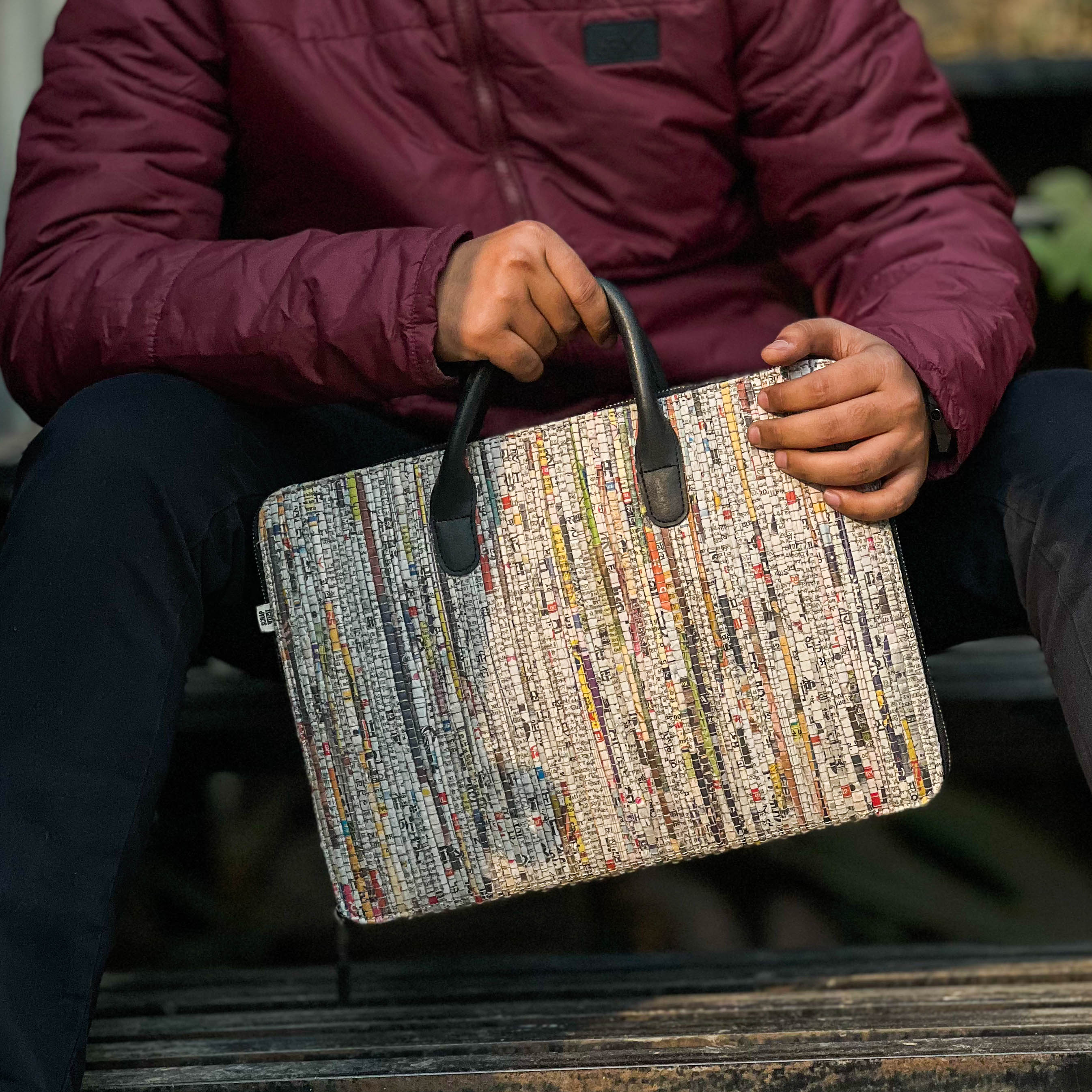 Minimalist Laptop Bag | Upcycled Paper | Handloom Textile | Timeless Look | 12.5 inch Laptop size | Scrapshala