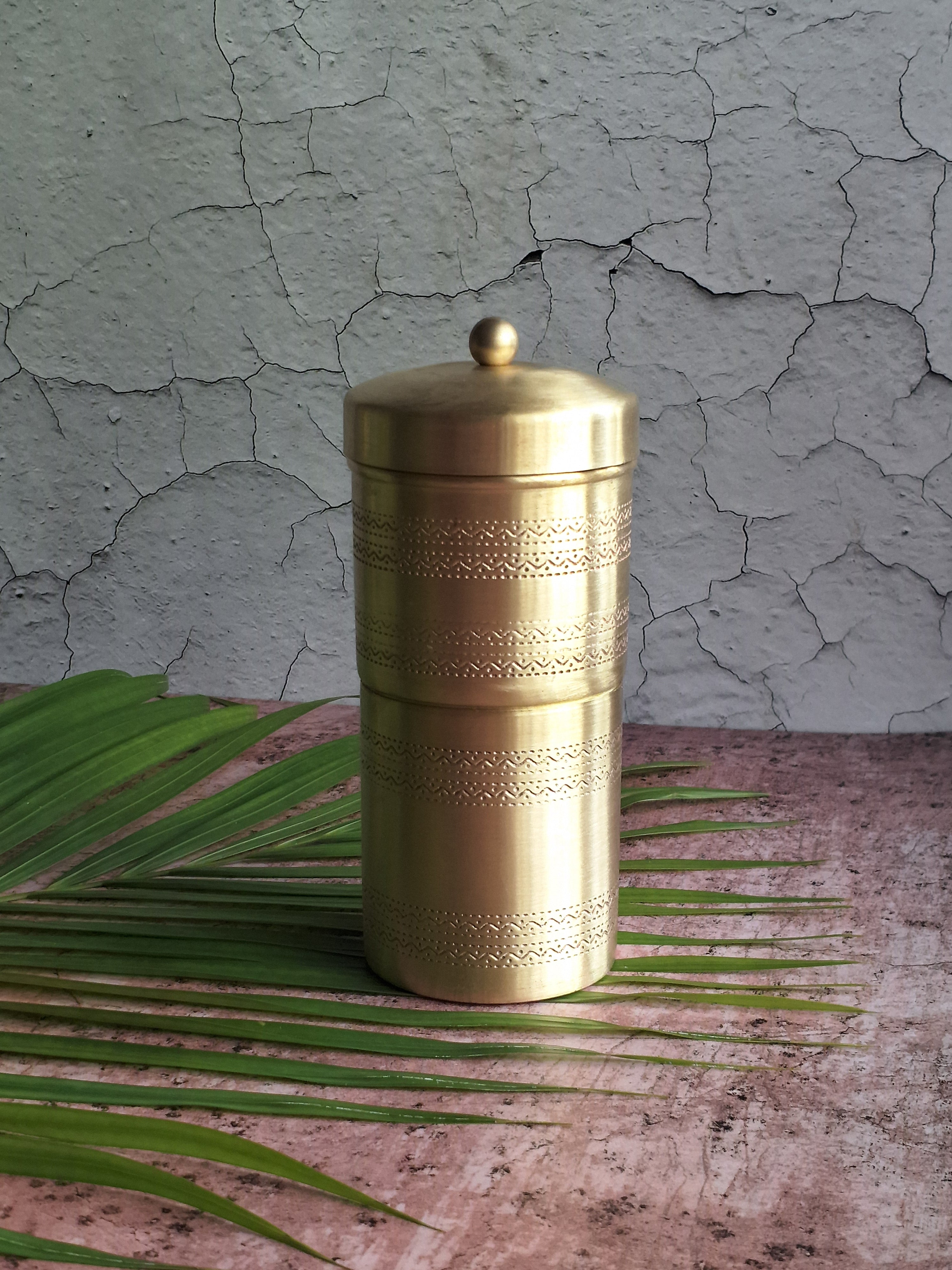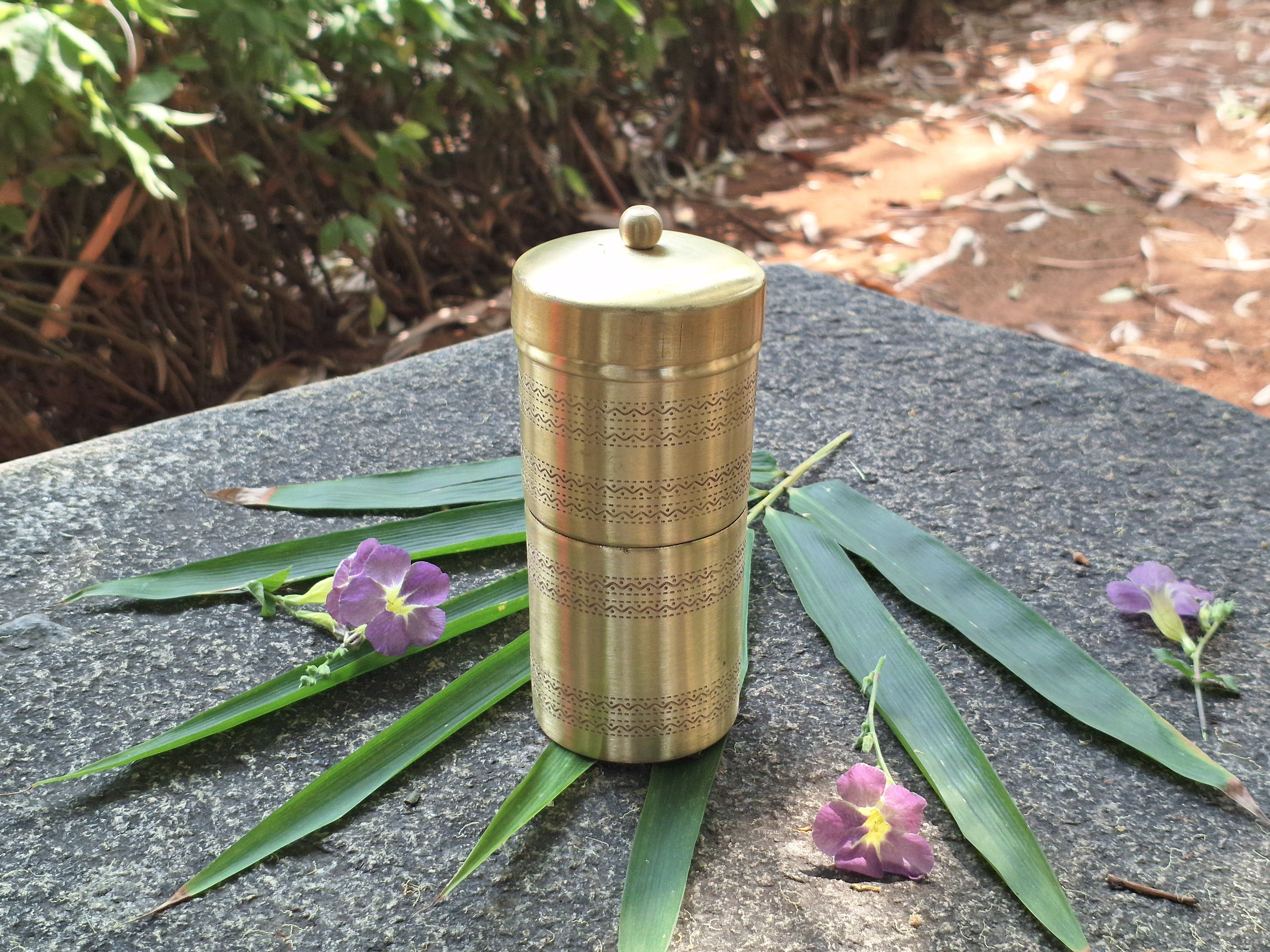 Pure Brass Coffee Filter – A masterpiece meticulously crafted by the skilled artisans of Tamil Nadu, with over a century of heritage in this timeless craft. Each piece intricately etched, bearing the mark of tradition and the essence of passion. Embrace the elegance of heritage with Earthbound Traditional Cookware. Elevate your coffee experience, one cup at a time.