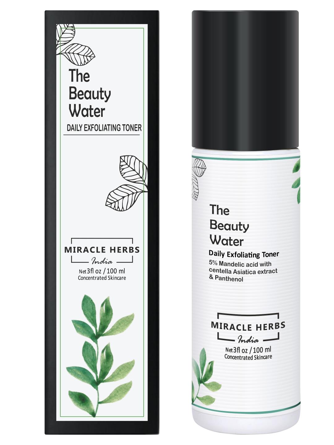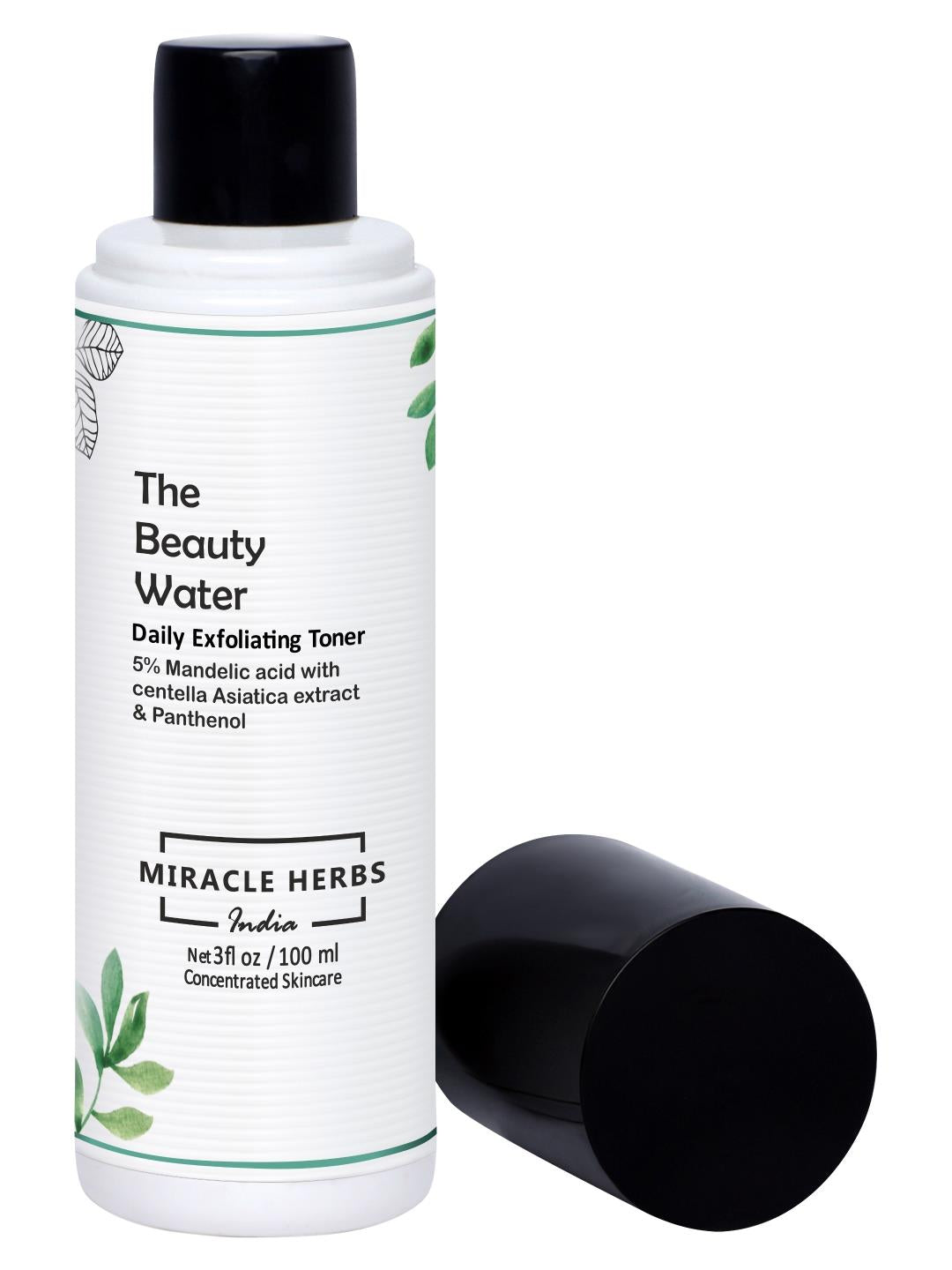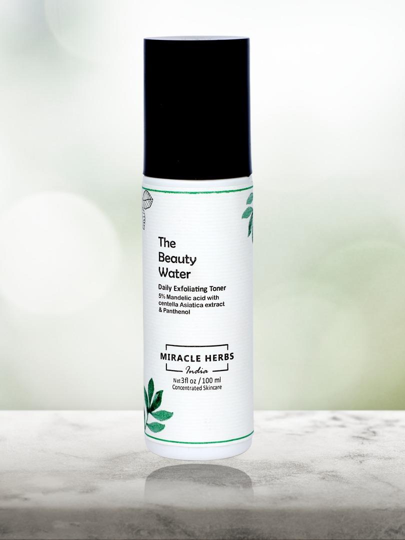 Deep cleanse the last traces of impurity on your face with this Daily Exfoliating Alcohol Free Face Toner by Miracle Herbs India. It is suited for all skin types. It contains mandelic acid which helps lighten and brighten the skin, fade unwanted acne scars and minimize age spots. It is gentler on the skin than other AHAs due to large molecular structure and has been found effective for treating sun damage & evens out pigmentation.