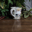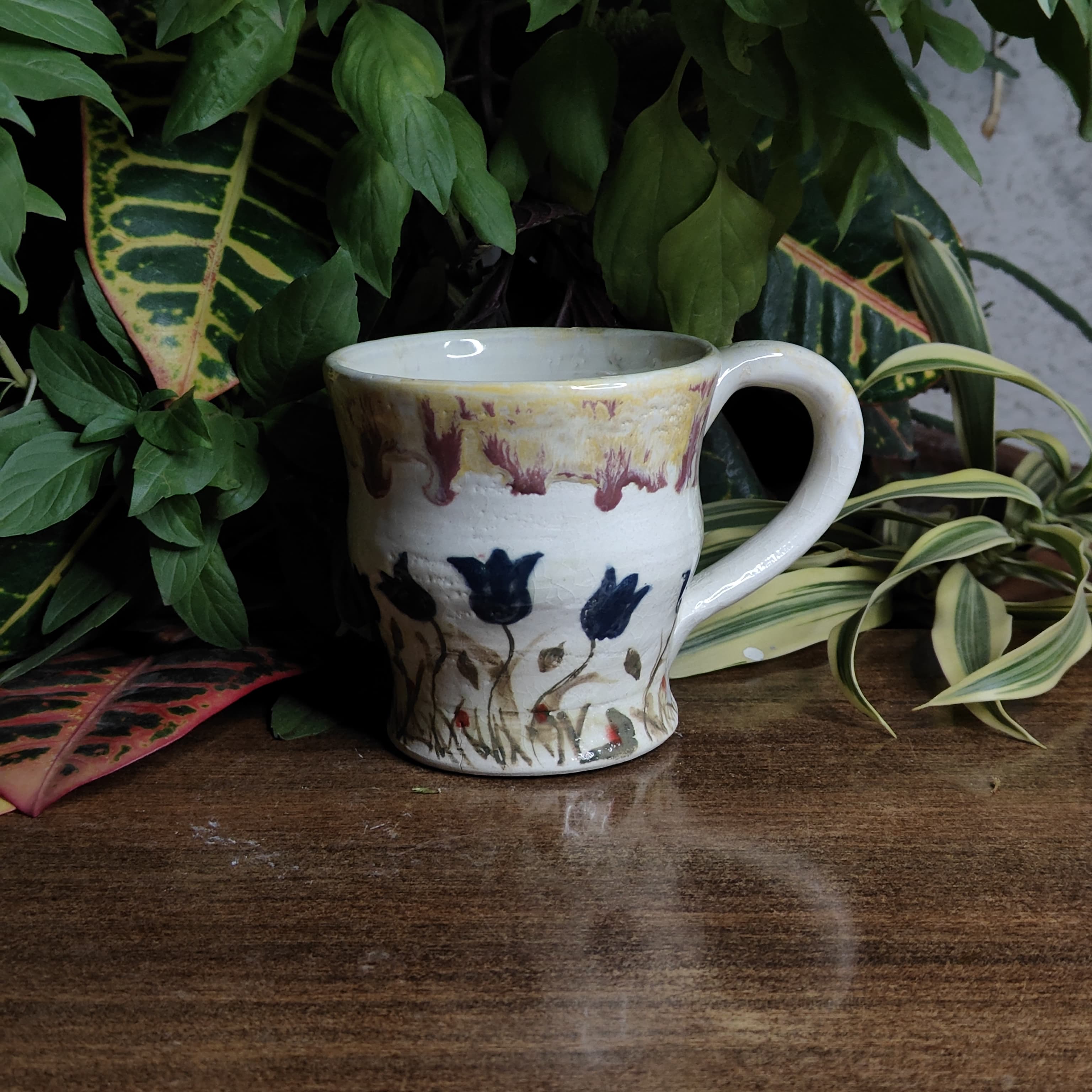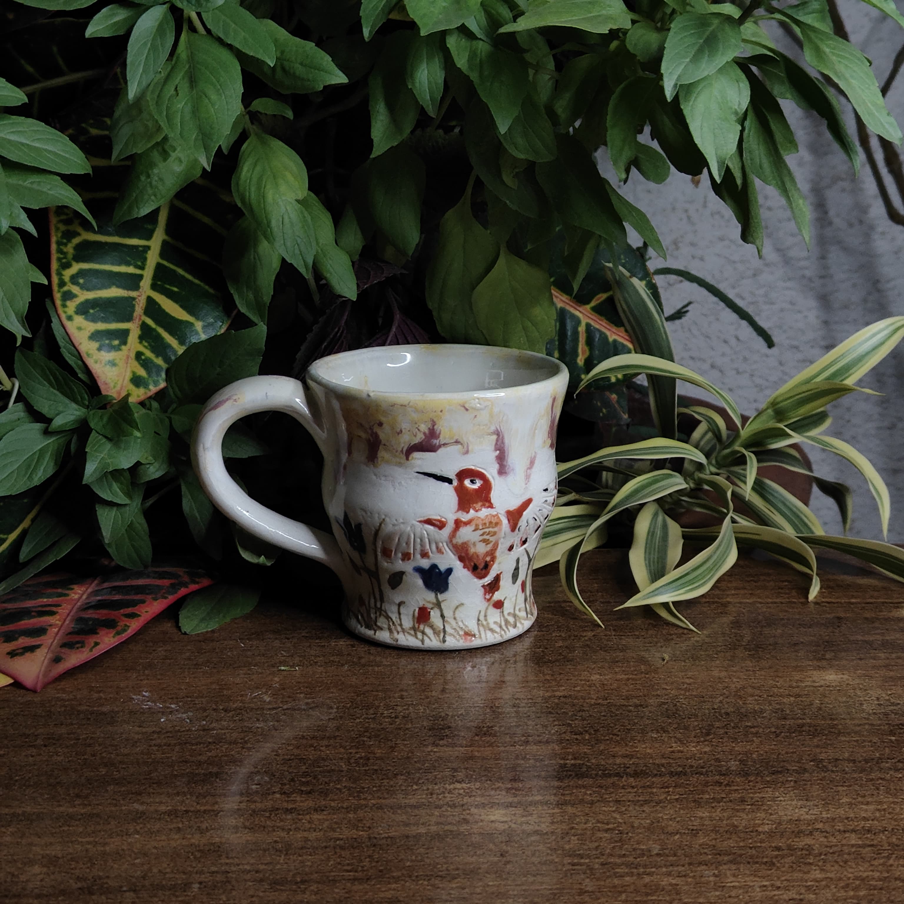 Handcrafted Ceramic Coffee Mug, Bird and Floral Design, White with Blue and Orange Artwork 250ML