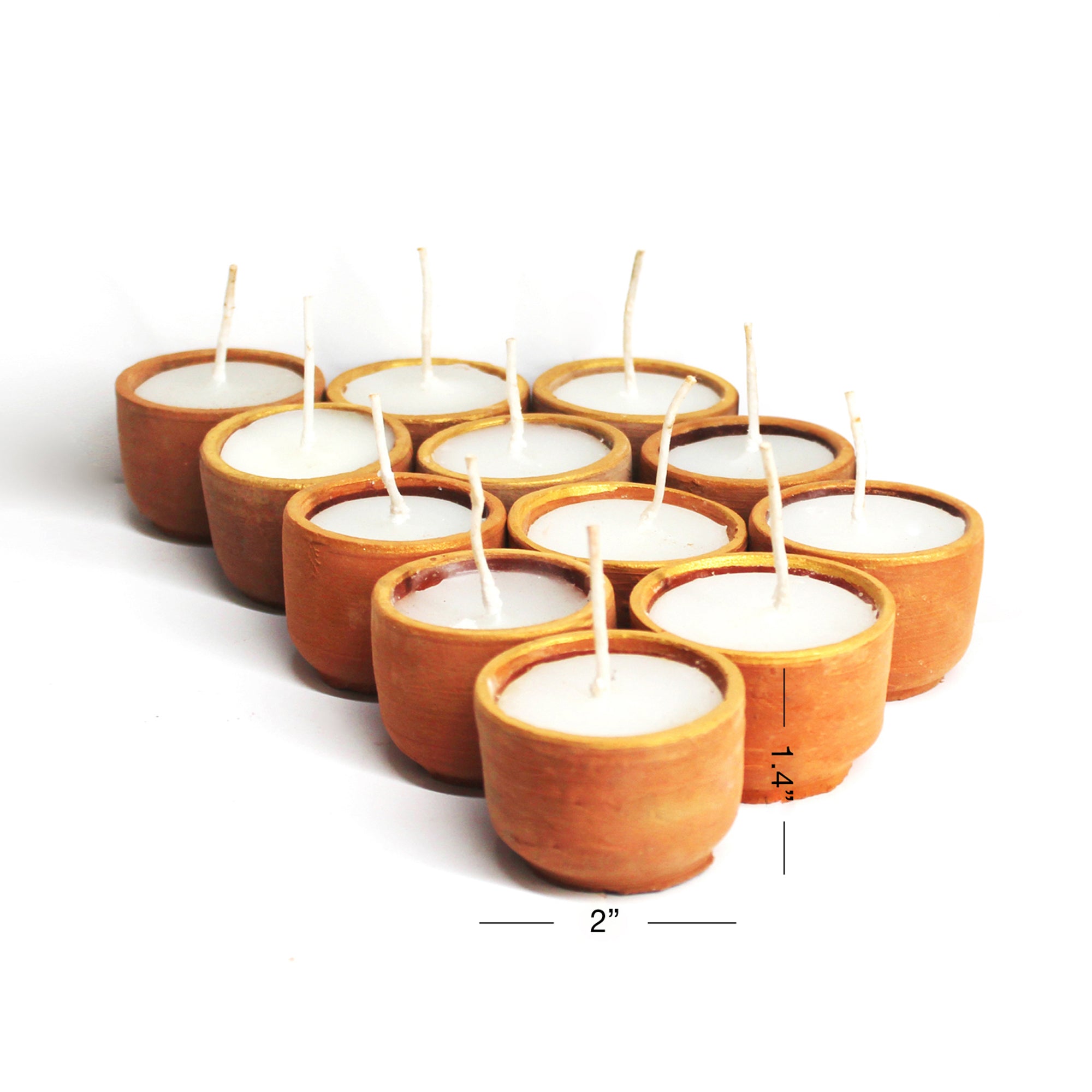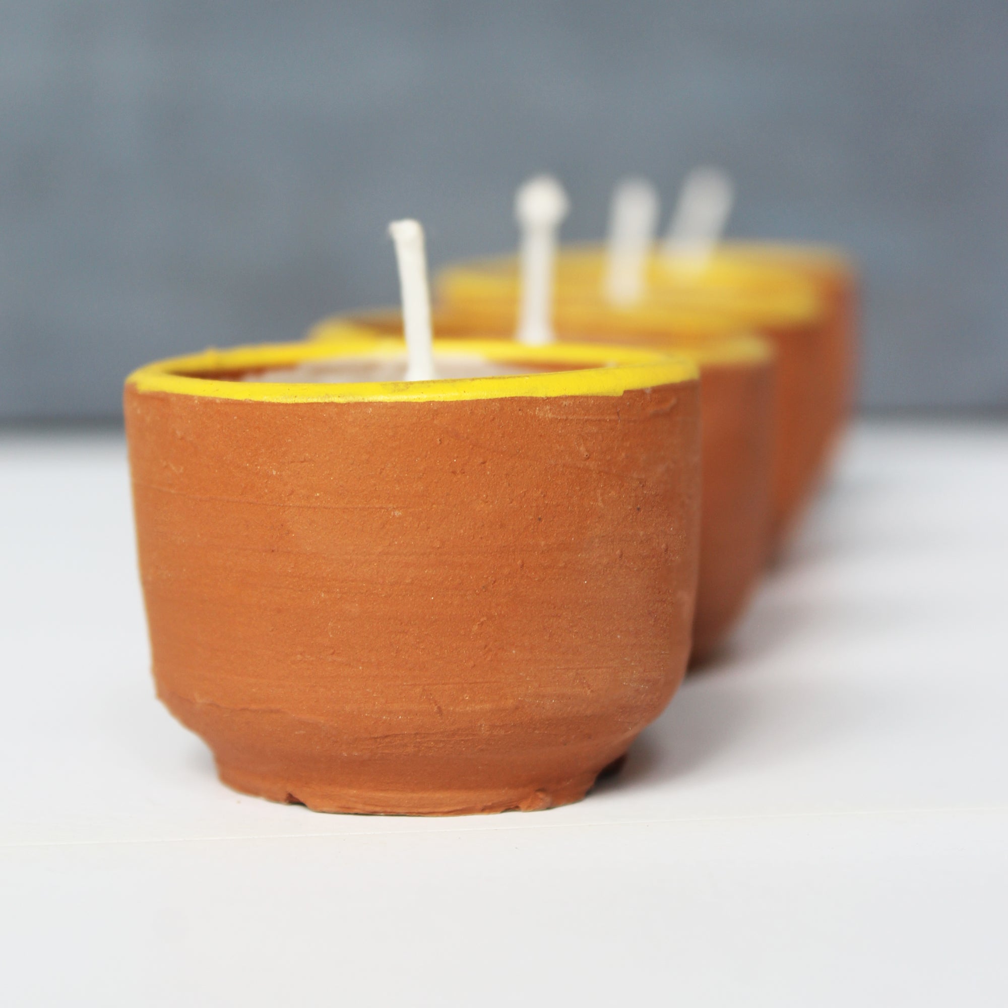 TERRACOTTA "CUP" CANDLE is a set of 12 Candles in a Cup Shaped terracotta shells. A unique combination of Terracotta and Wax thats sure to delight you.