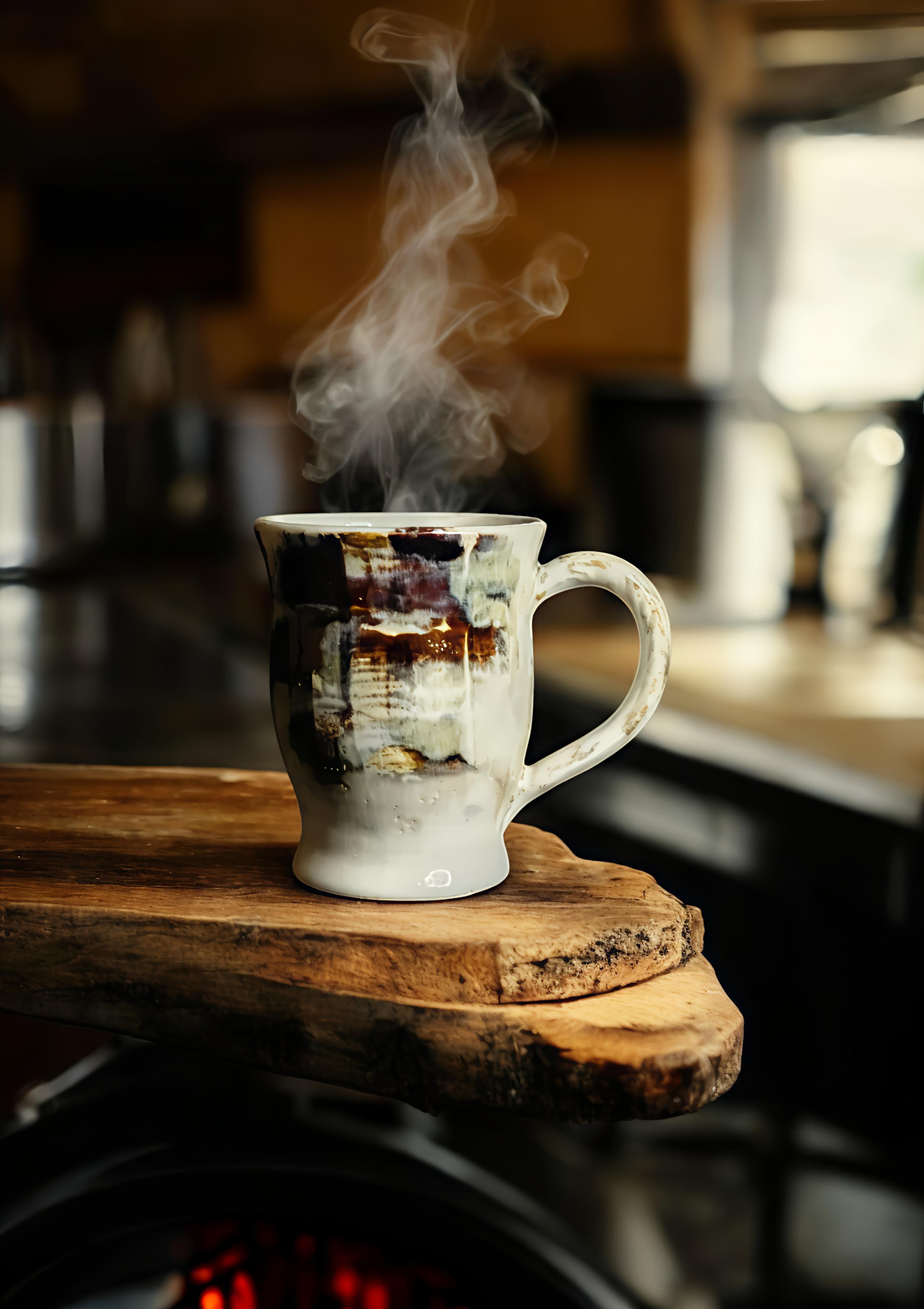 Handcrafted Ceramic Coffee Mug, Rustic White and Brown, Large Handle 275ml
