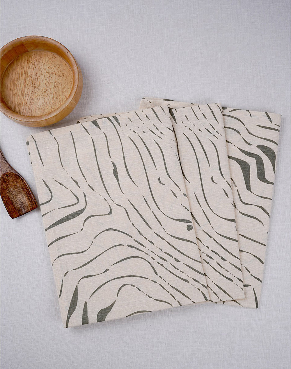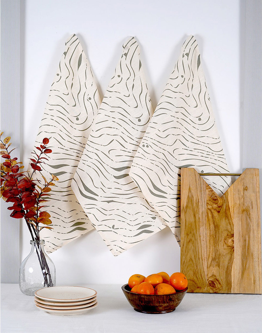 Beige Cotton Printed 18x26 Inch Kitchen Towel Set Of 3
