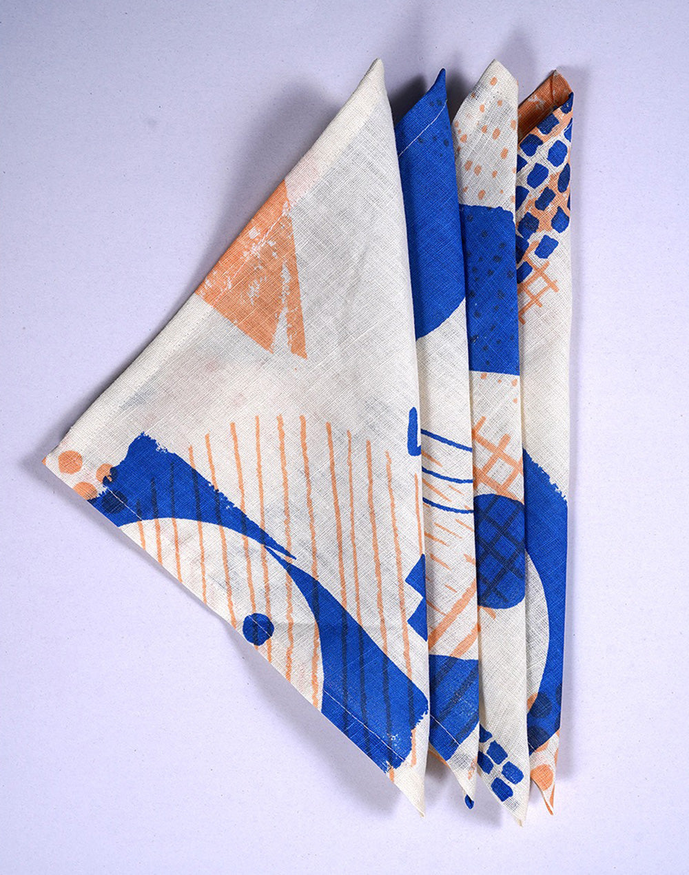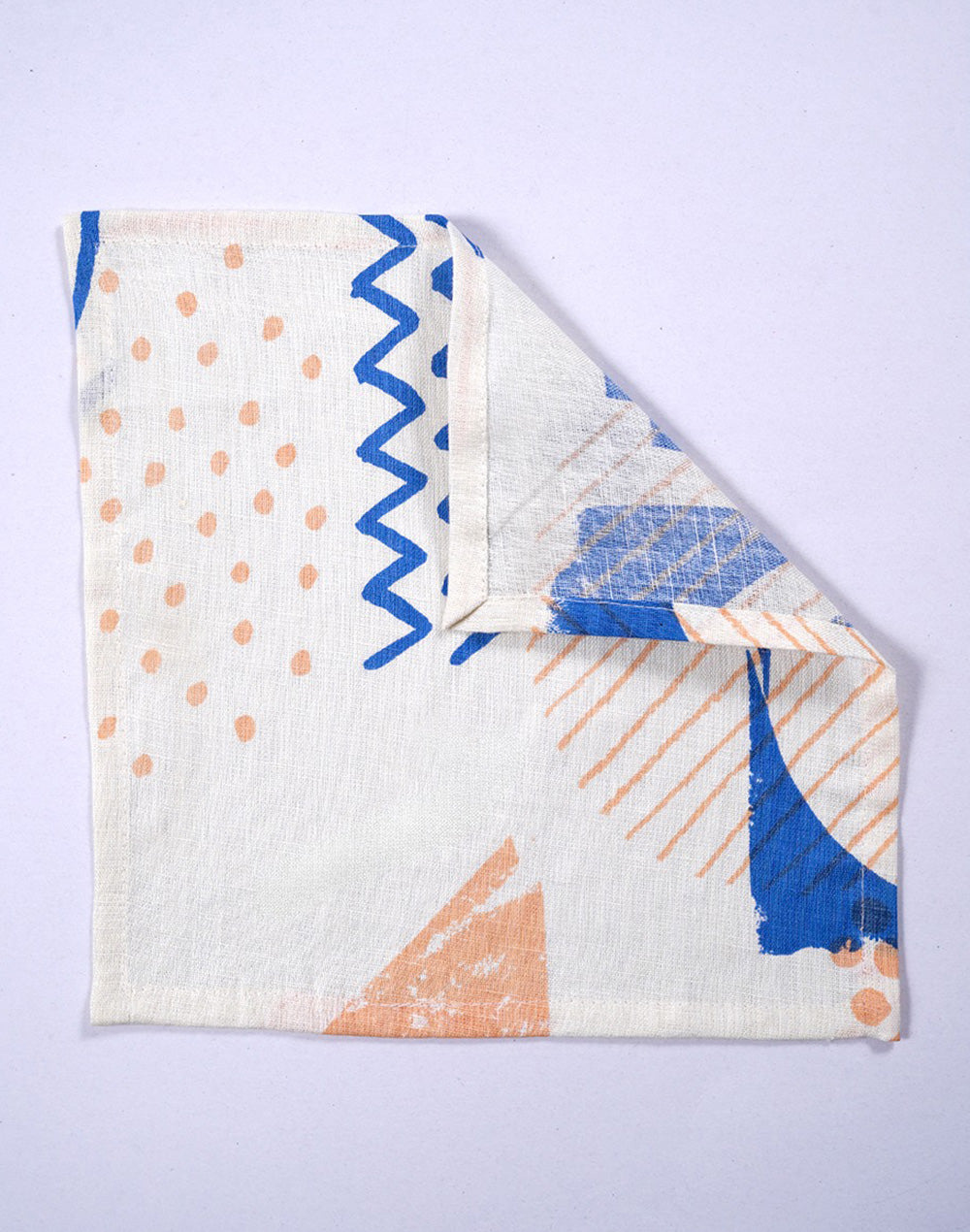 Beige Linen Geometric Pattern 10x10 Inch Napkin Set Of 6