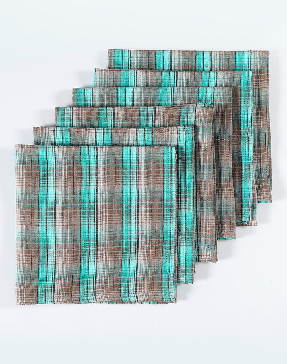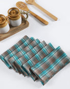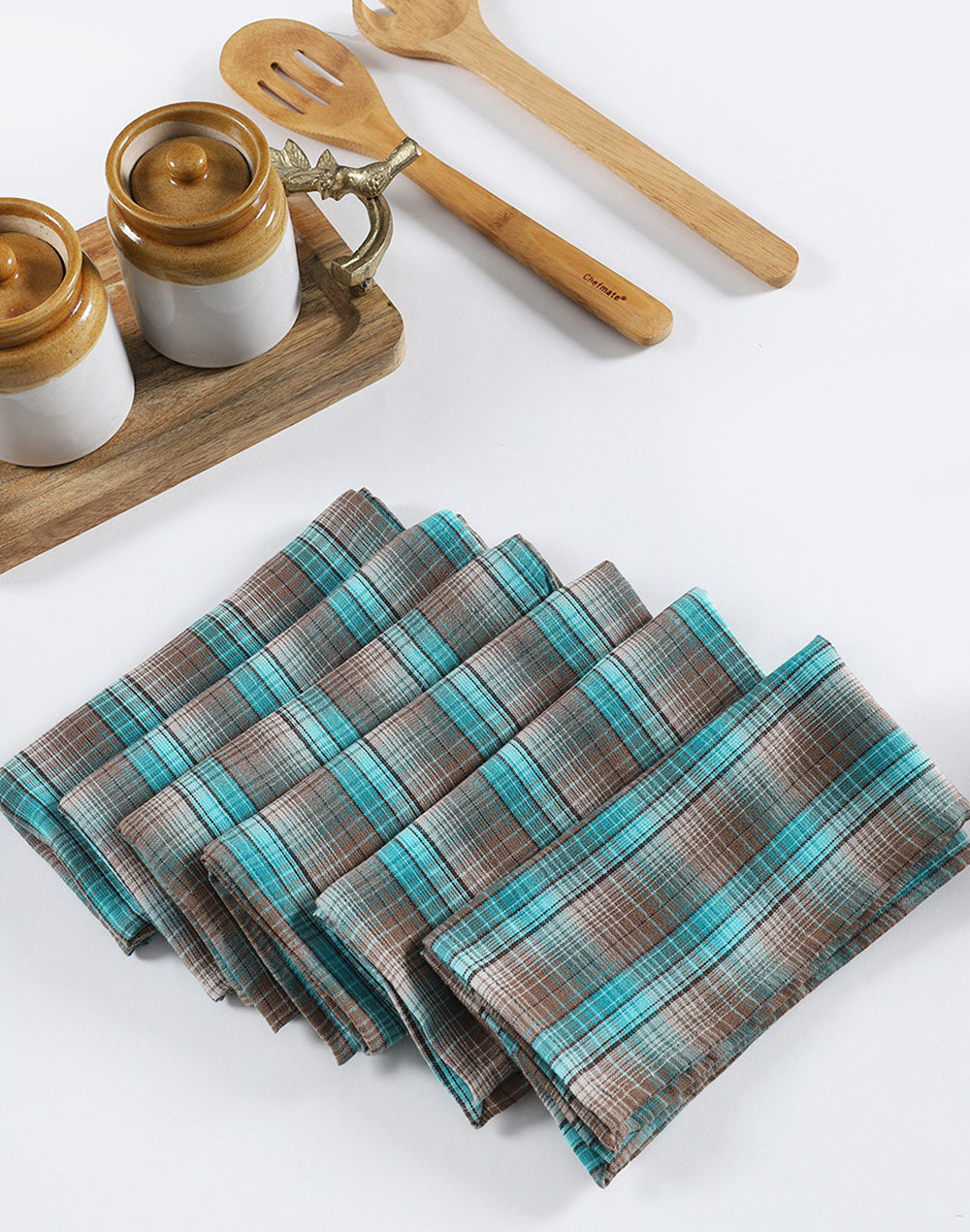 Blue Cotton Check Pattern 12x12 Inch Napkin Set Of 6