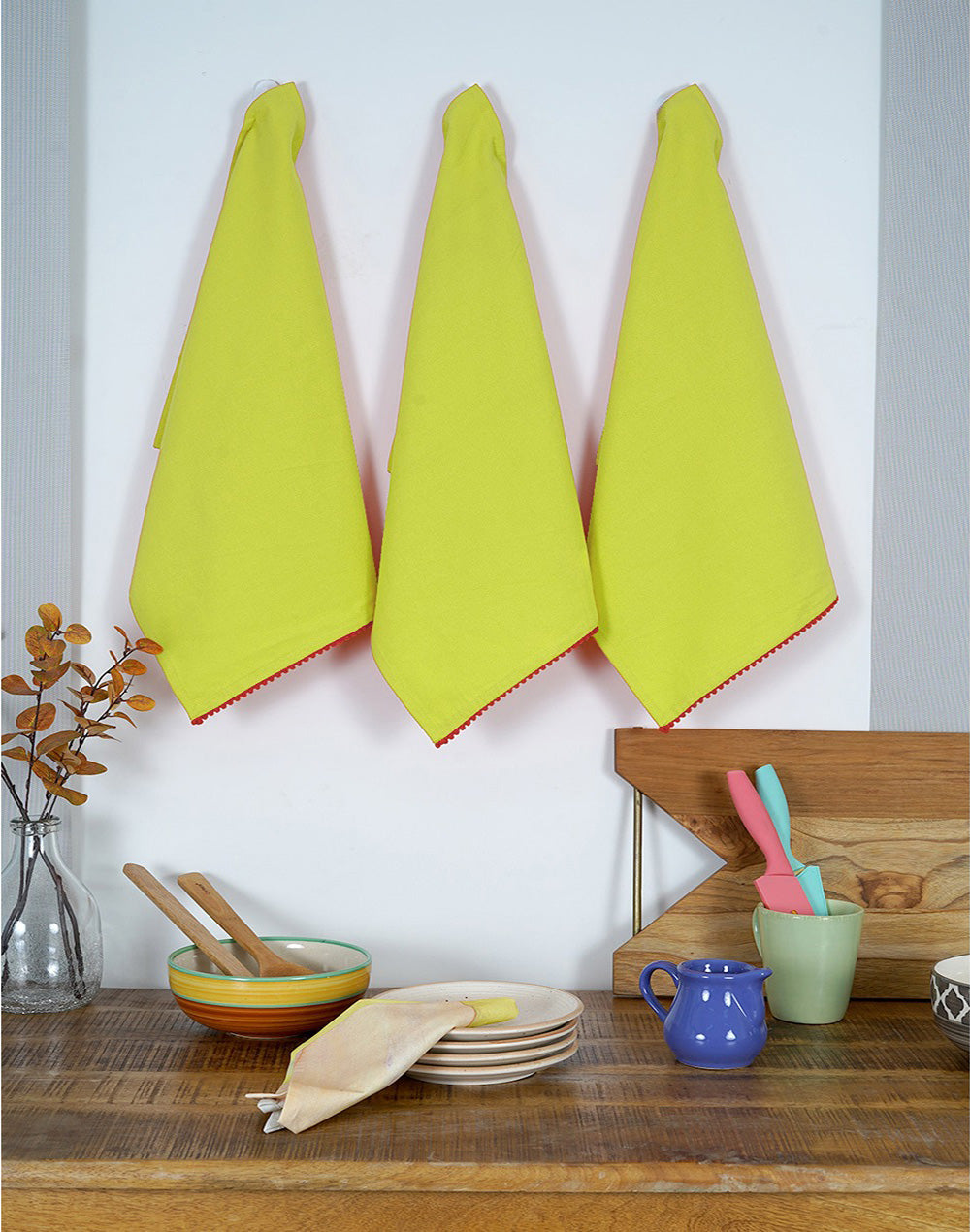 Lime Green Cotton Solid Plain 16x20 Inch Kitchen Towel Set Of 3