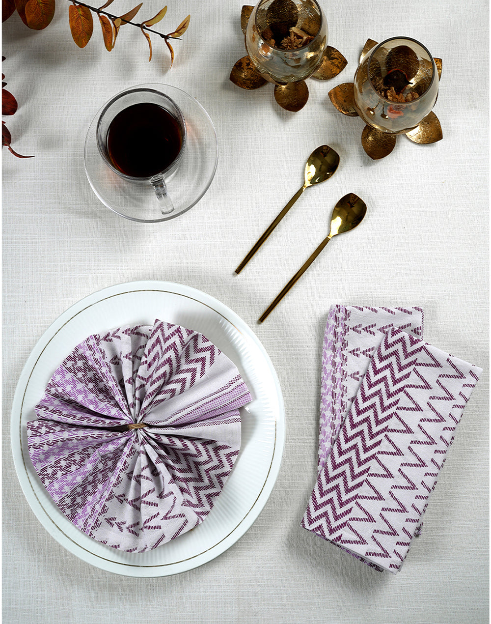 Purple Cotton Geometric Pattern 16x16 Inch Napkin Set Of 6