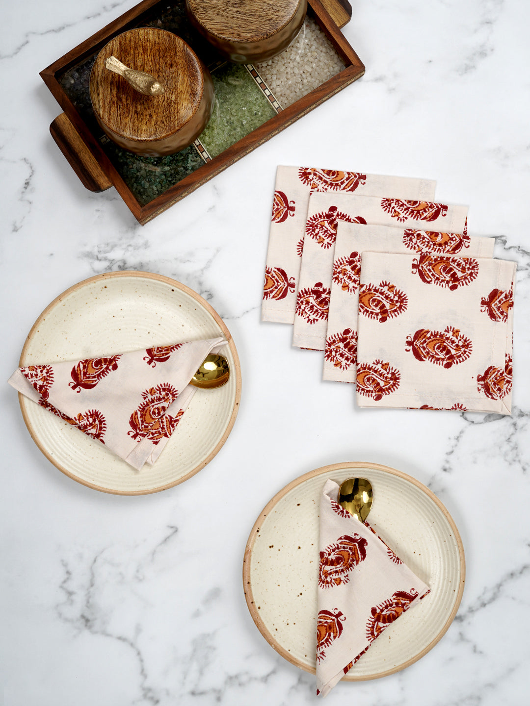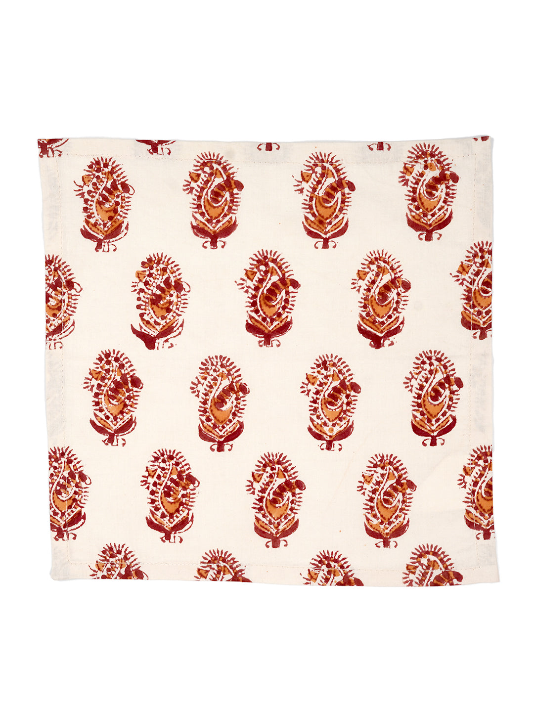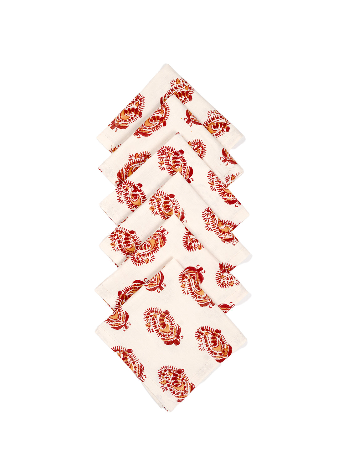 Red Poplin Paisely 10x10 Inch Set Of 6 Napkin