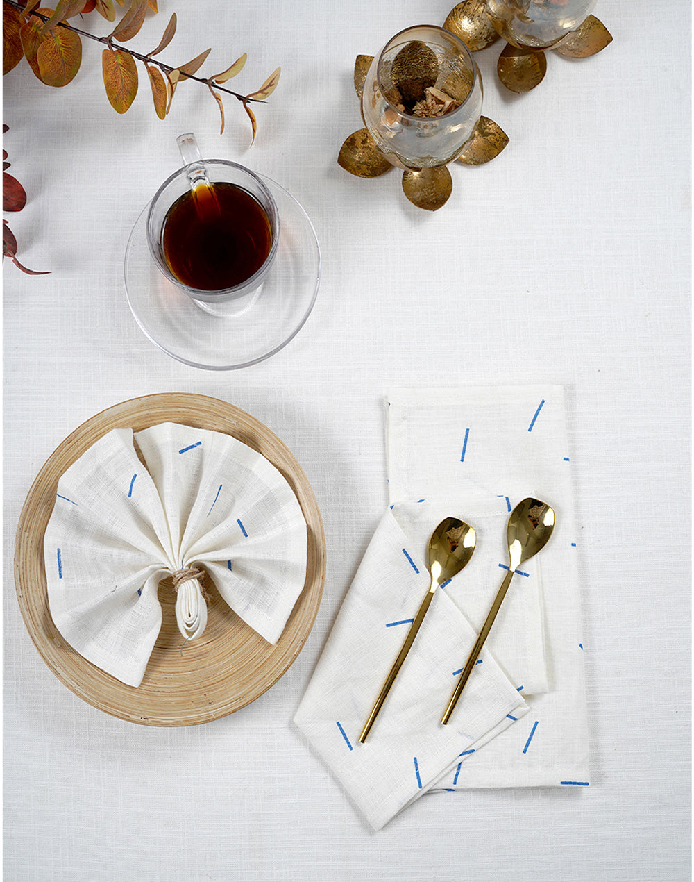 White Linen Abstract Pattern 10x10 Inch Napkin Set Of 4