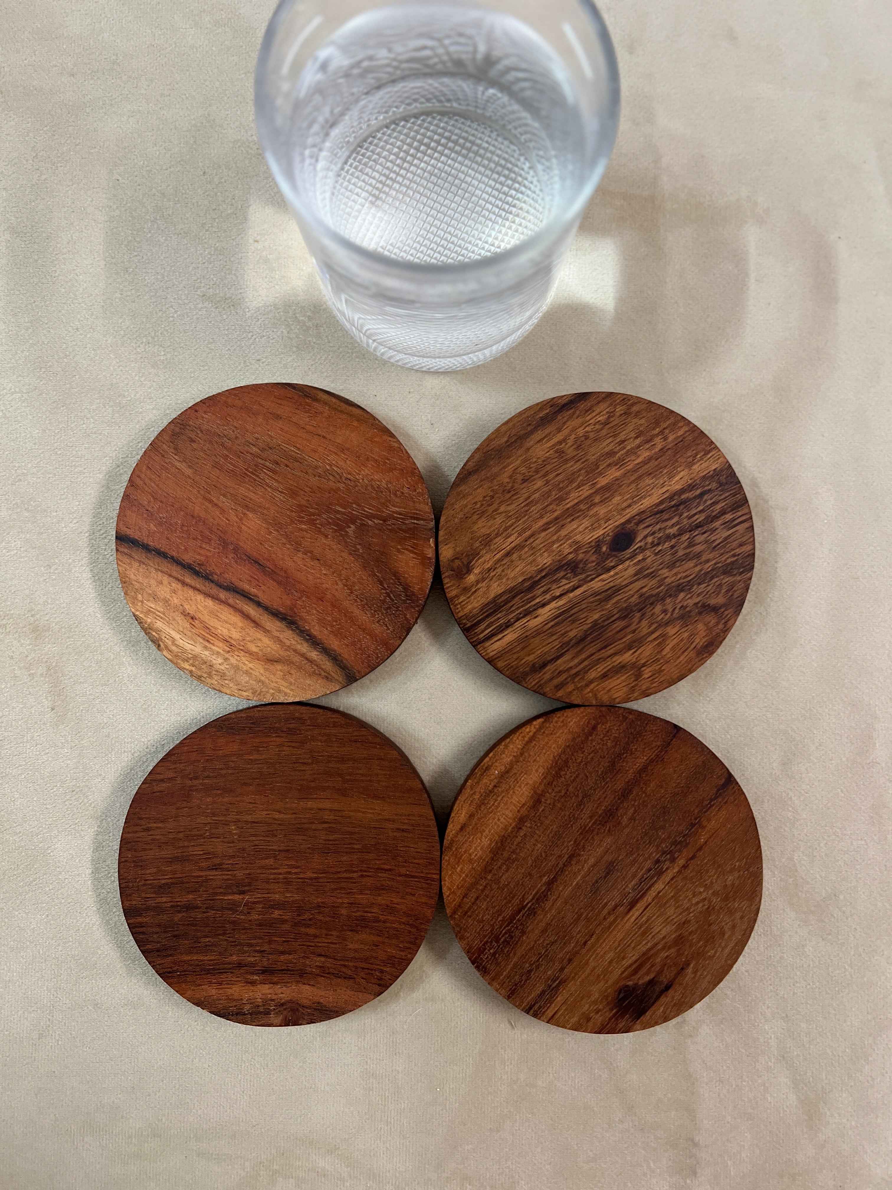 Wooden Coasters | Solid Acacia Wood Round Coasters for Table/Bar | Natural Wood Finish | Elegant & Simple Design | 4 Inch Diameter * 0.5 Inch Thickness | Set of 4