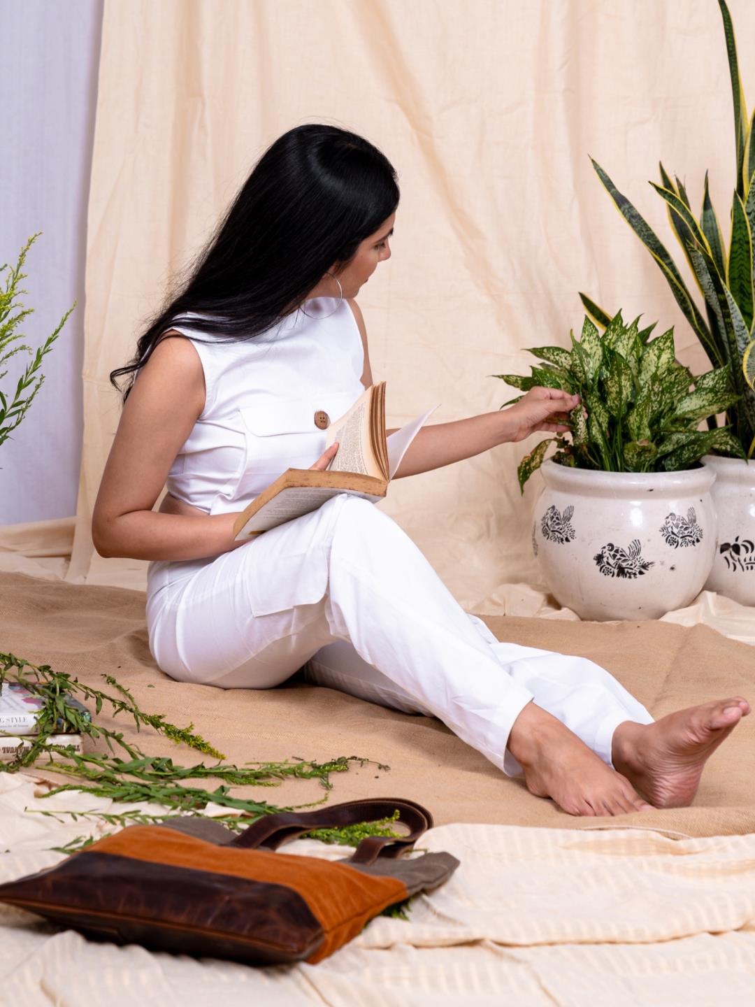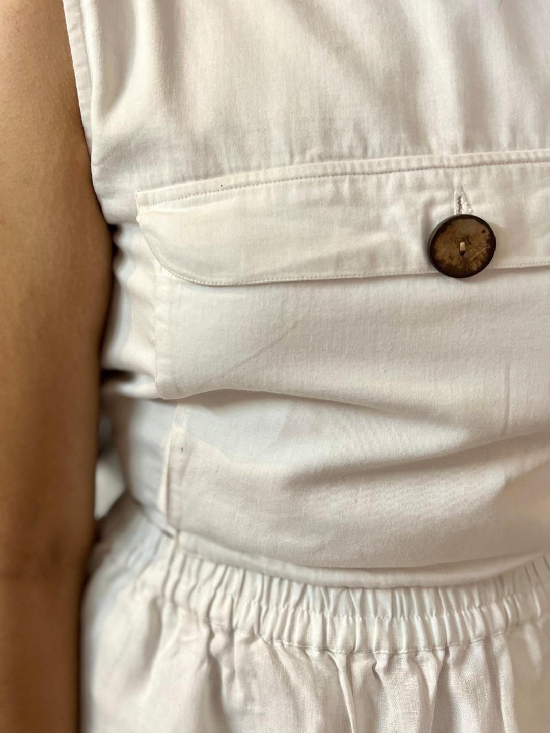 Fluid and Free. Our sleeveless beachside top flows like a casual day out at the beach. Embellished with a coconut shell button and a big pocket, this silhouette brings a breeze of fresh air on your body.
