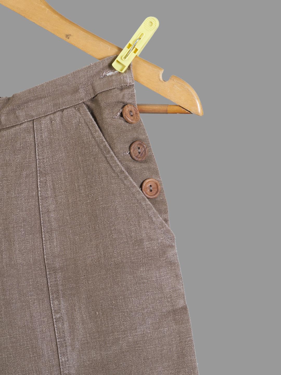 Description: Crafted in 100% hemp canvas with wooden buttons on the waist side. Breathable and durable fabric that will keep you protected throughout your busy day.