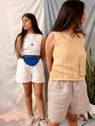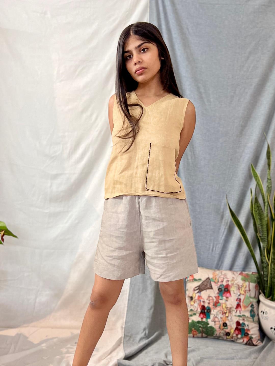 Simple essentials for your summer wardrobe! Basic pullover linen shorts crafted in hemp linen. Feel at ease and comfortable on the go with this antibacterial, UV protective fabric