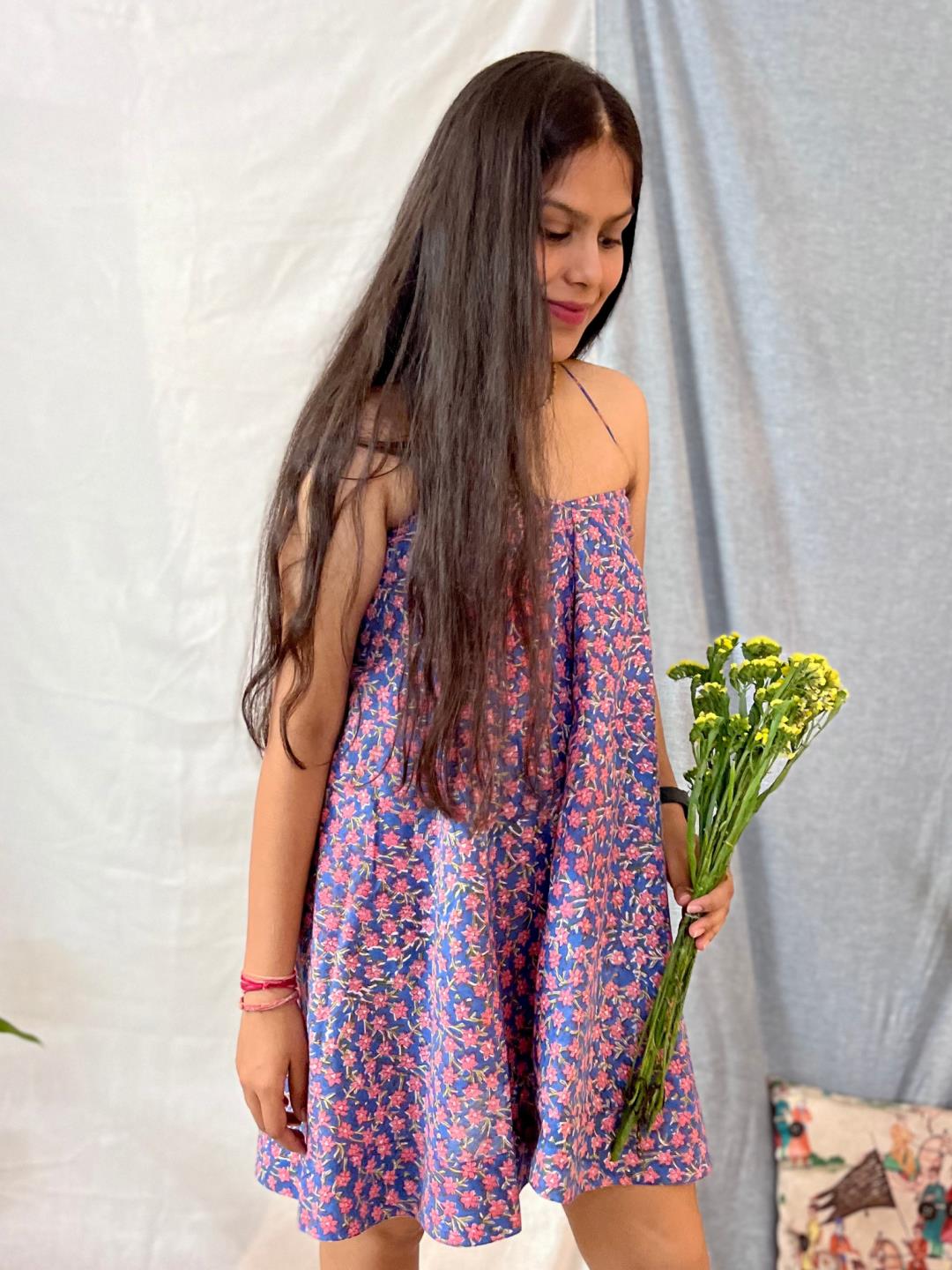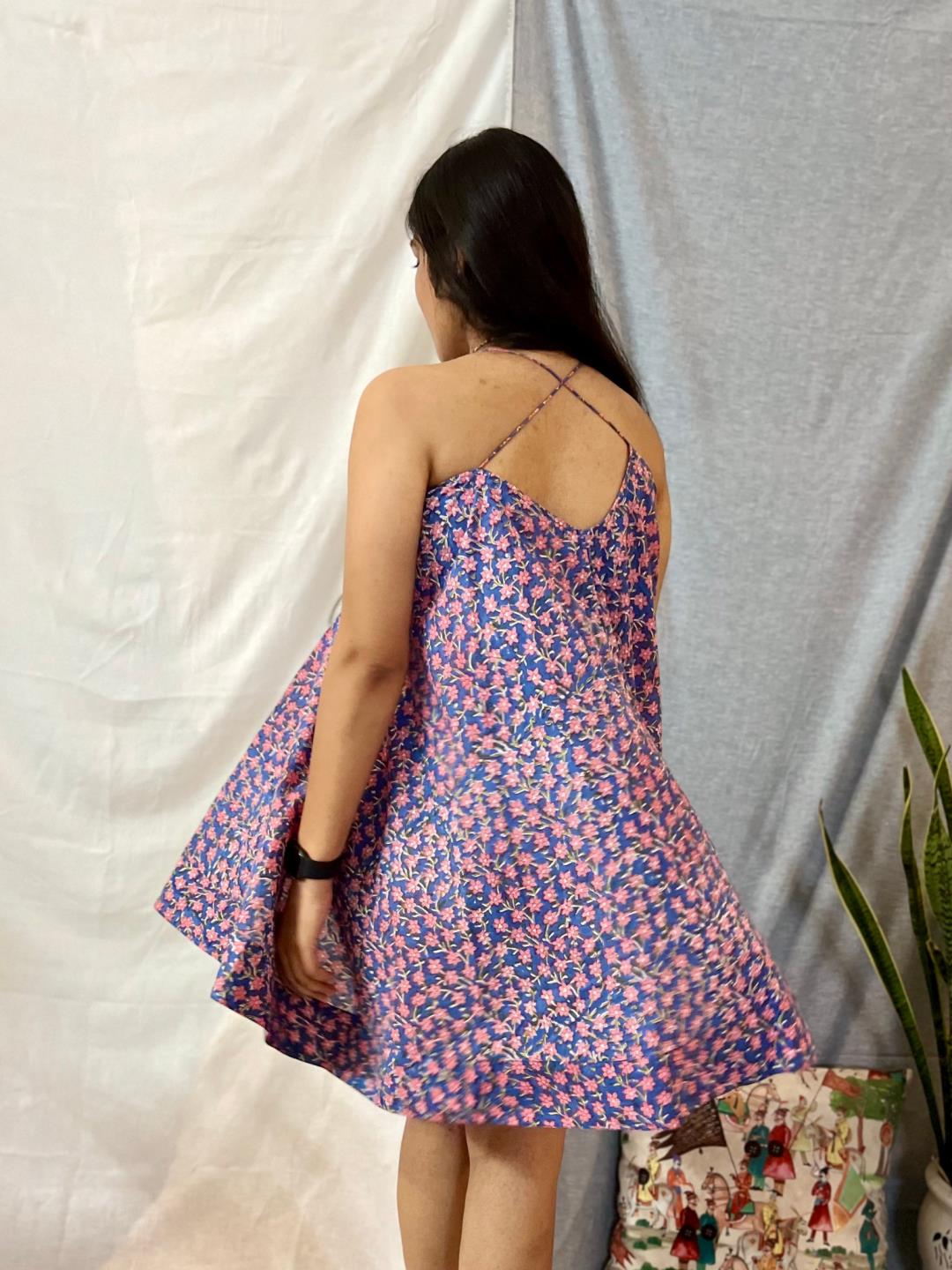 Description: Our criss-cross-back short dress is crafted in 100% cotton and azo-free colors. Inspired by fluidity, the silhouette will make you feel light and free as you move about your day.