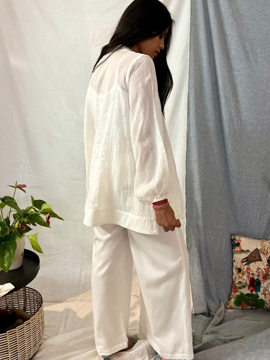 Description: A stylish essential, with wide-leg fit and elastic waist for maximizing comfort. The palazzo pants are crafted in organic cotton, providing you that ease and comfort wherever you go.