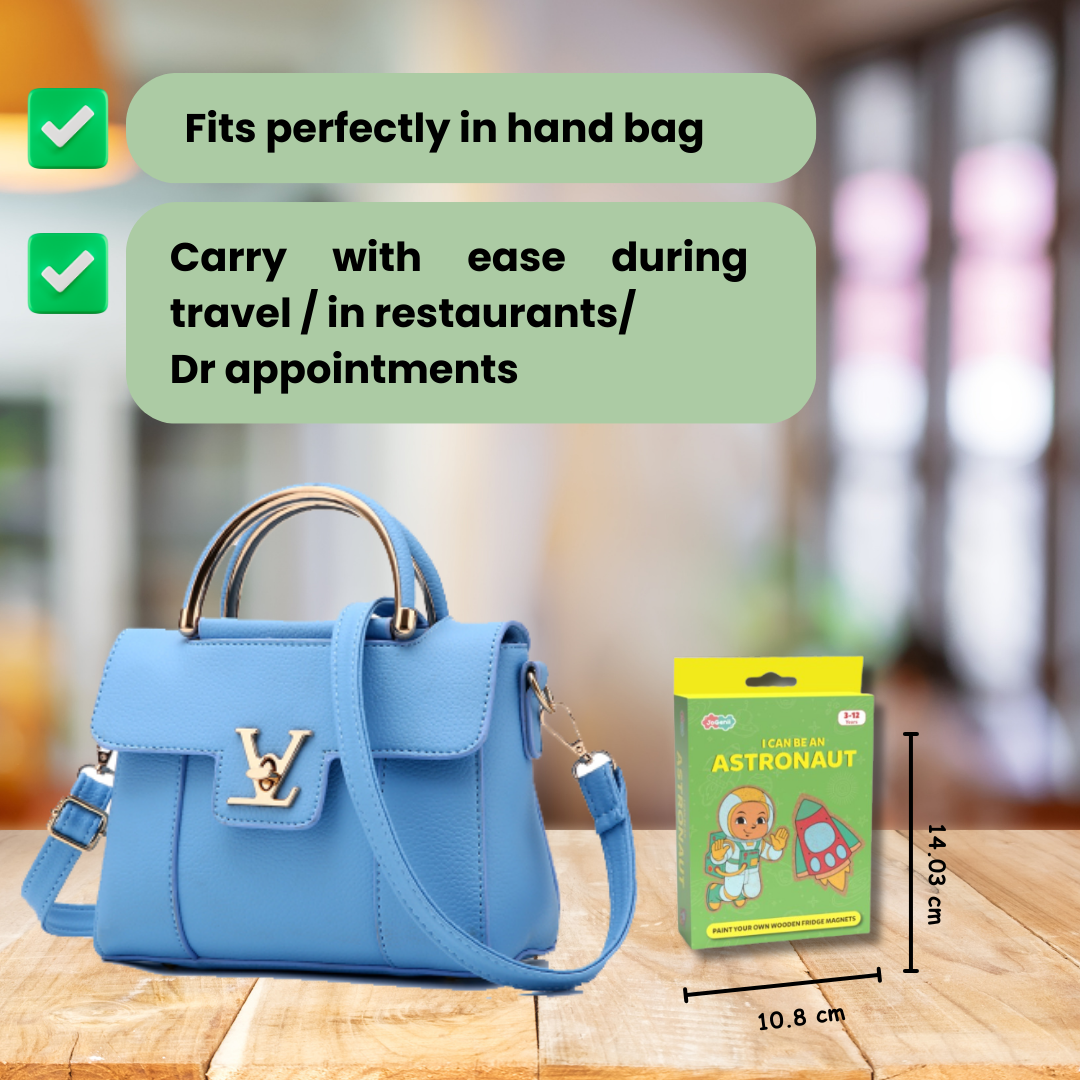 This is a combo of 10 sets of the " I Can Be an Astronaut" which makes it perfect for return gifting, bulk gifting and play dates. Get ready to blast off into a universe of fun with JoGenii's "I Can Be an Astronaut" Mini DIY Kit! Perfect for young space explorers aged 3 to 99, this kit lets your imagination soar as you embark on a dreamy adventure, creating jumbo-sized fridge magnets with an enchanting astronaut theme.