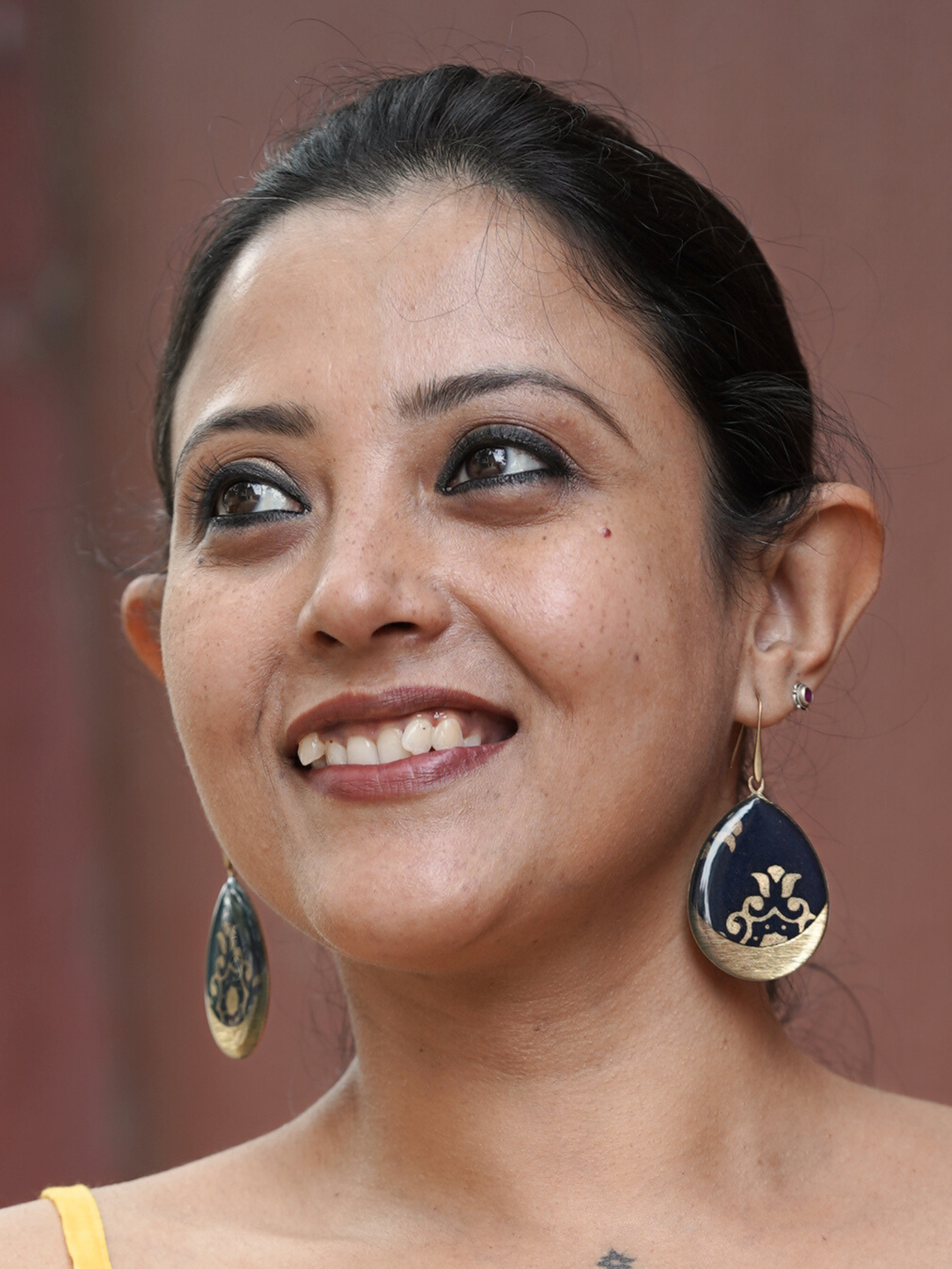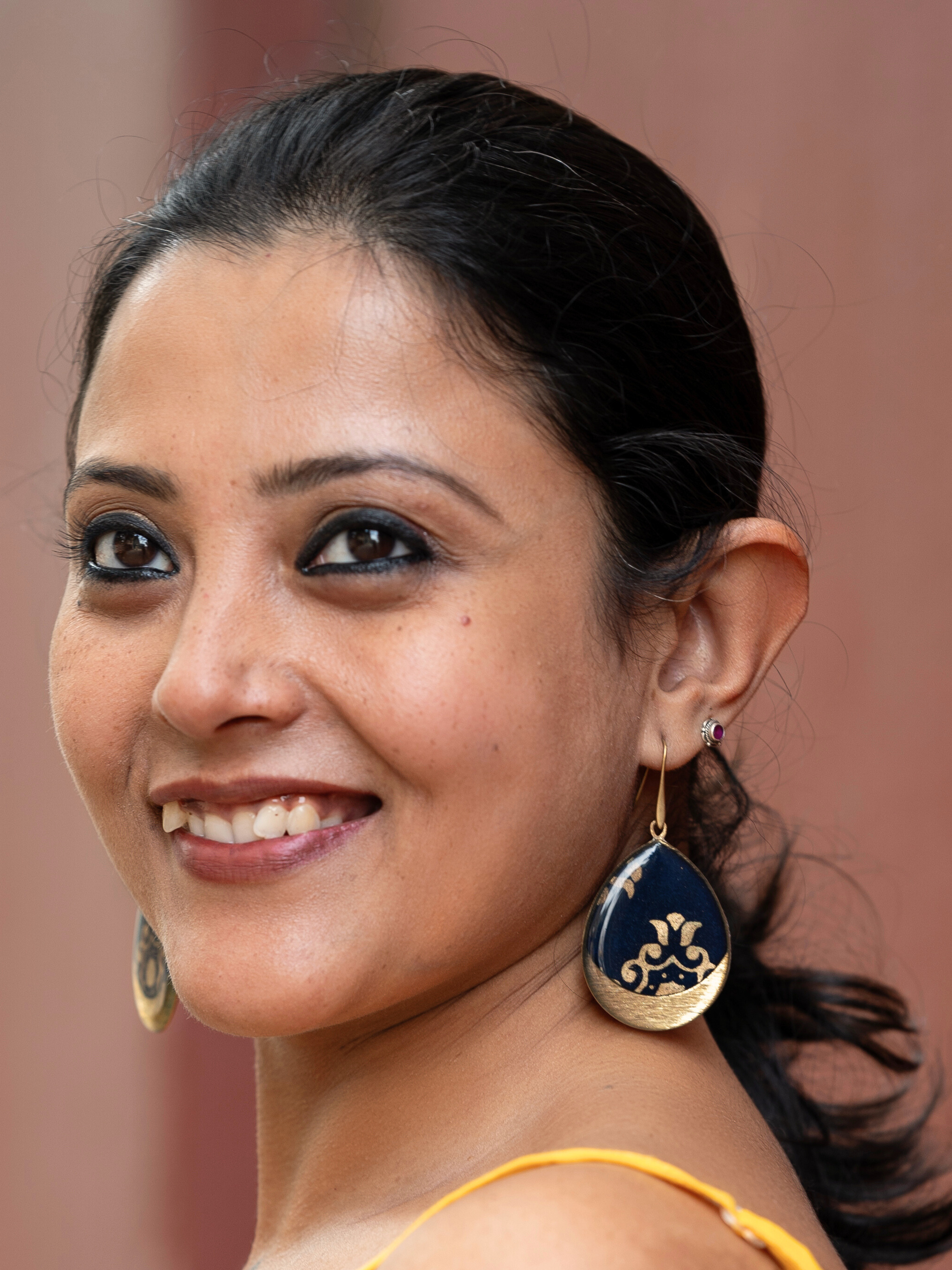 Each pair of Nisha earrings is unique, showcasing the distinctive patterns of the handmade paper, ensuring no two pieces are identical. This exclusivity adds to their inherent beauty, making them an ideal gift for someone special or a treat for yourself.