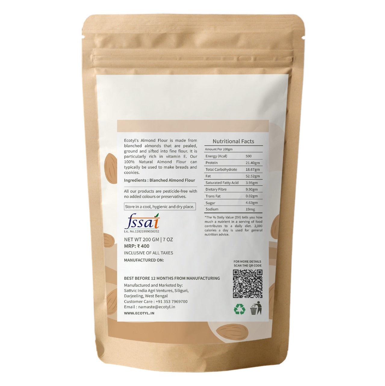 Ecotyl Almond Flour (Blanched) | Gluten Free | Keto Friendly | 200g