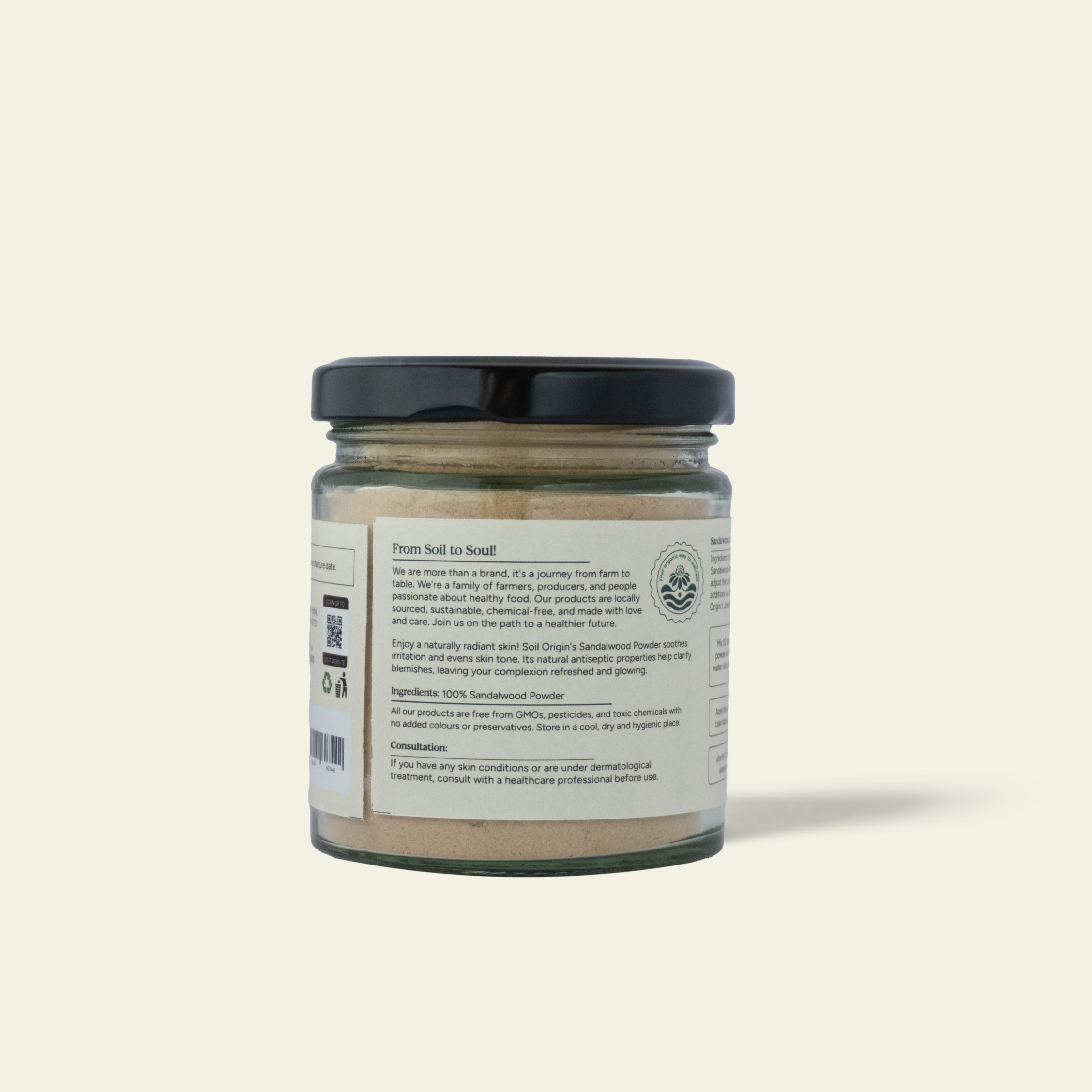 Experience naturally radiant skin with Soil Origin's Sandalwood Powder. This soothing powder is designed to calm irritation and even out skin tone, thanks to its natural antiseptic properties. Ideal for clarifying blemishes, it leaves your complexion refreshed and glowing. Perfect for those seeking a gentle yet effective solution for a clearer, more vibrant skin appearance.