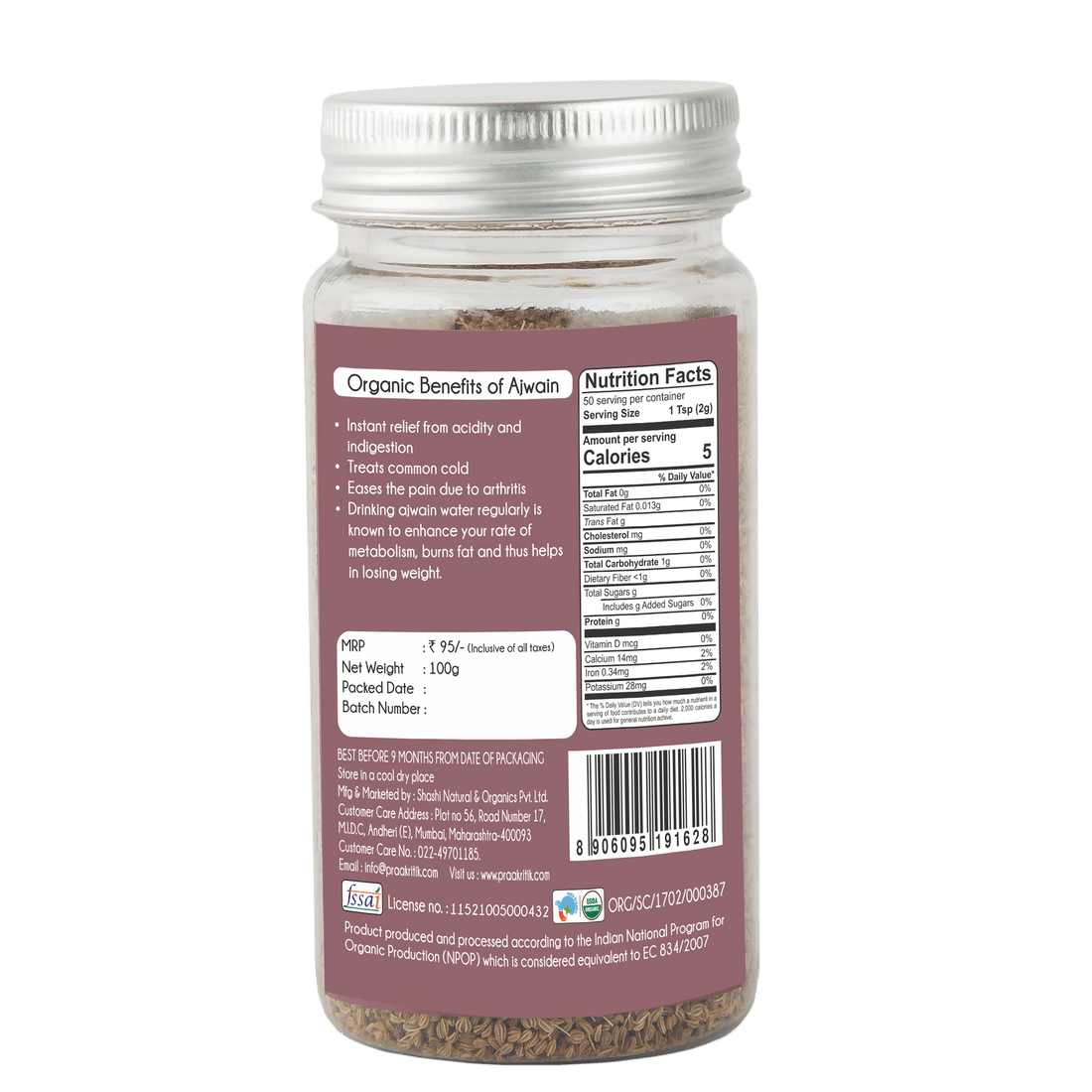 - Sourced from certified organic farms in Rajasthan and Gujarat.