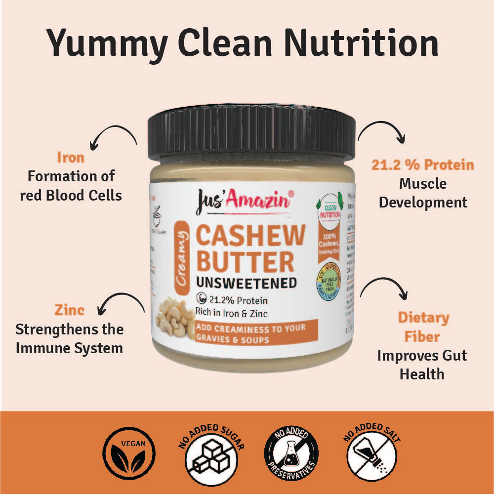 Jus Amazin Creamy Cashew Butter - Unsweetened 200g