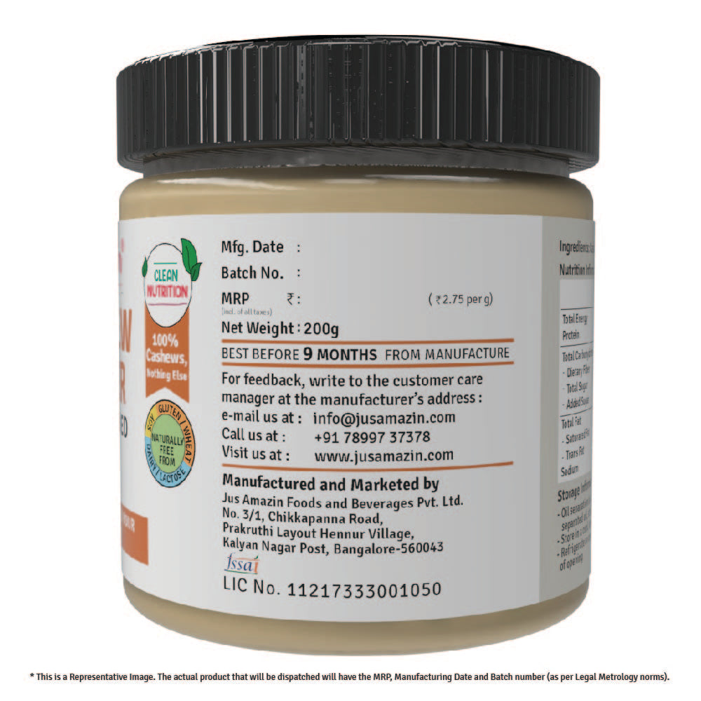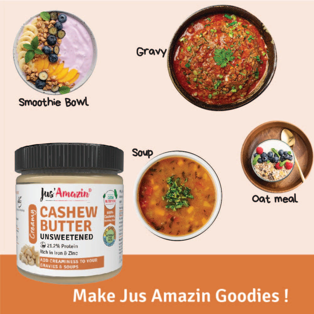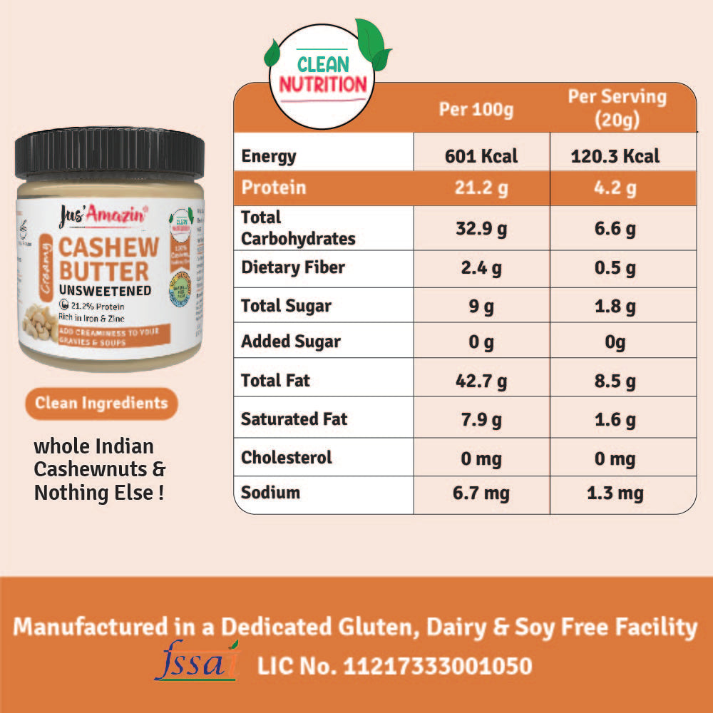 - Made from single ingredient - 100% premium cashewnuts (and nothing else), this delicious and nutritious (unsweetened) cashew spread / butter (with 21.2% Protein) is a crowd pleaser for people across ages.
