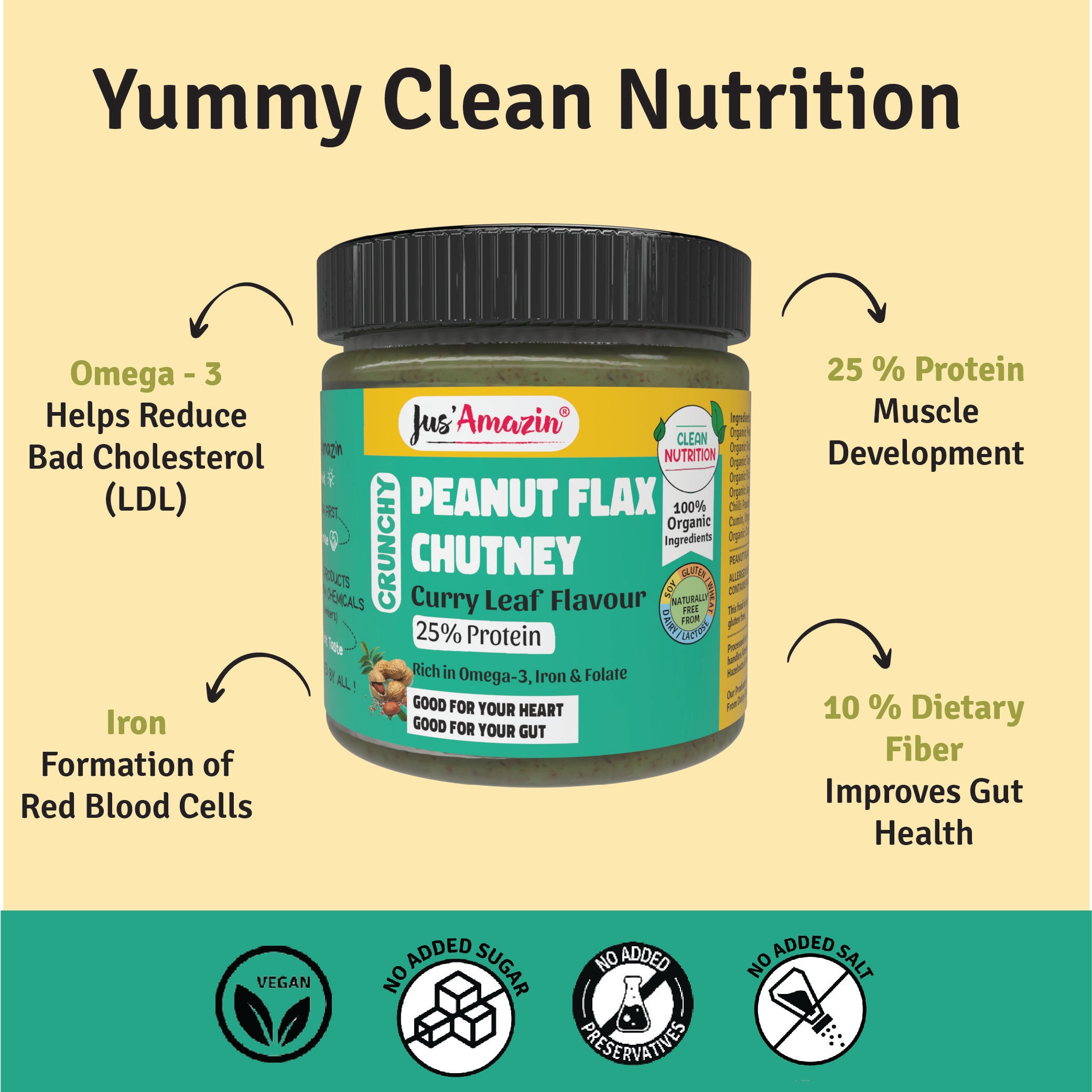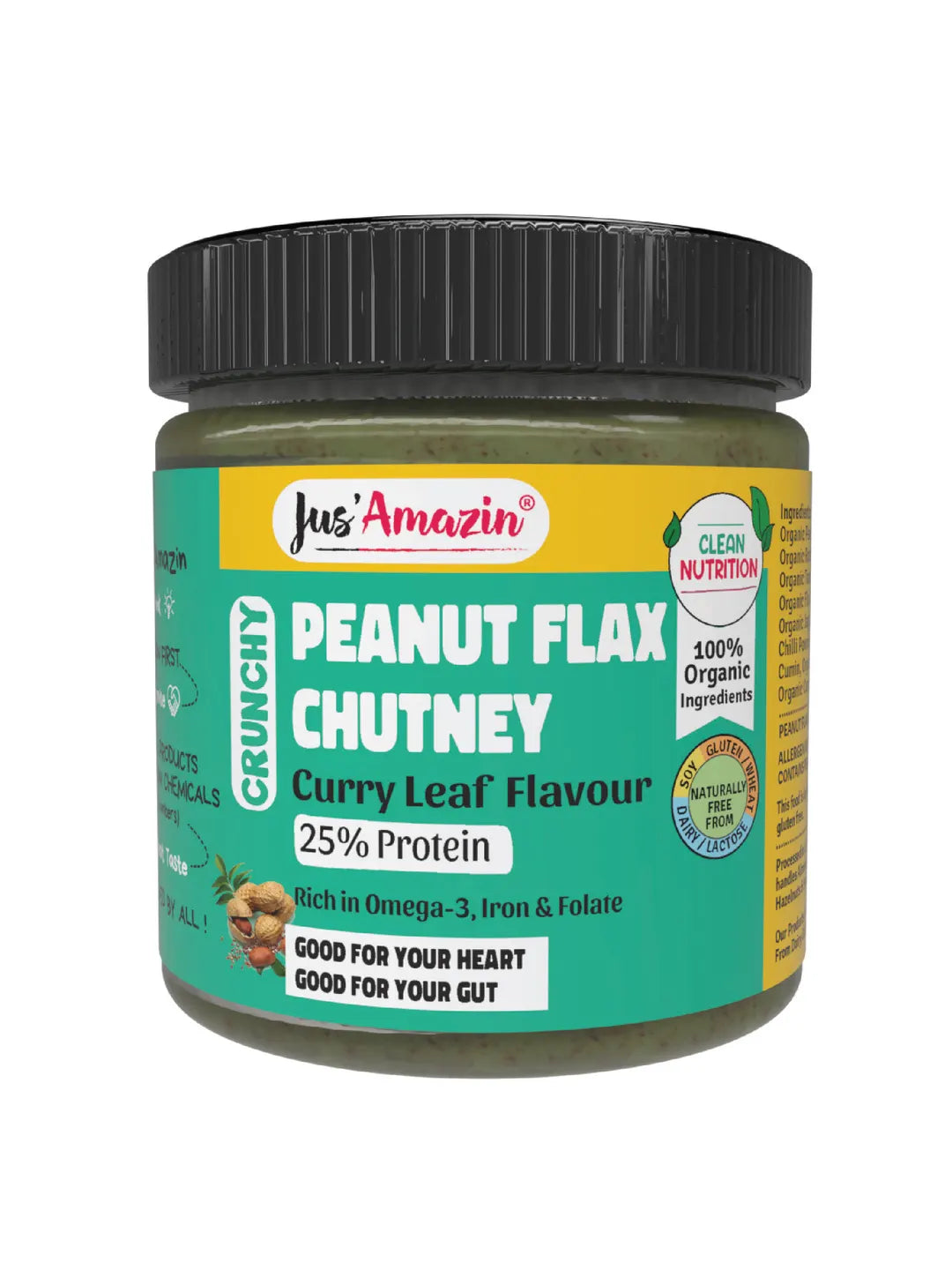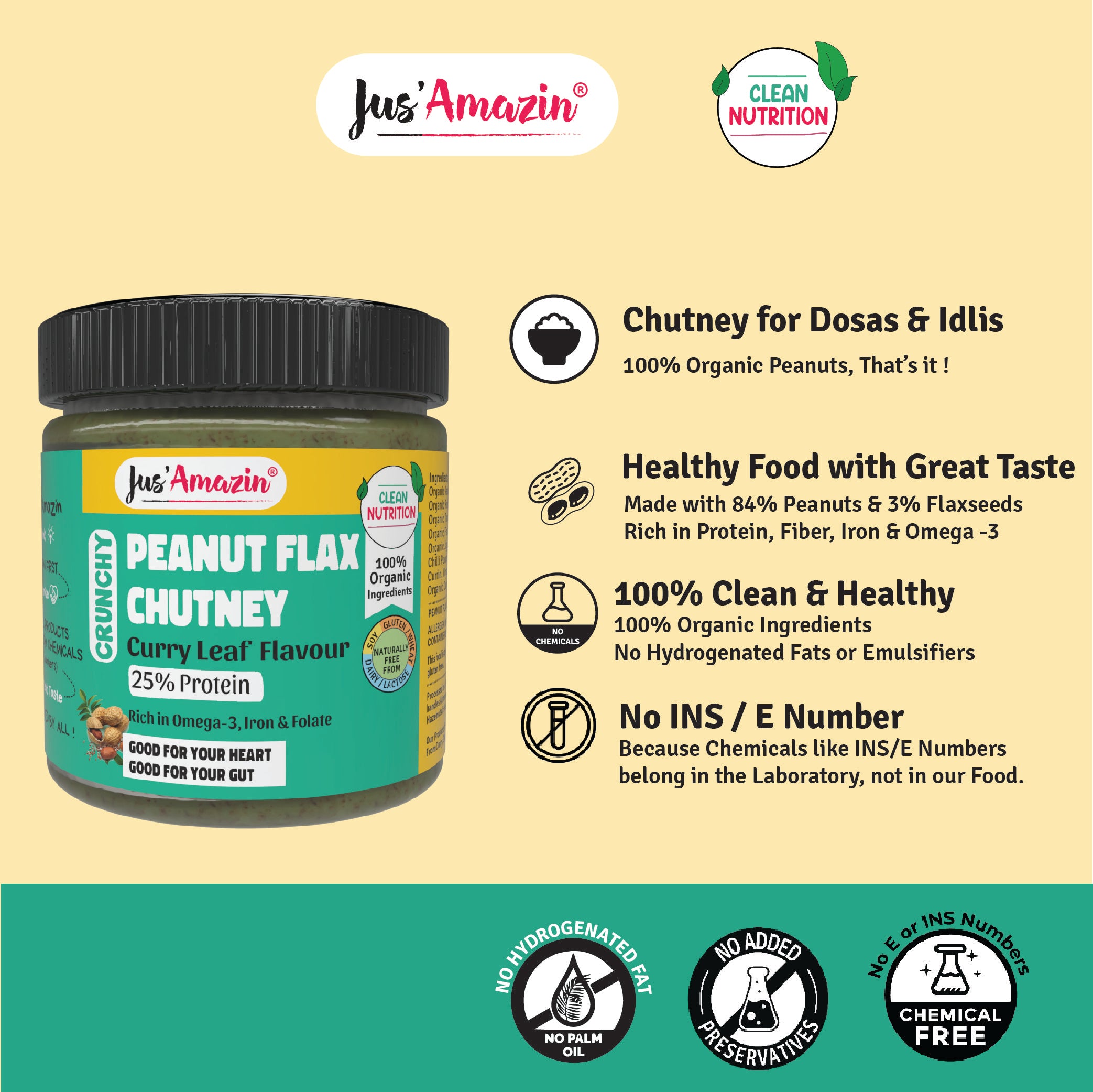 Jus Amazin Crunchy Organic Peanut Flax Chutney - Curry Leaf Flavour 200g