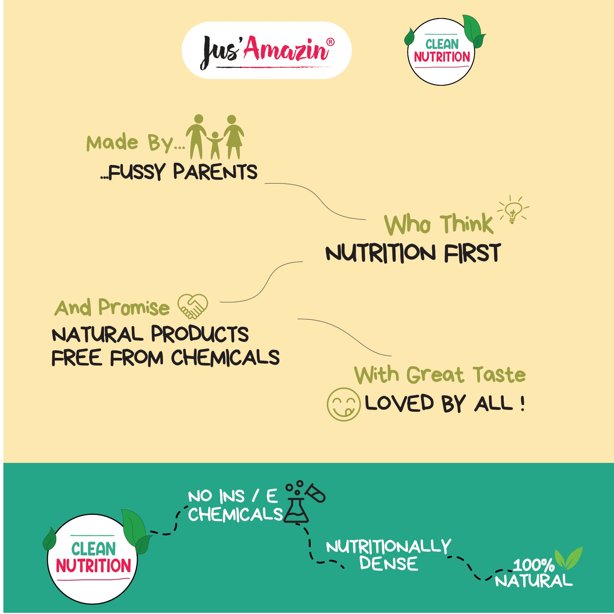 It provides Clean Nutrition, with Zero Junk (No refined sugar or chemicals or preservatives).