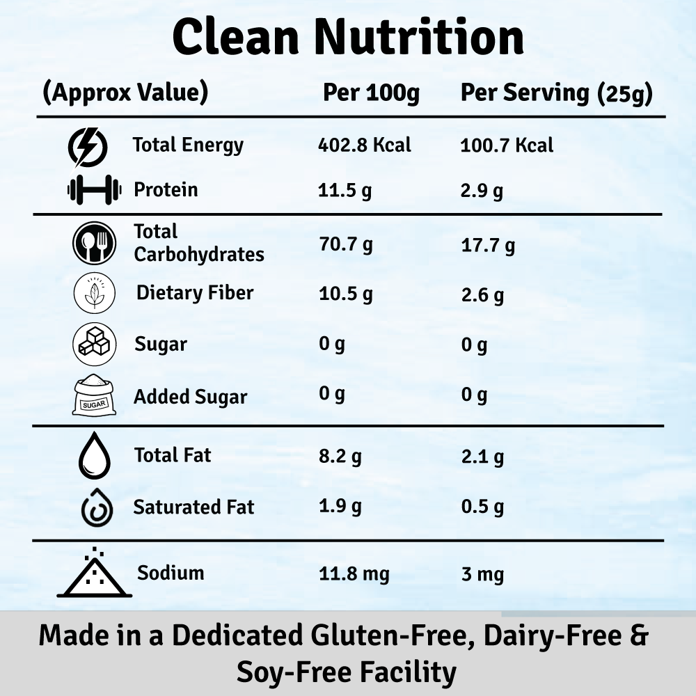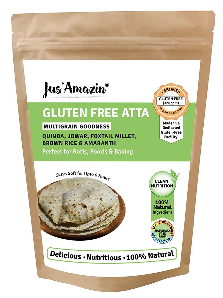This multi-purpose Gluten-Free Atta (Flour) is suitable for consumption by those who have Celiac disease or have gluten intolerance. It is made from nutritious ingredients that are naturally free from gluten - Brown Rice, Jowar, Quinoa, Foxtail Millet, Tapioca and Psyllium Husk.