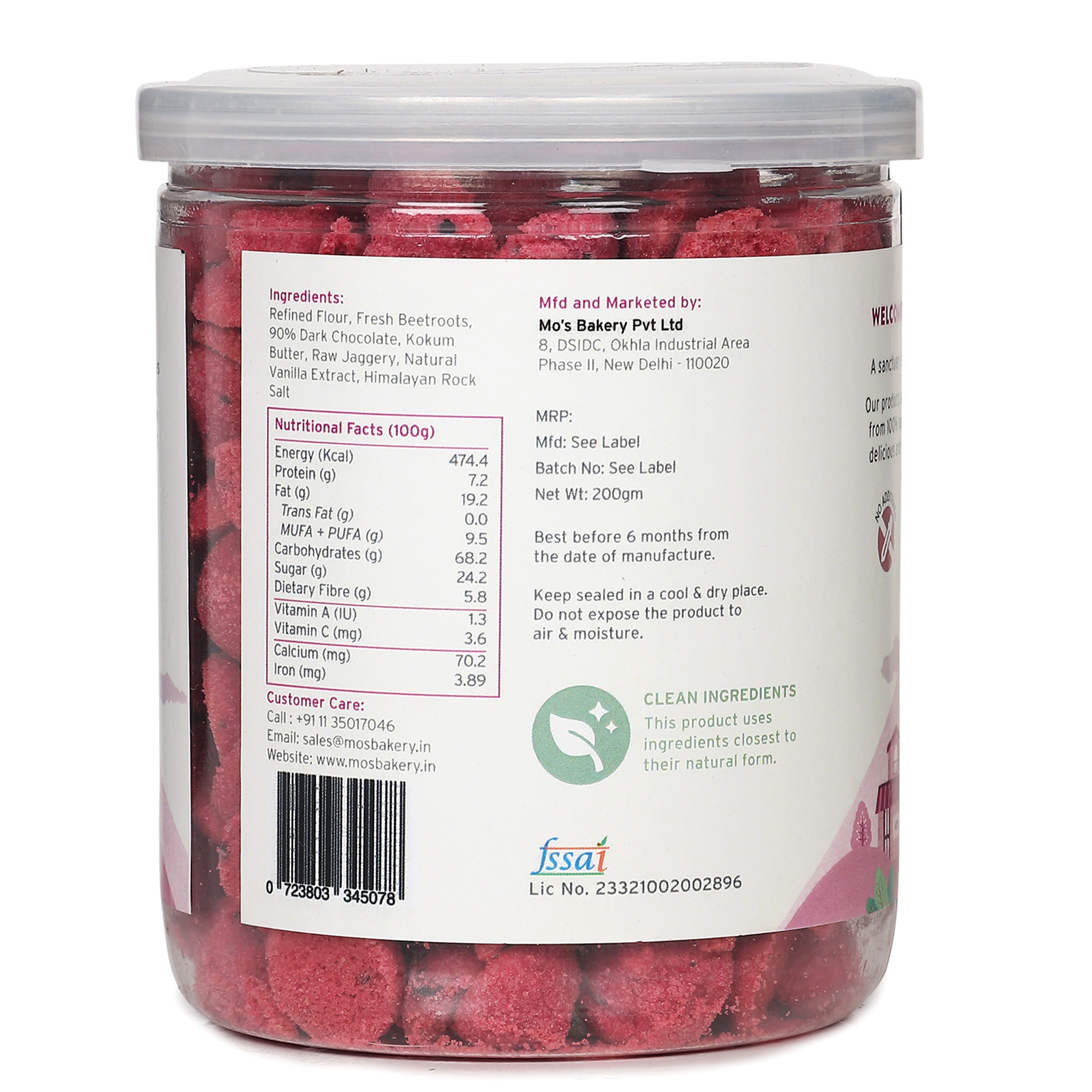 Ingredients Organic Flour, Organic Beetroots, 90% Dark Chocolate, Raw Kokum Butter, Raw Jaggery, Natural Vanilla Extract, Himalayan Rock Salt About the product