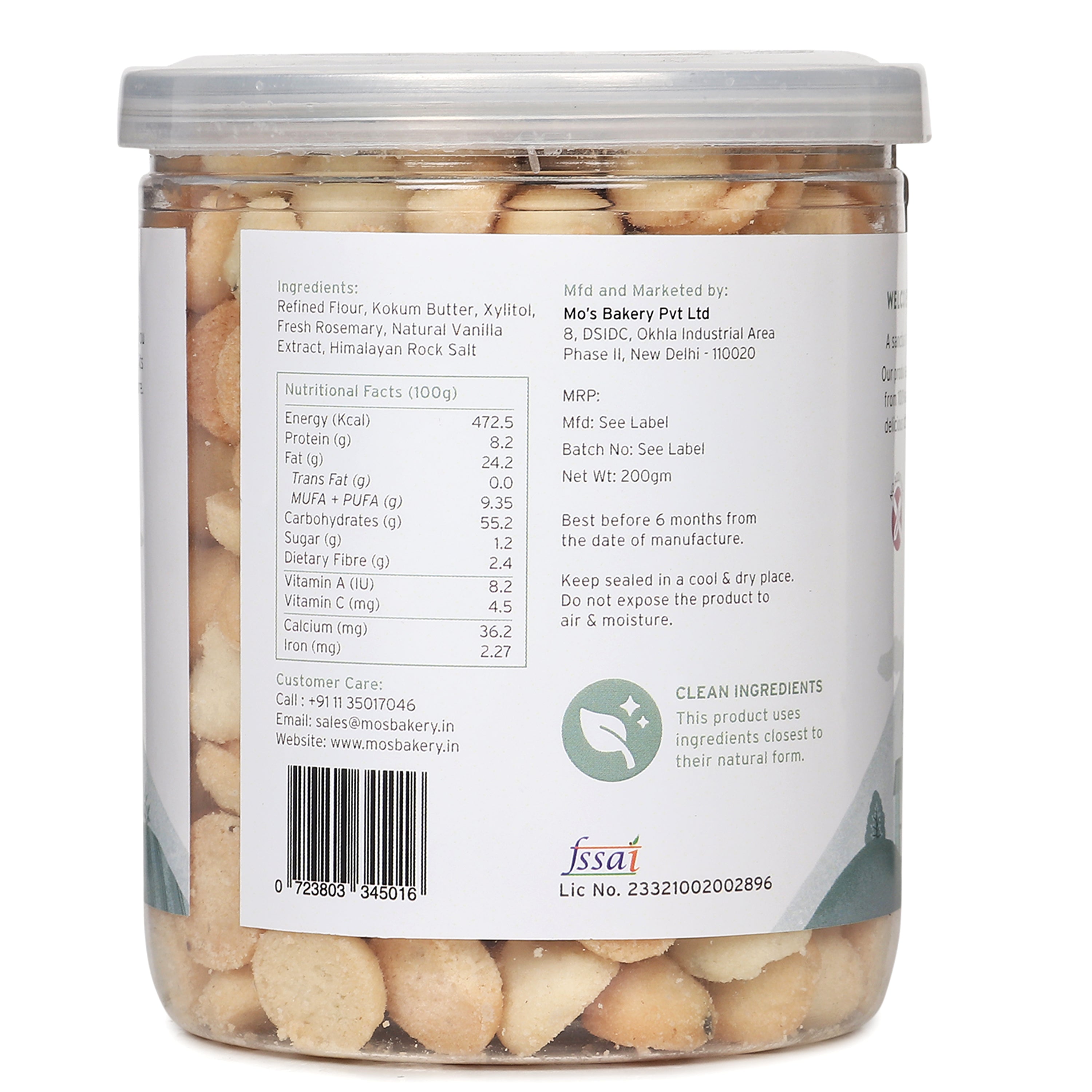 Ingredients Organic Flour, Raw Kokum Butter, Organic Rosemary, Xylitol, Natural Vanilla Extract, Himalayan Rock Salt About the product